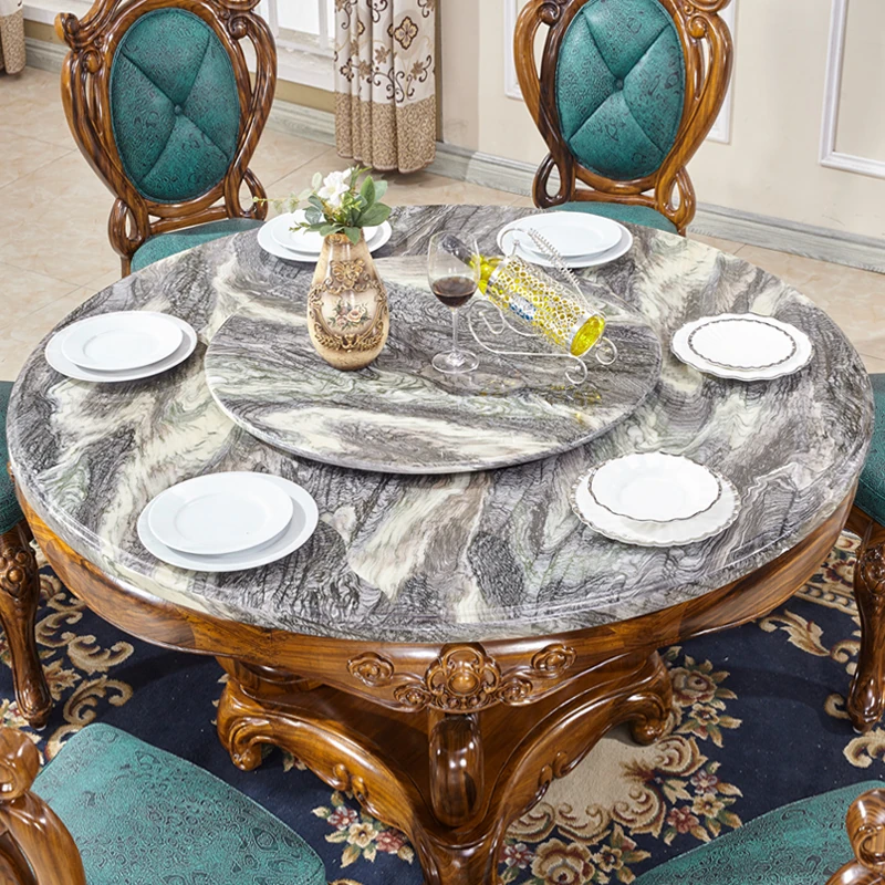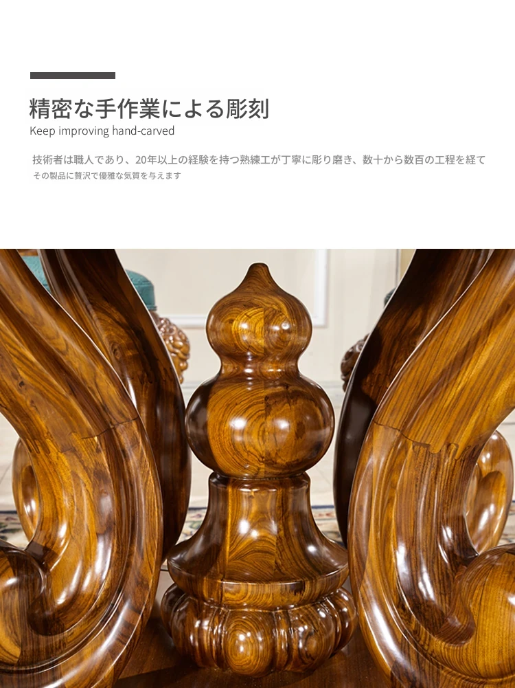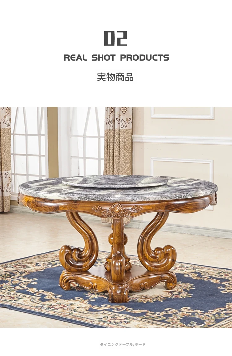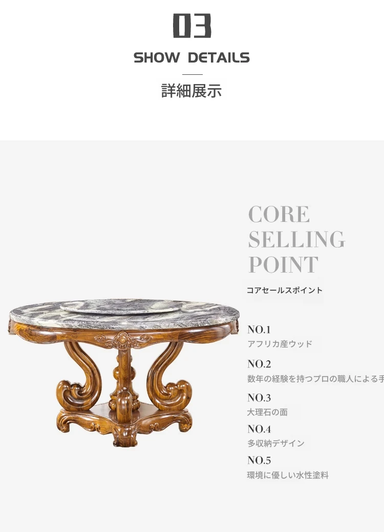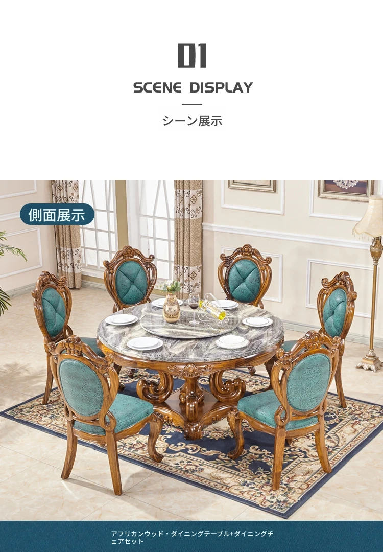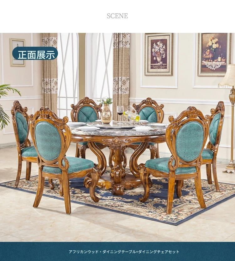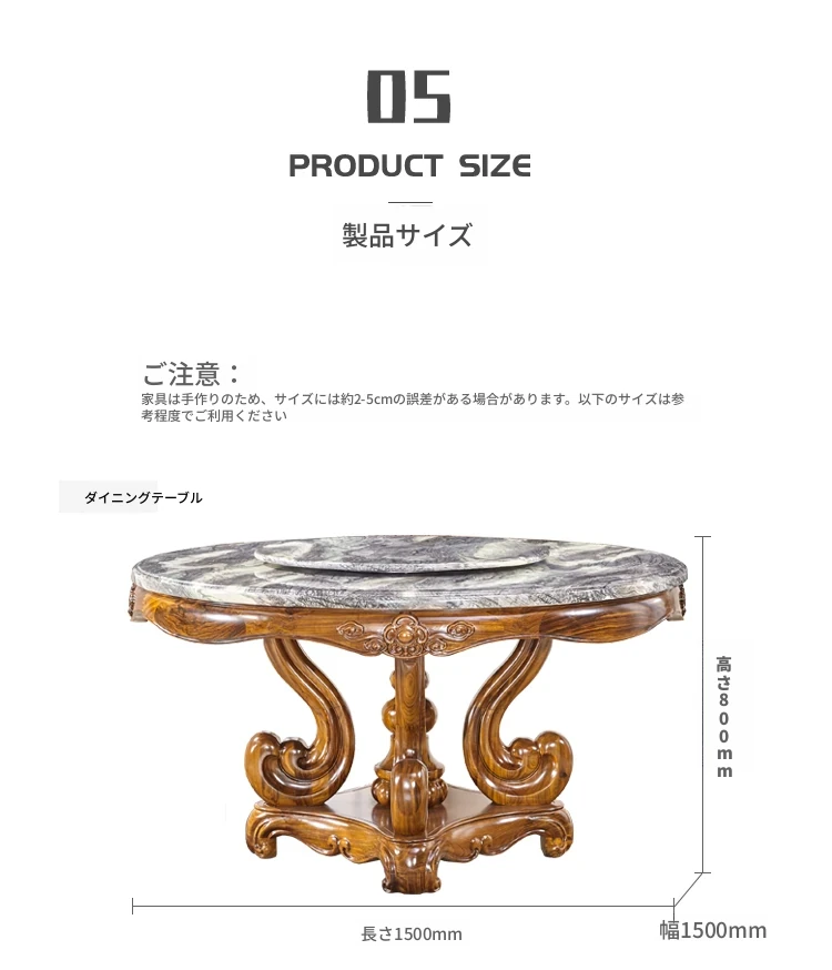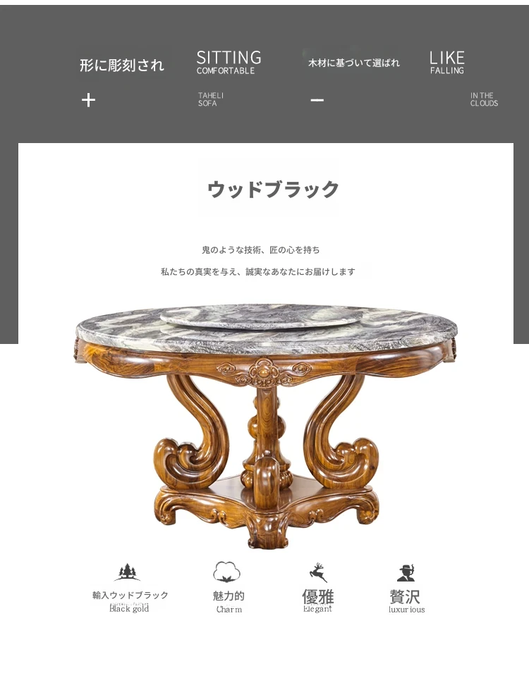 タヘリウ金木製ダイニングテーブル&チェアセット - ラグジュアリーな天然大理石天板、1.5メートルの円形デザインで豪華な住まいにぴったり!