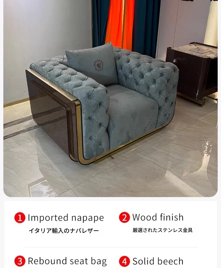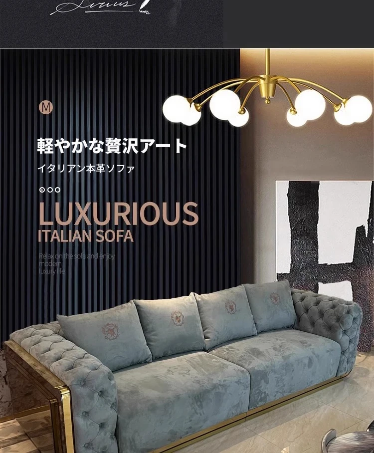 ラグジュアリーなイタリアンマットレザーソファセット - デザイナーによる高級ペントハウス向け、贅沢なヴィラのリビングに最適な全セットソファ!