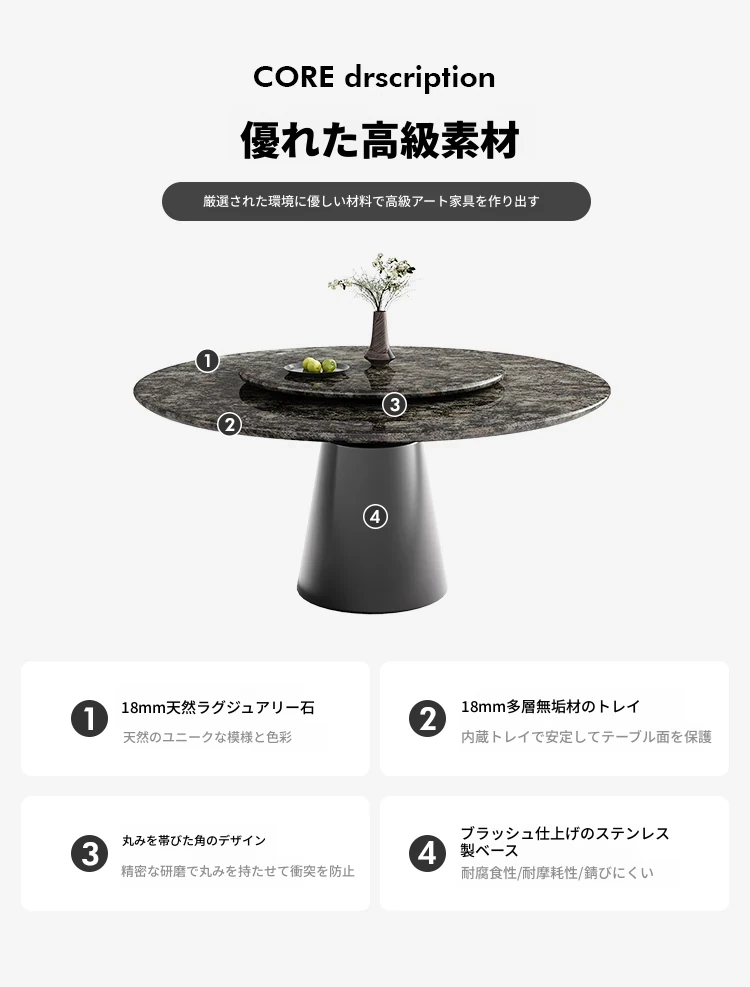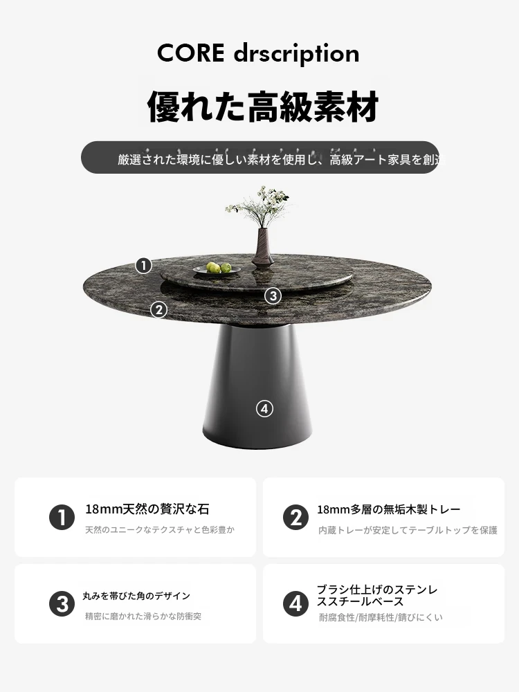1.3メートルのラグジュアリー石製ダイニングテーブル+A型椅子4脚 【偽りの場合は10倍の賠償】