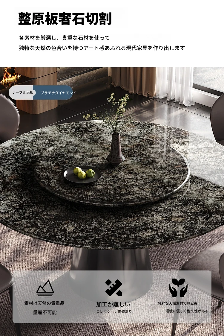 1.5メートルのラグジュアリー石製ダイニングテーブル+A型椅子8脚 【偽りの場合は10倍の賠償】