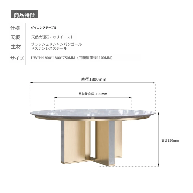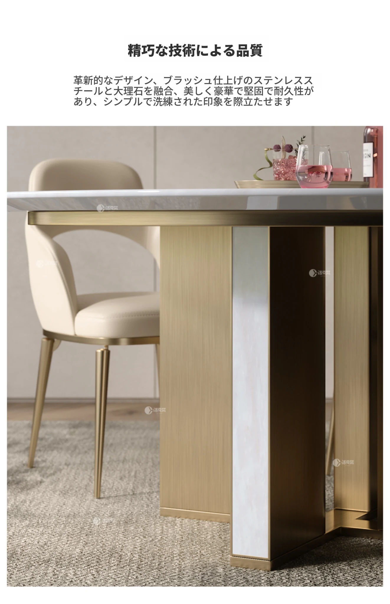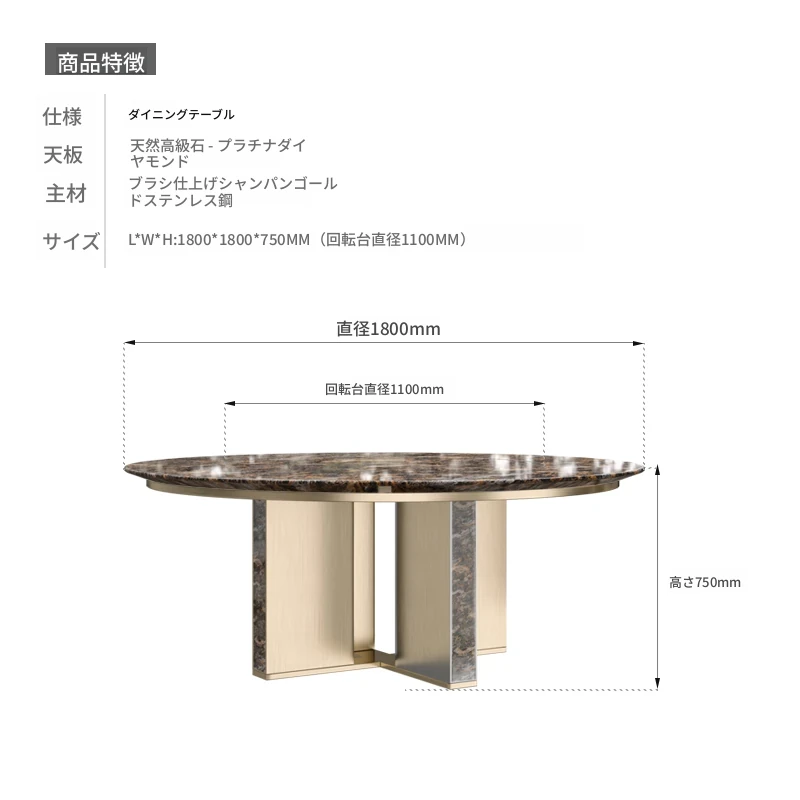 【ラグジュアリーストーン-プラチナダイヤモンド】1.8Mダイニングテーブル シャンパンゴールド