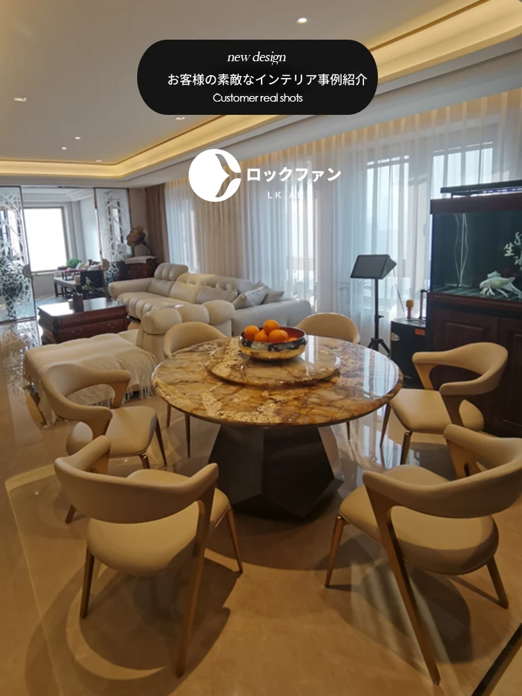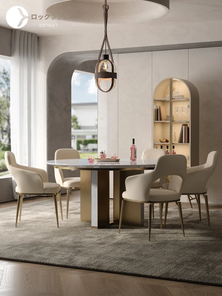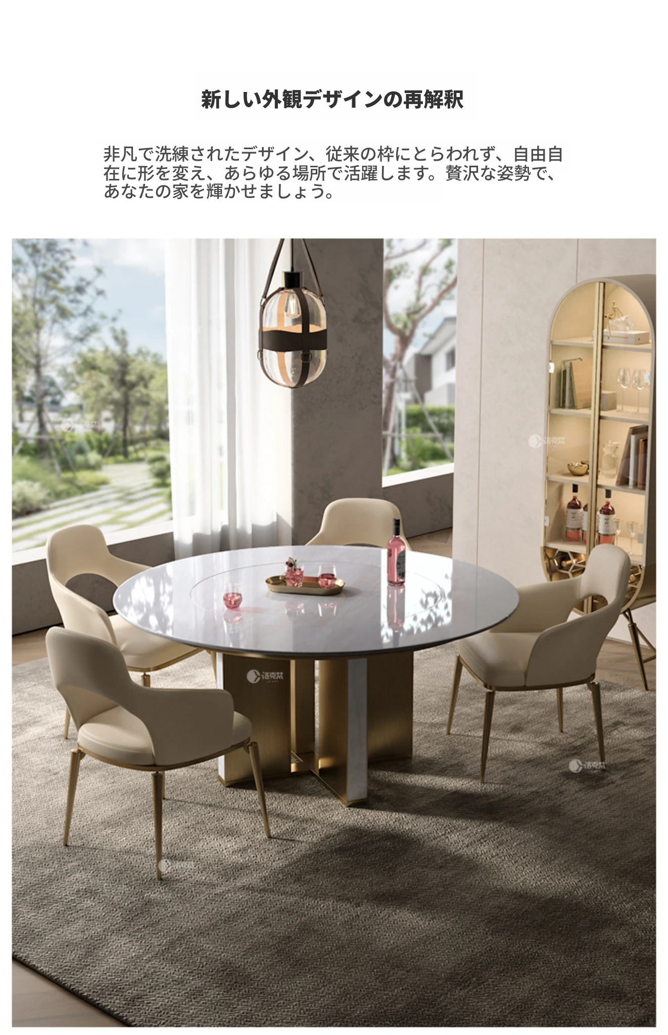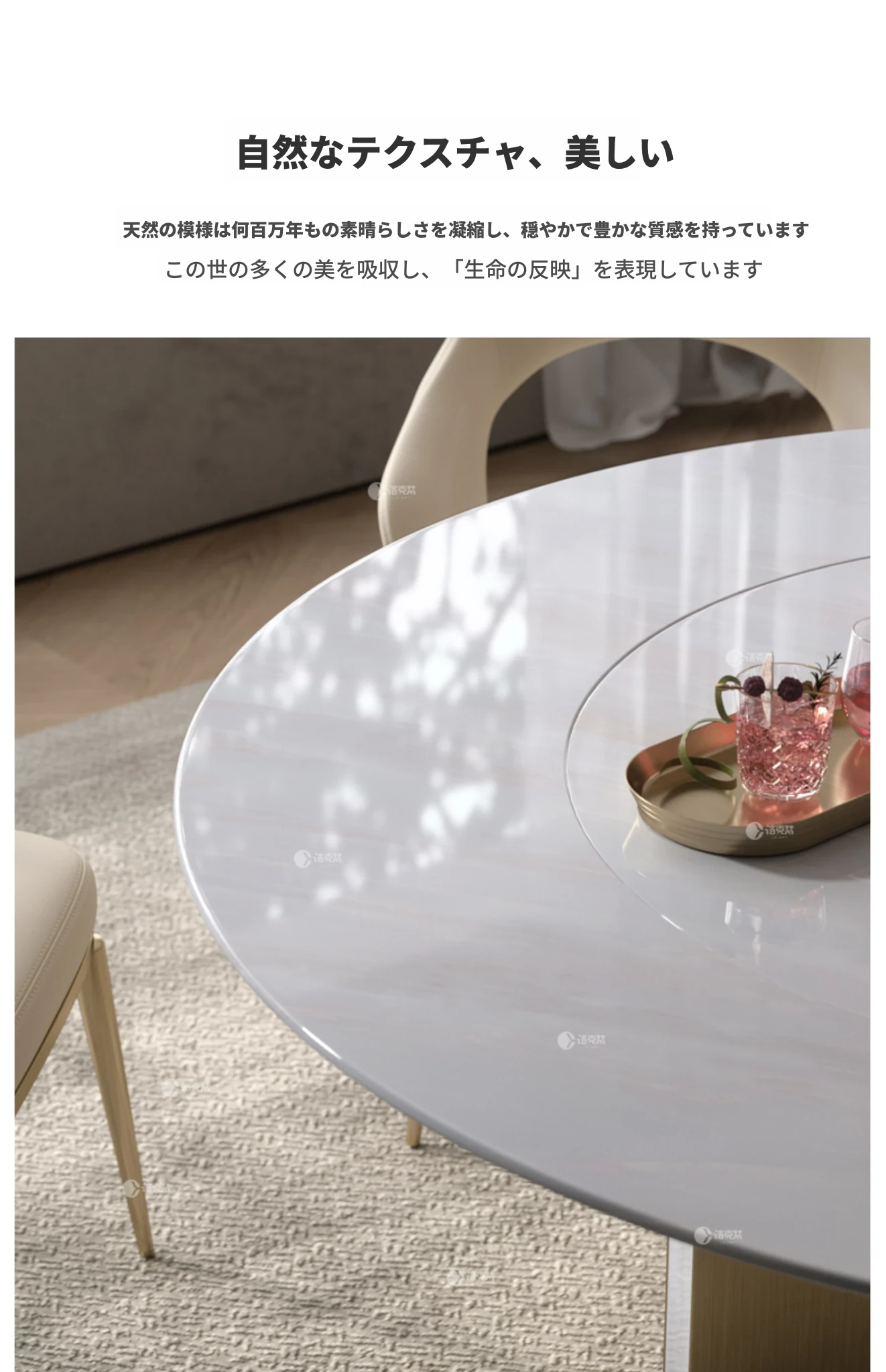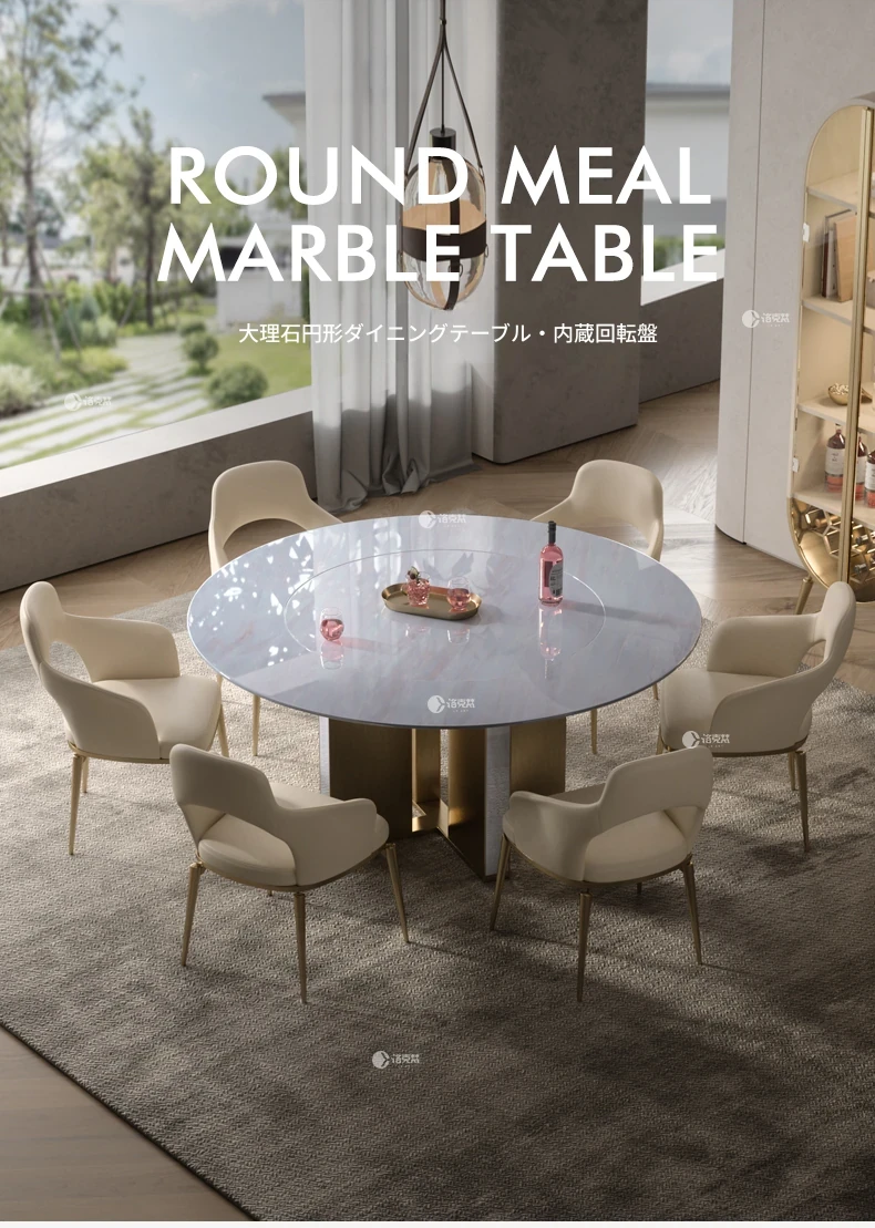 天然大理石の豪華な回転テーブル - イタリアンスタイルの現代的な高級ヴィラ向けラウンドダイニングテーブル。洗練されたデザインで、特別な食事のひとときを演出します。