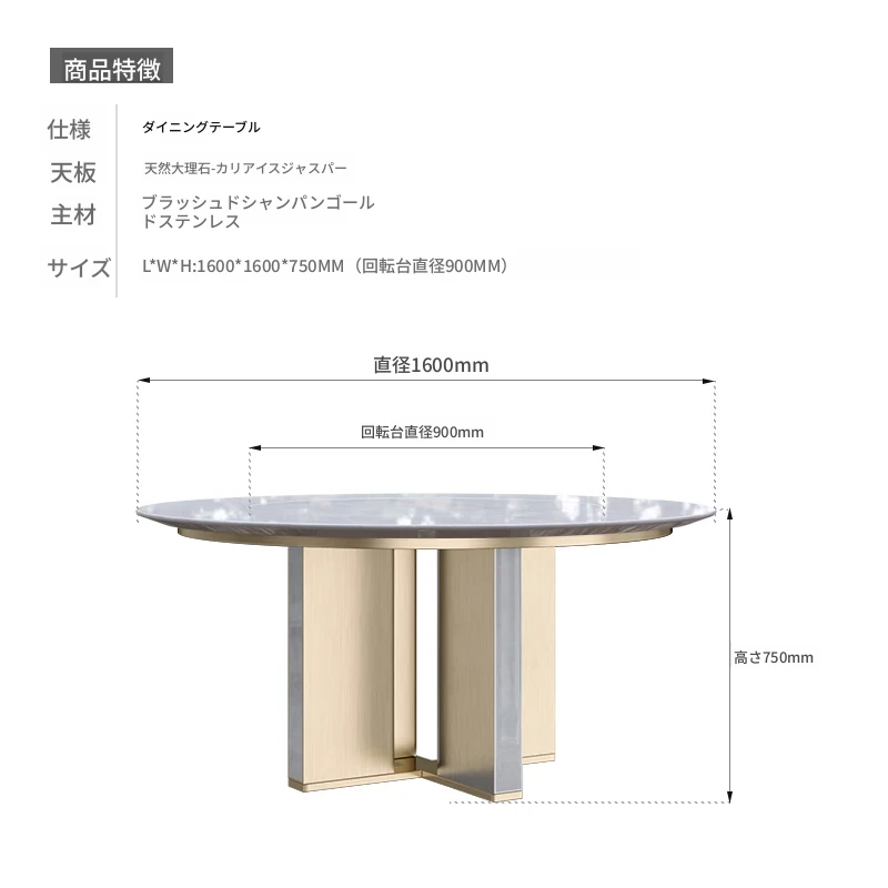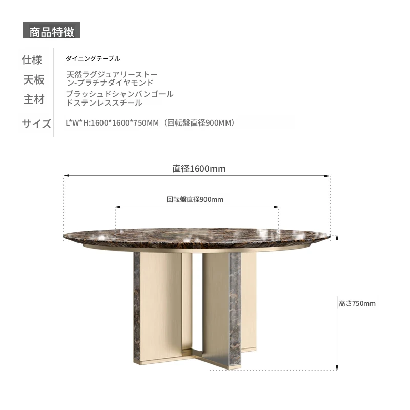 【ラグジュアリーストーン-プラチナダイヤモンド】1.6Mダイニングテーブル シャンパンゴールド