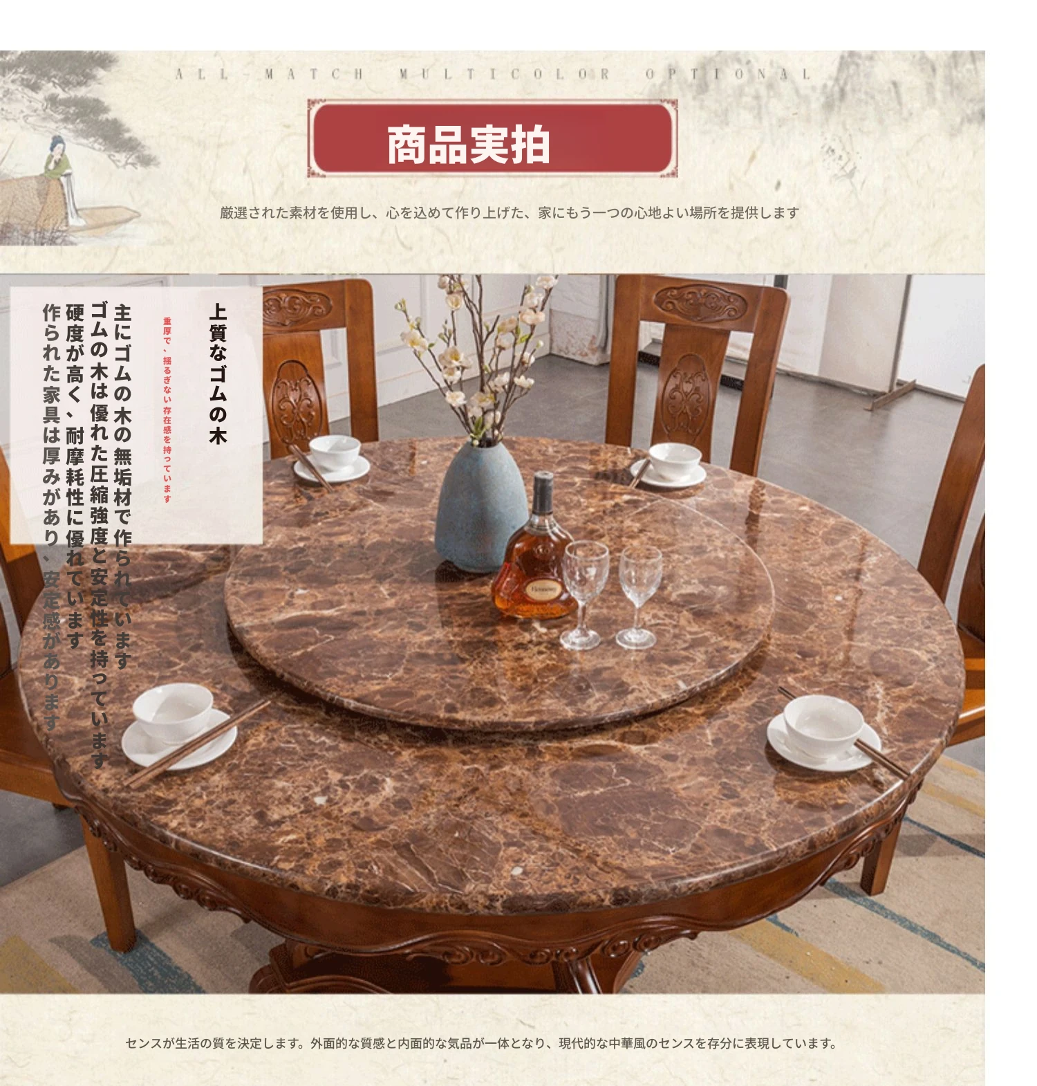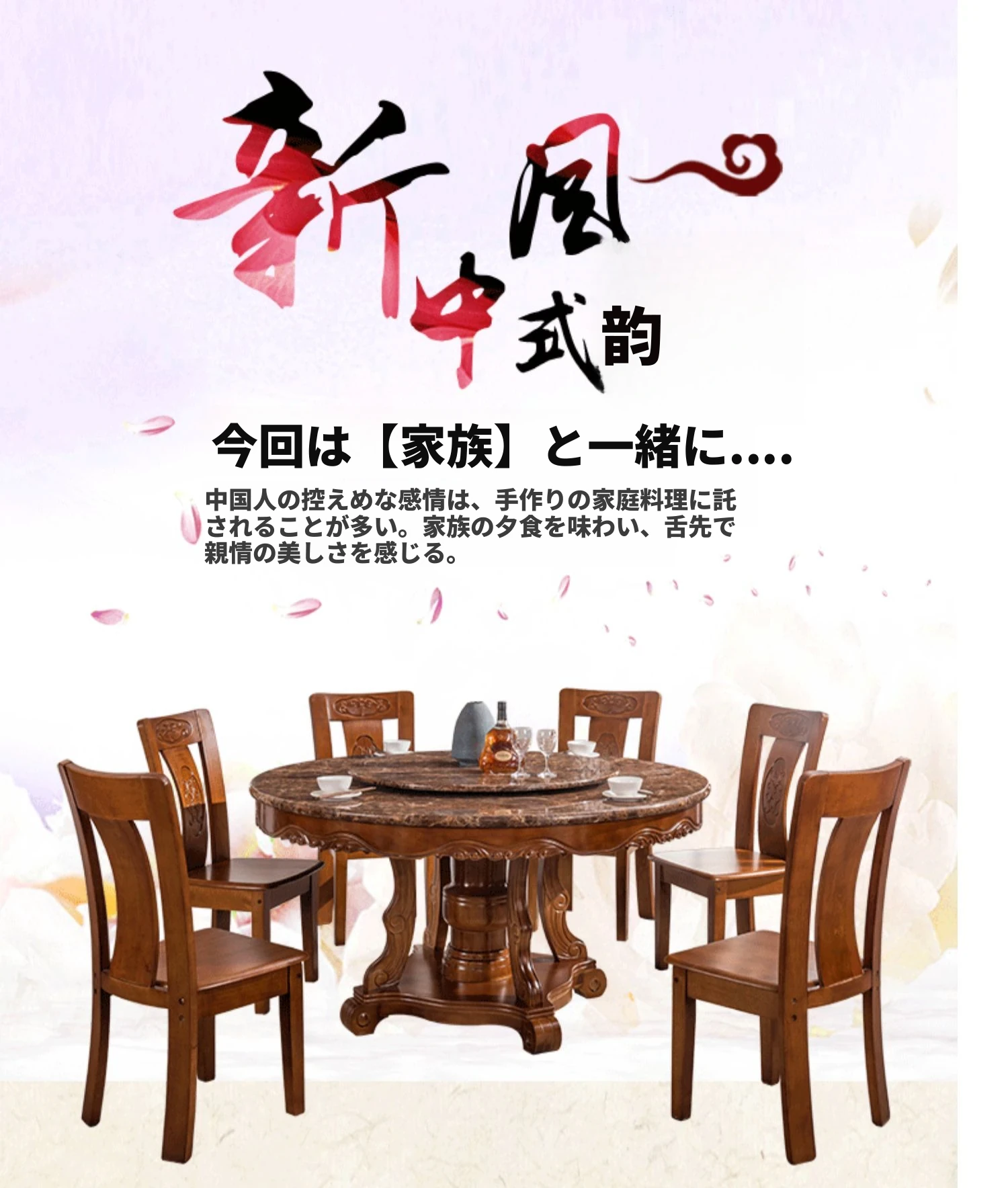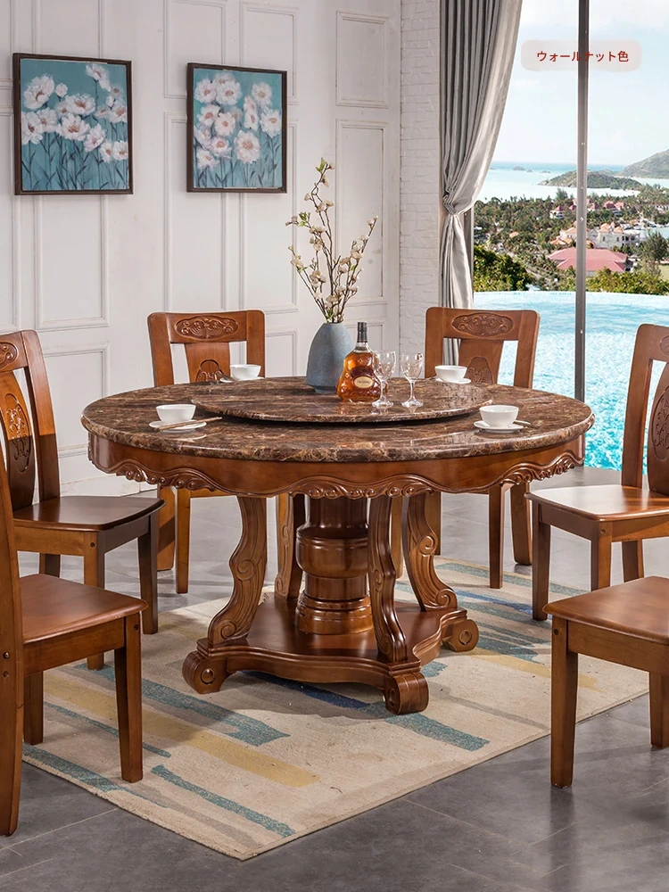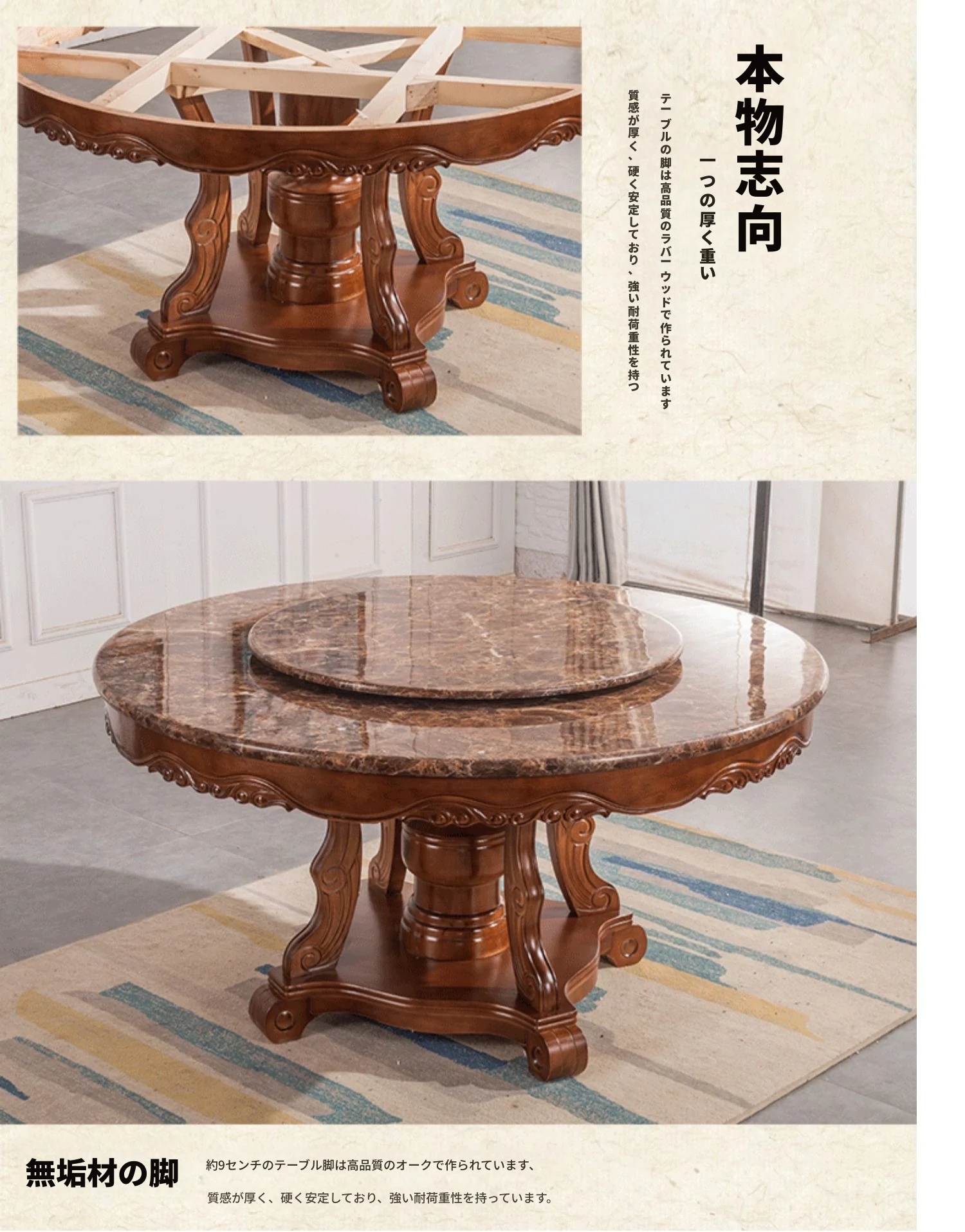 大理石の回転テーブル付きダイニングセット - おしゃれな丸型天然木製テーブルで、家族や友人との楽しい食事を演出!洗練されたデザインでお部屋を華やかに飾ります。