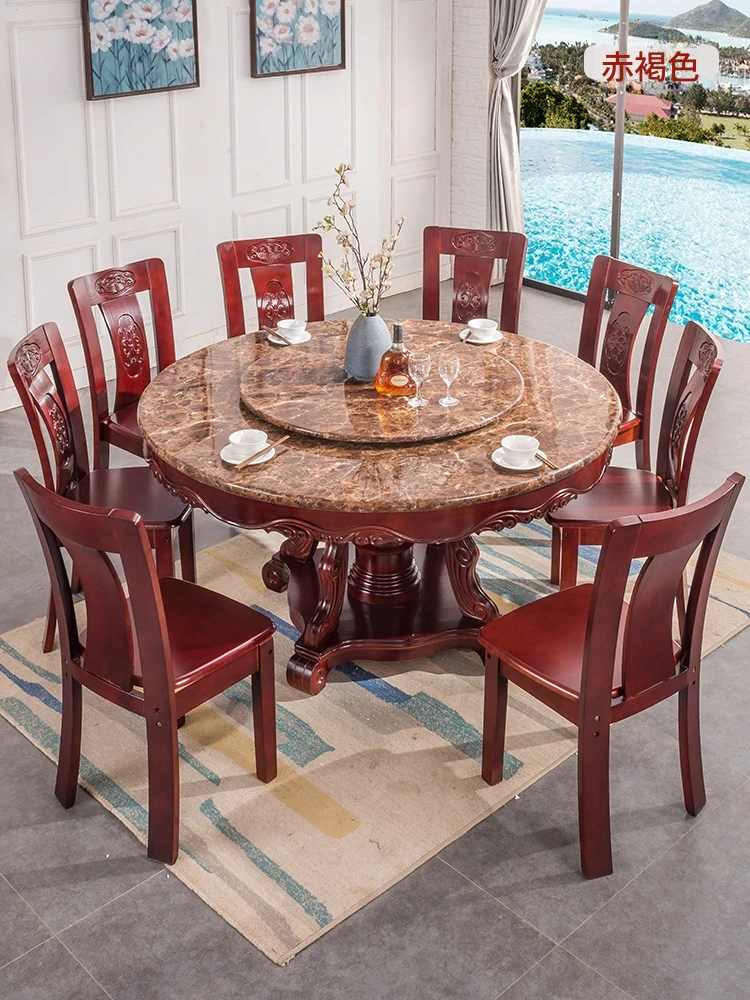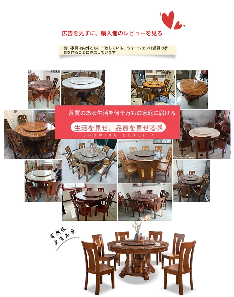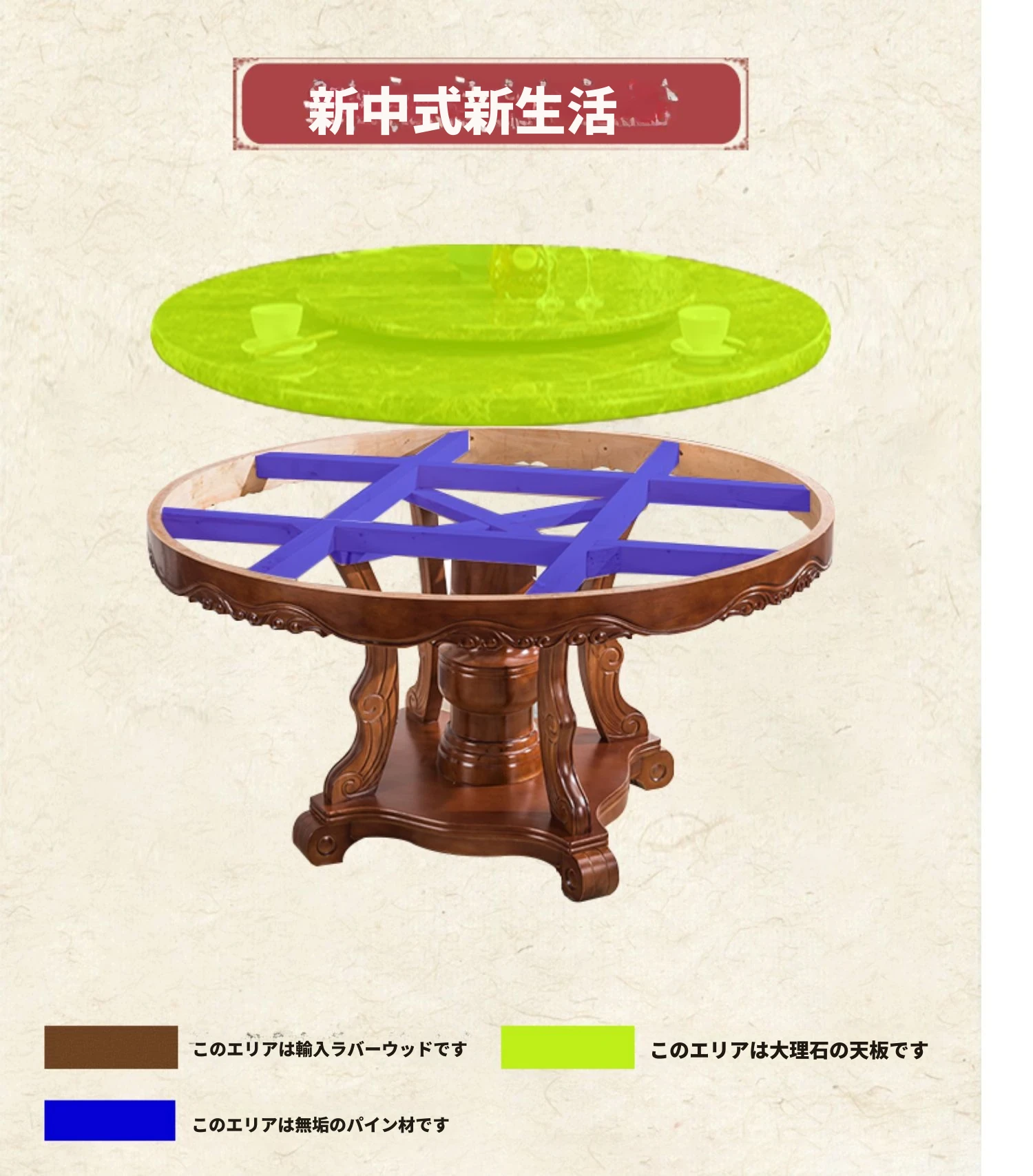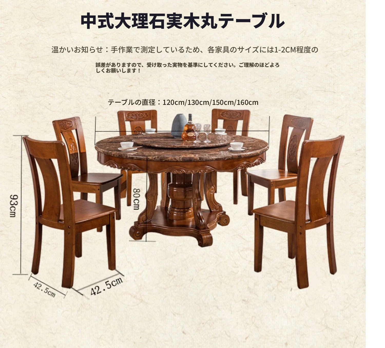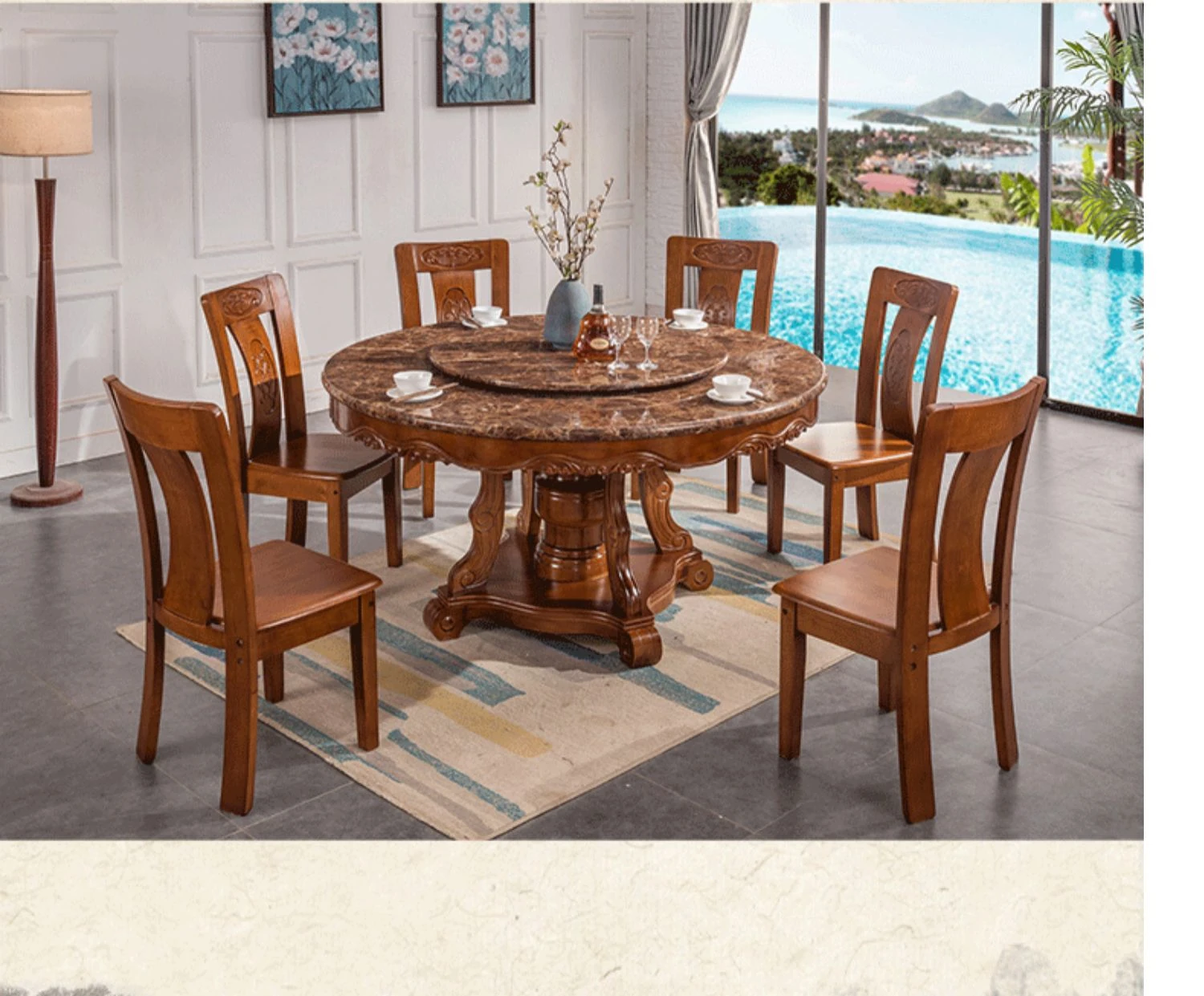 大理石の回転テーブル付きダイニングセット - おしゃれな丸型天然木製テーブルで、家族や友人との楽しい食事を演出!洗練されたデザインでお部屋を華やかに飾ります。