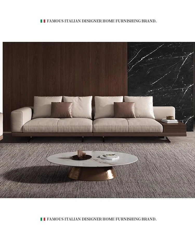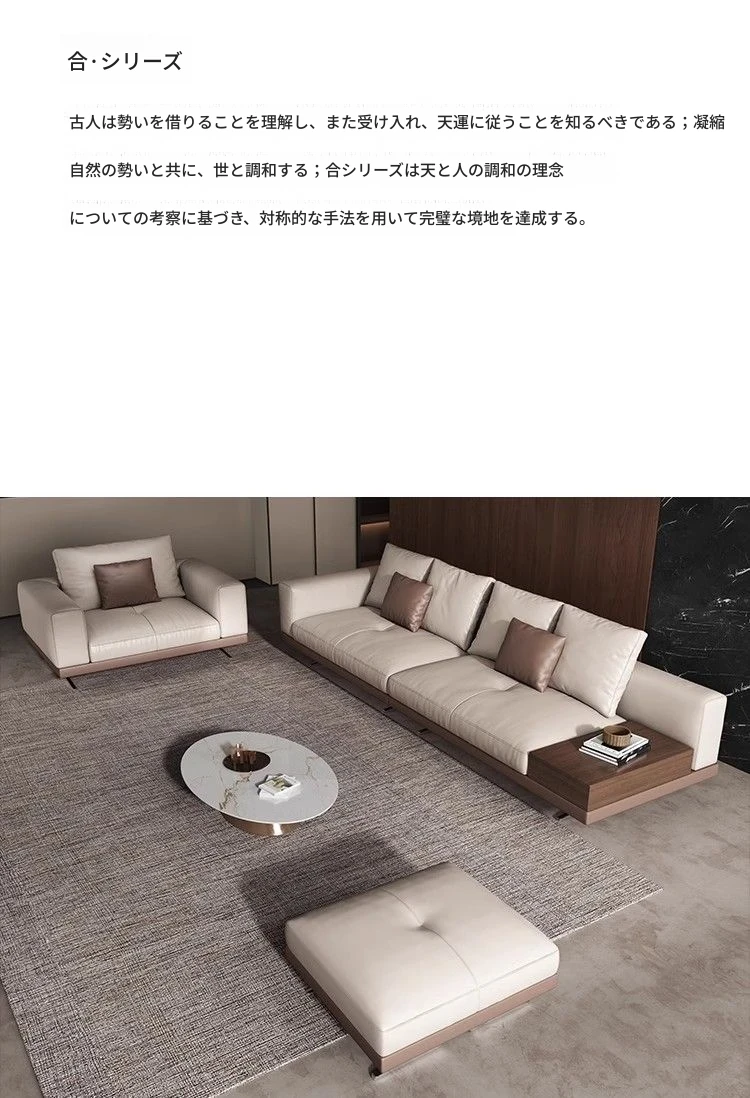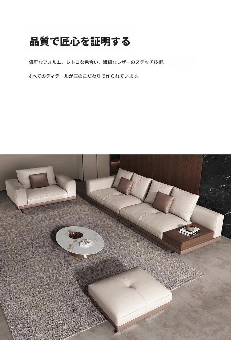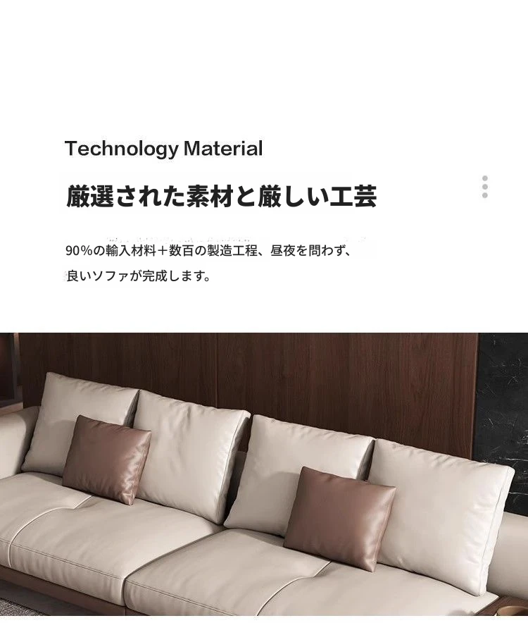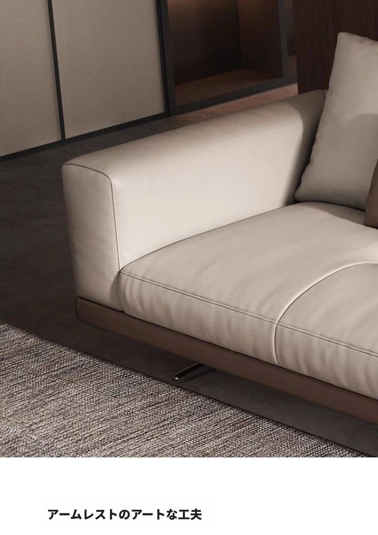 MLHオーク材風の高級感漂うミニマルモダンなリビングルーム用小型牛革ソファ - 洗練されたデザインで、居心地の良い空間を演出します。