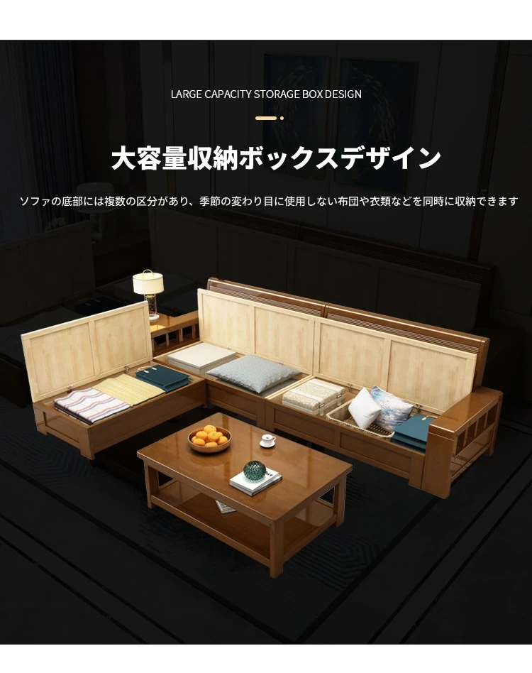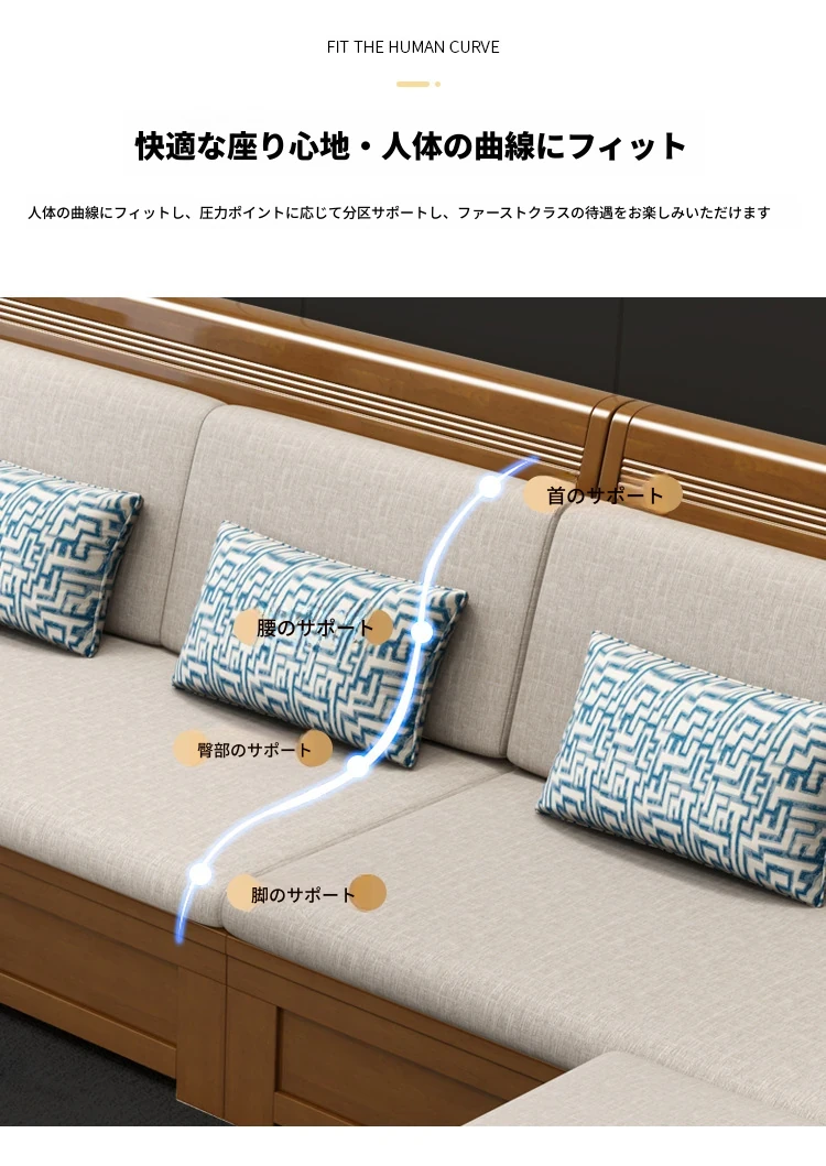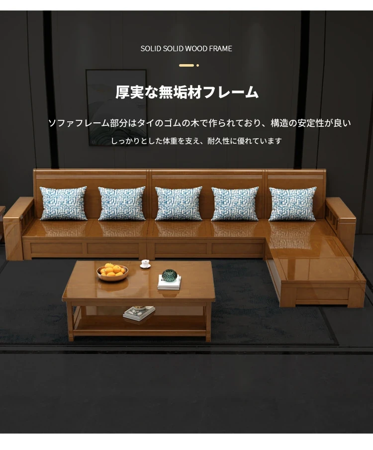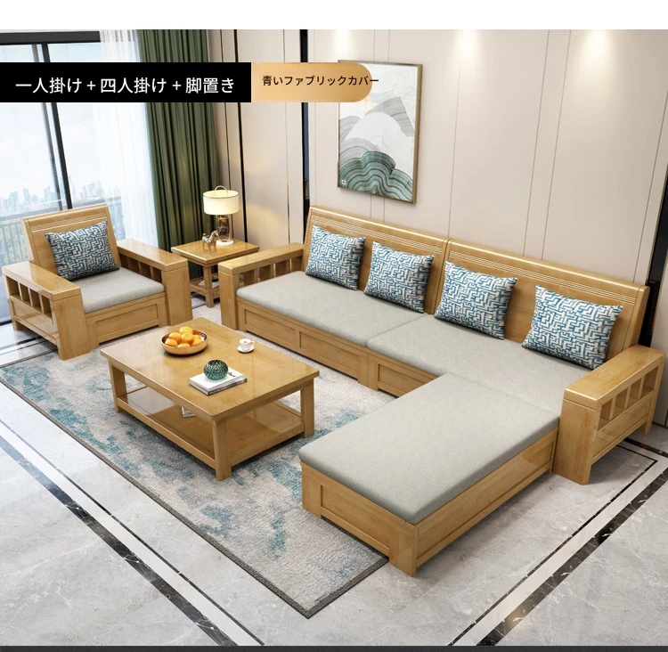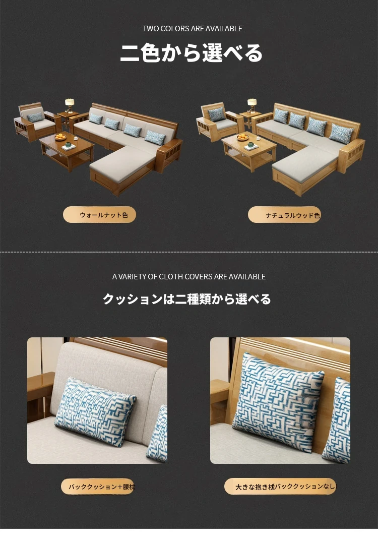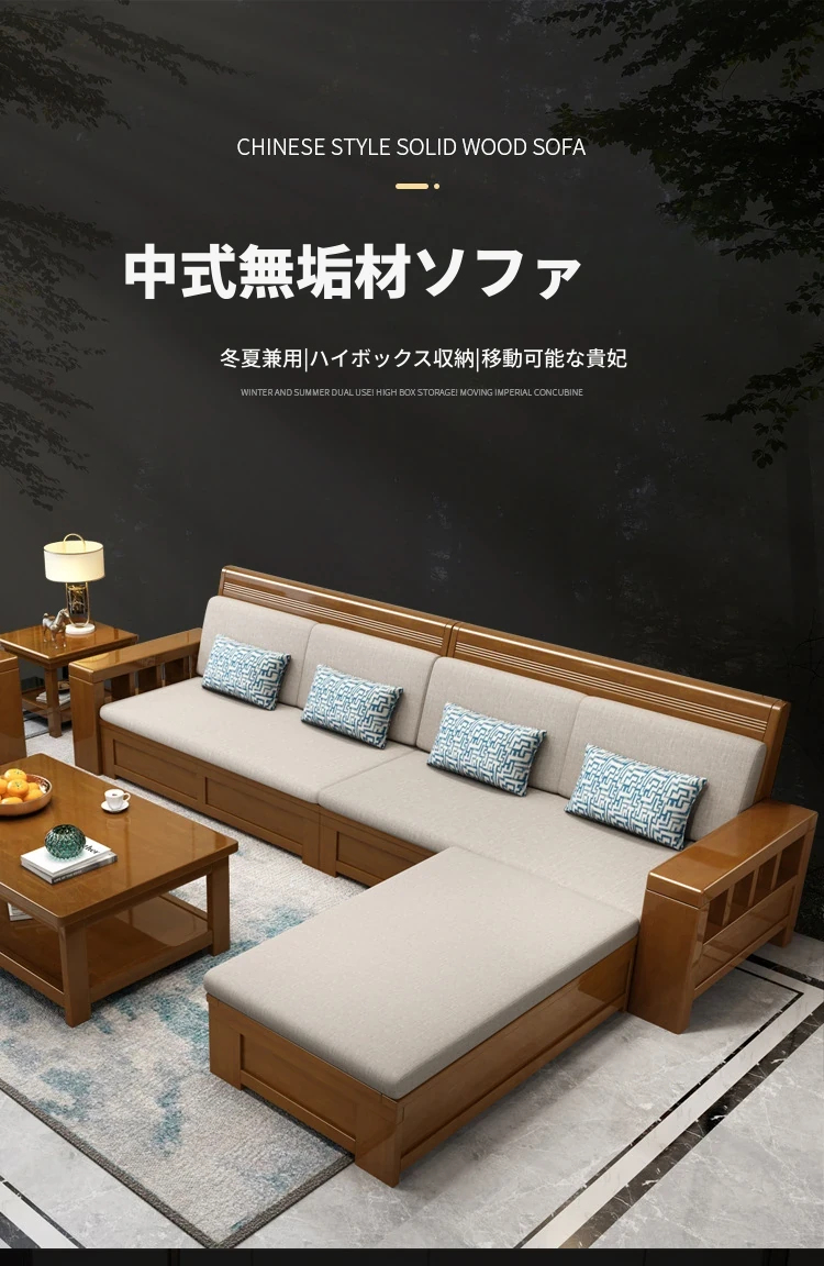 小SY-908# 中式実木ソファセット 大型リビング向け 冬夏兼用 おしゃれでシンプルなファブリックソファ