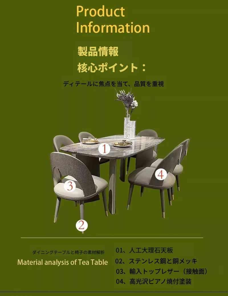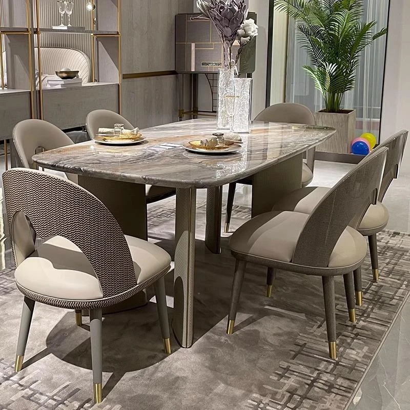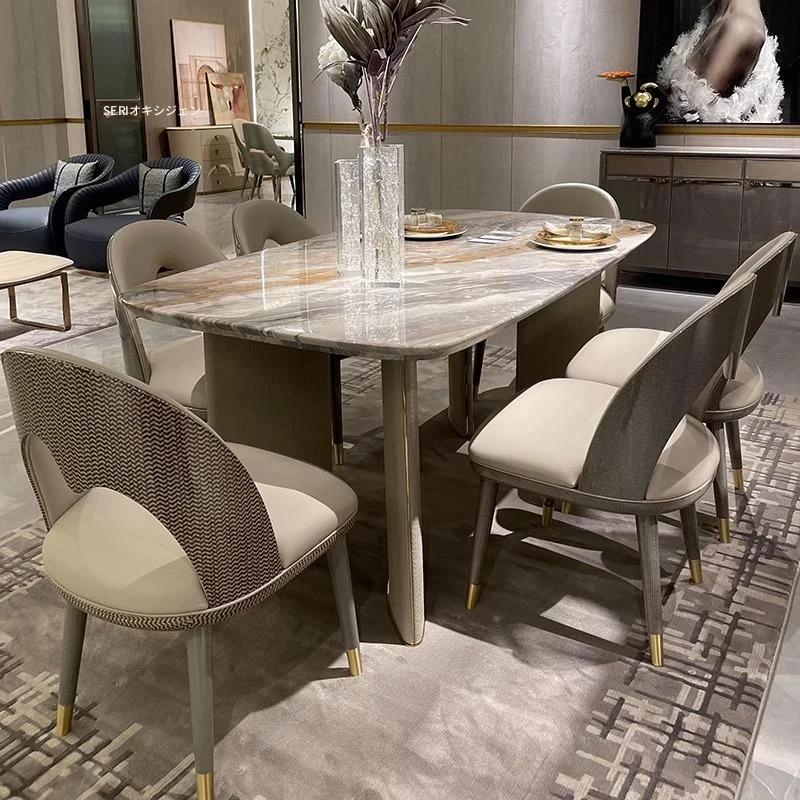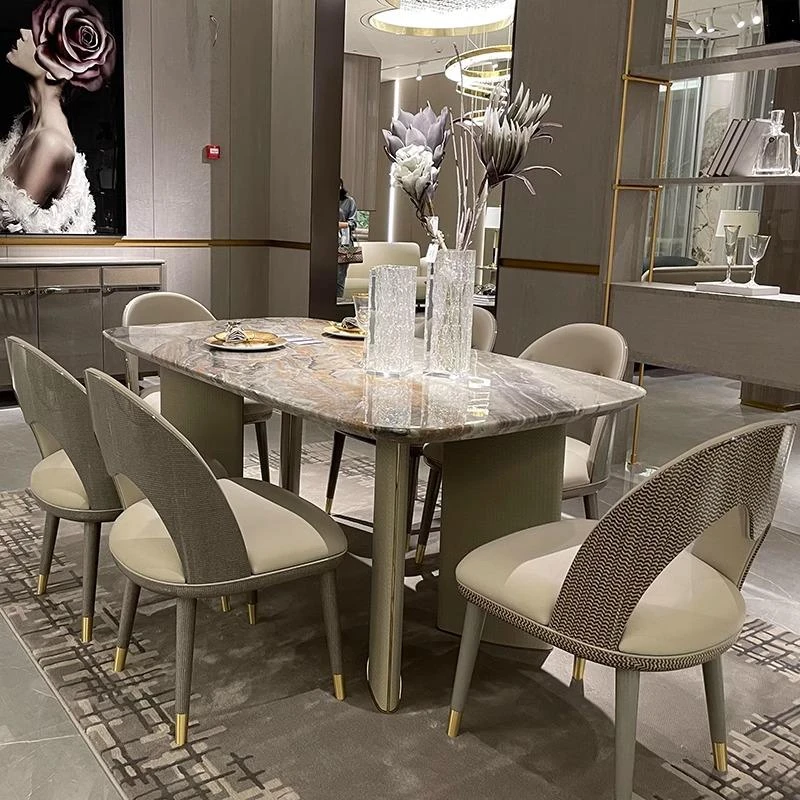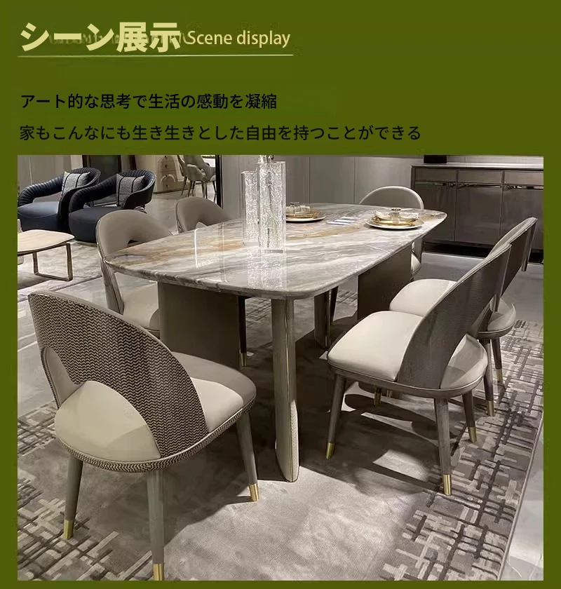 イタリアンラグジュアリーのダイニングテーブル&チェアセット - モダンでシンプルな大理石製、北欧インスパイアのスタイル、理想のモデルルーム家具として最適!