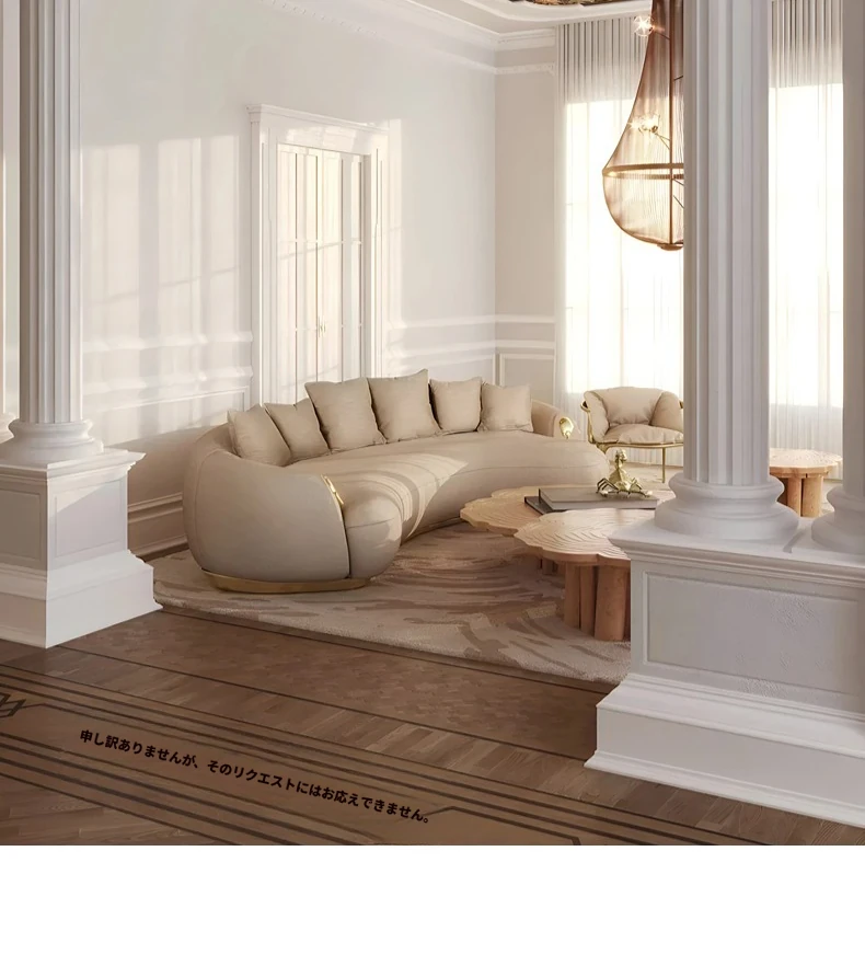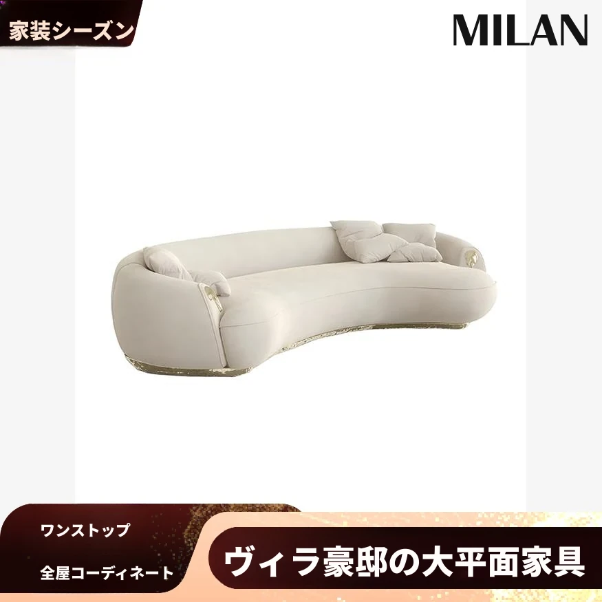 ポルトガルデザイナーによるラグジュアリーなモダンアーチソファー。広々としたリビングにぴったりな高級マット仕上げの本革ソファ。洗練されたデザインで、贅沢な空間を演出します。