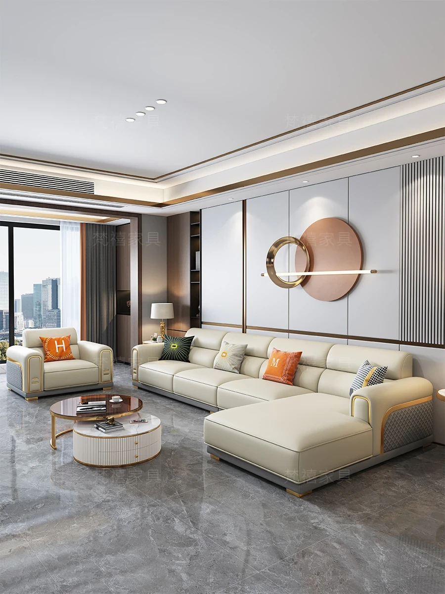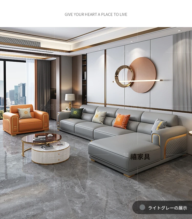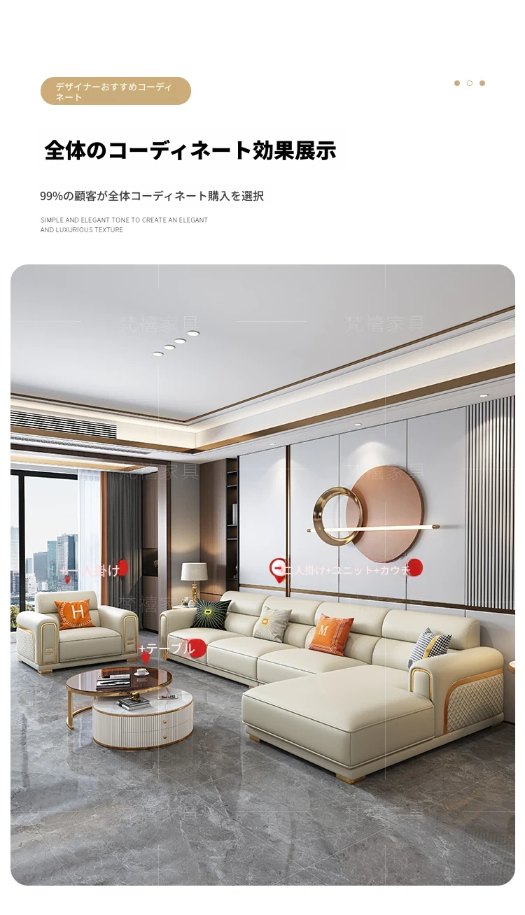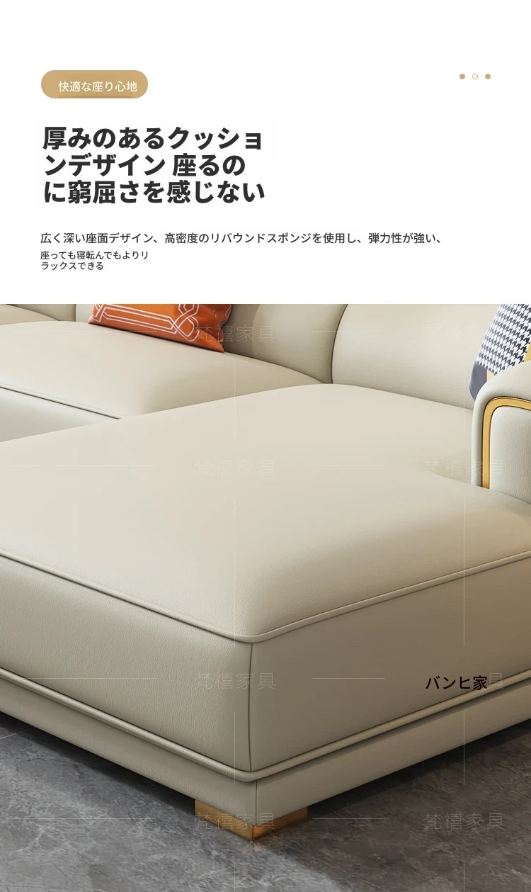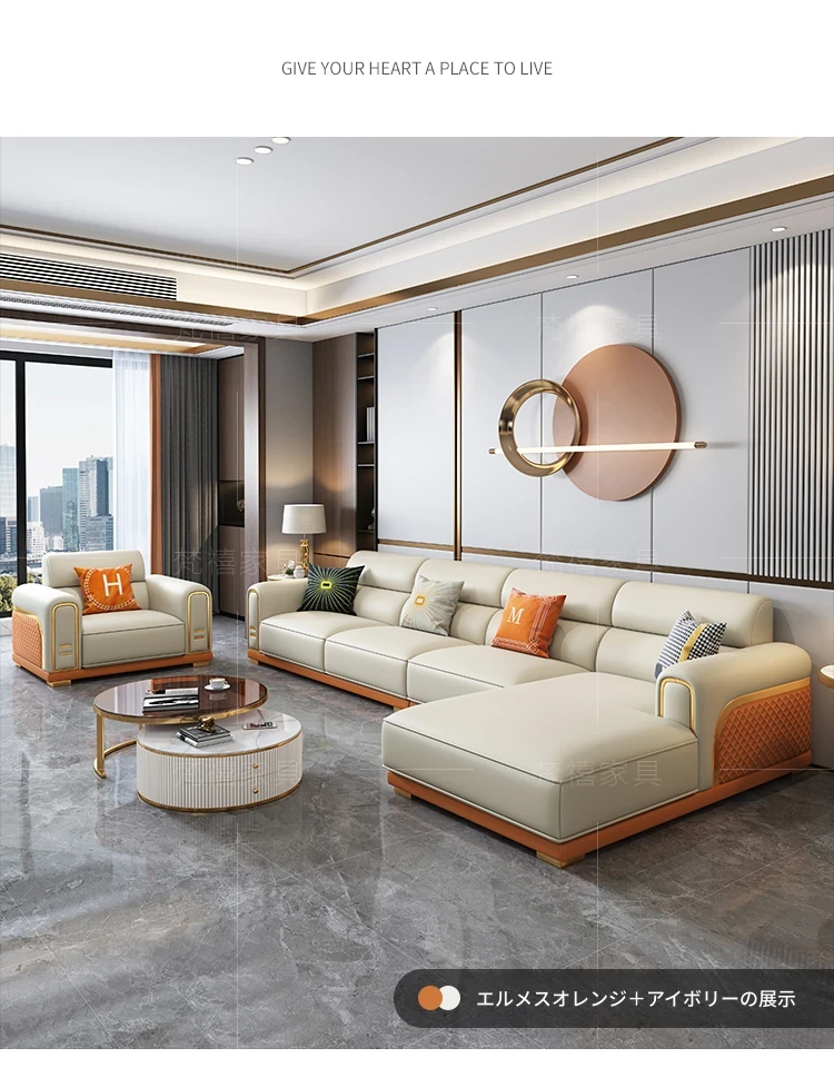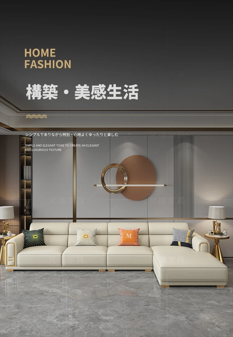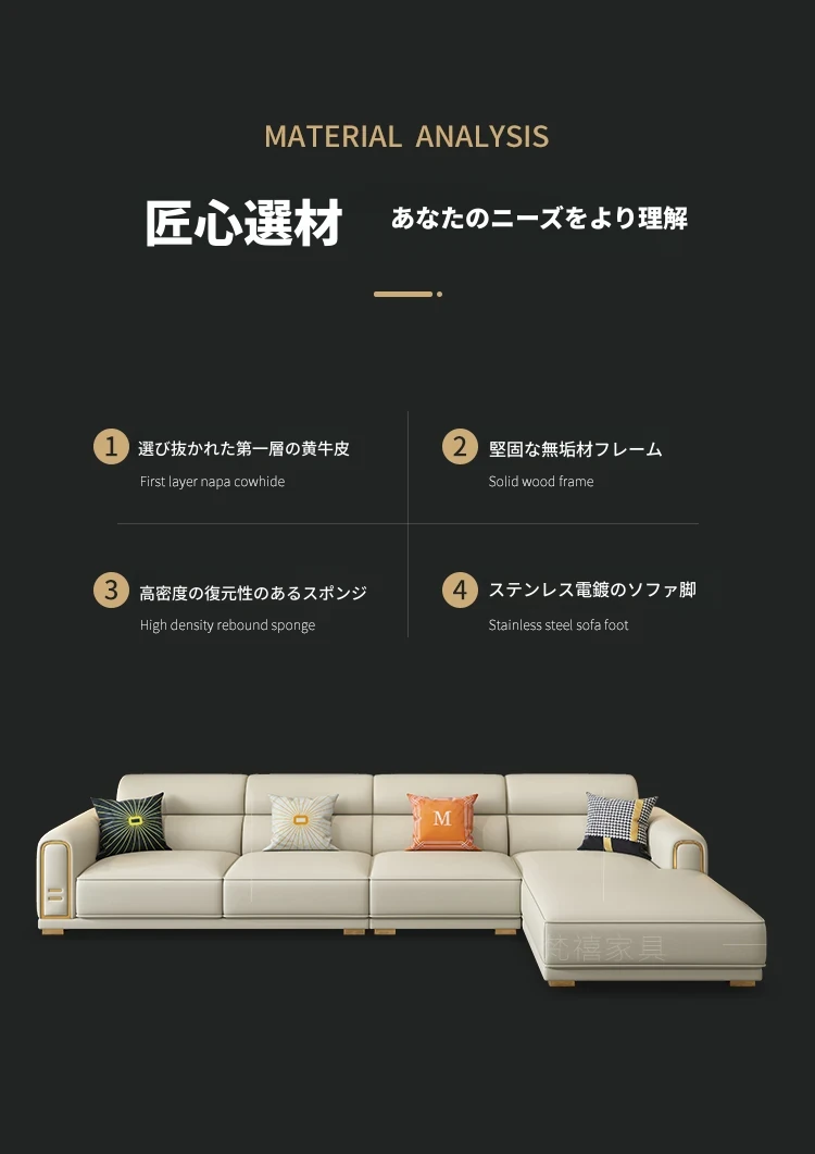 軽奢真皮コーナーソファー モダンリビング向け 小型住宅に最適 2023年新作 貴妃ソファー付き イタリアン本革使用で高級感溢れるデザイン