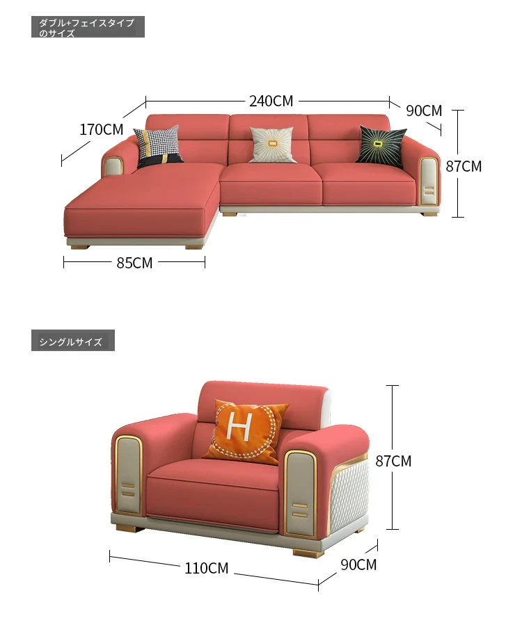フラッグシップ版【2.4メートルコーナーソファ+シングルチェア】