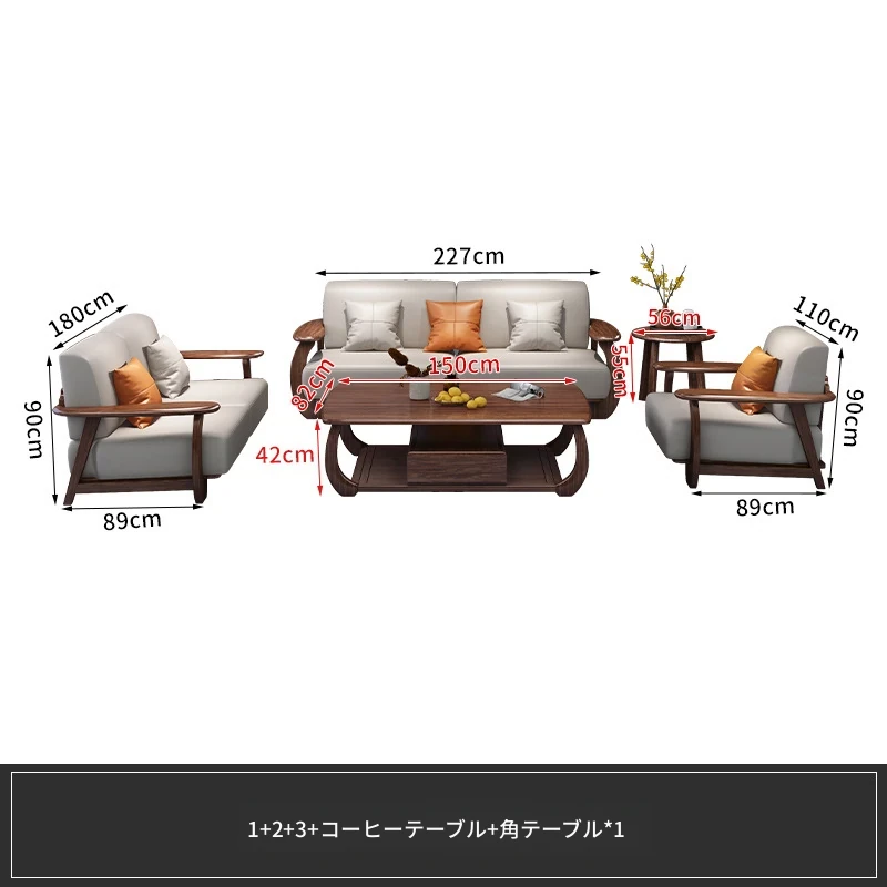 1+2+3+コーヒーテーブル+正方形テーブル*1