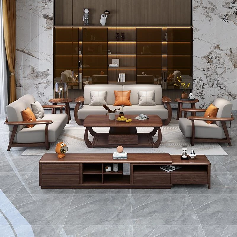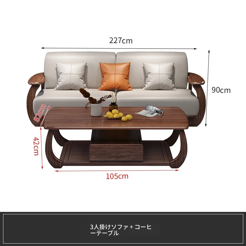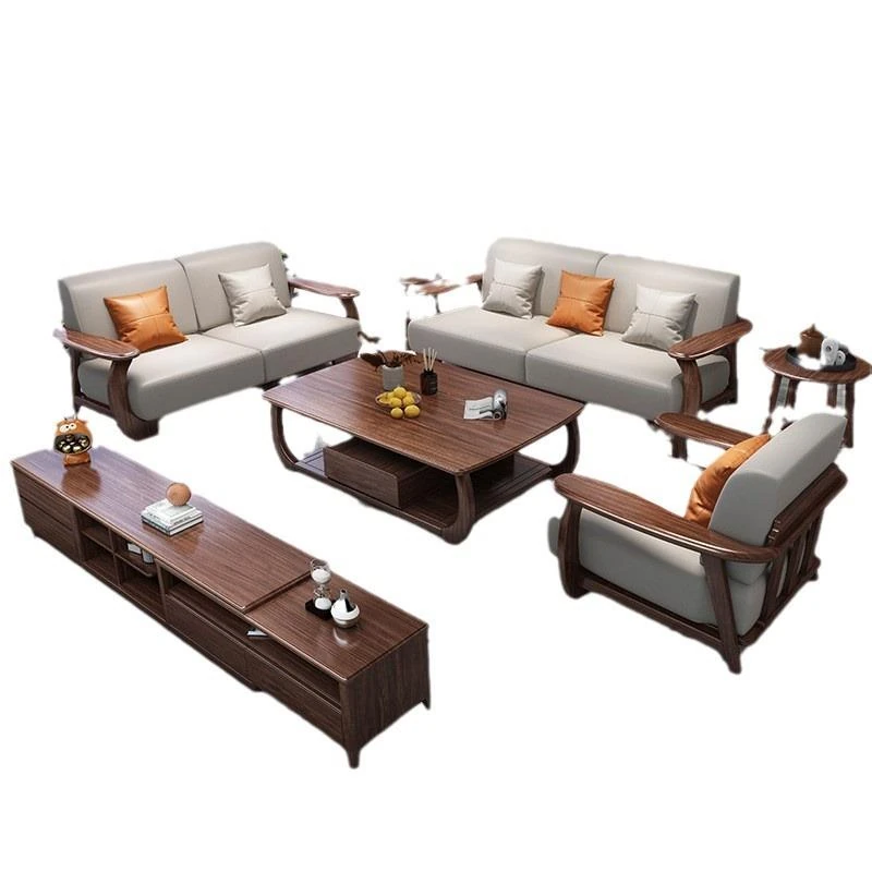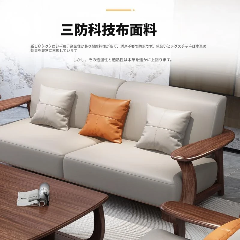ウッド調中式モダンソファセット - シンプルでスタイリッシュなデザイン、テクスチャー豊かな布地使用。大中小さまざまなリビングルームにぴったりな本格的木製家具!あなたの居住空間を格上げします。