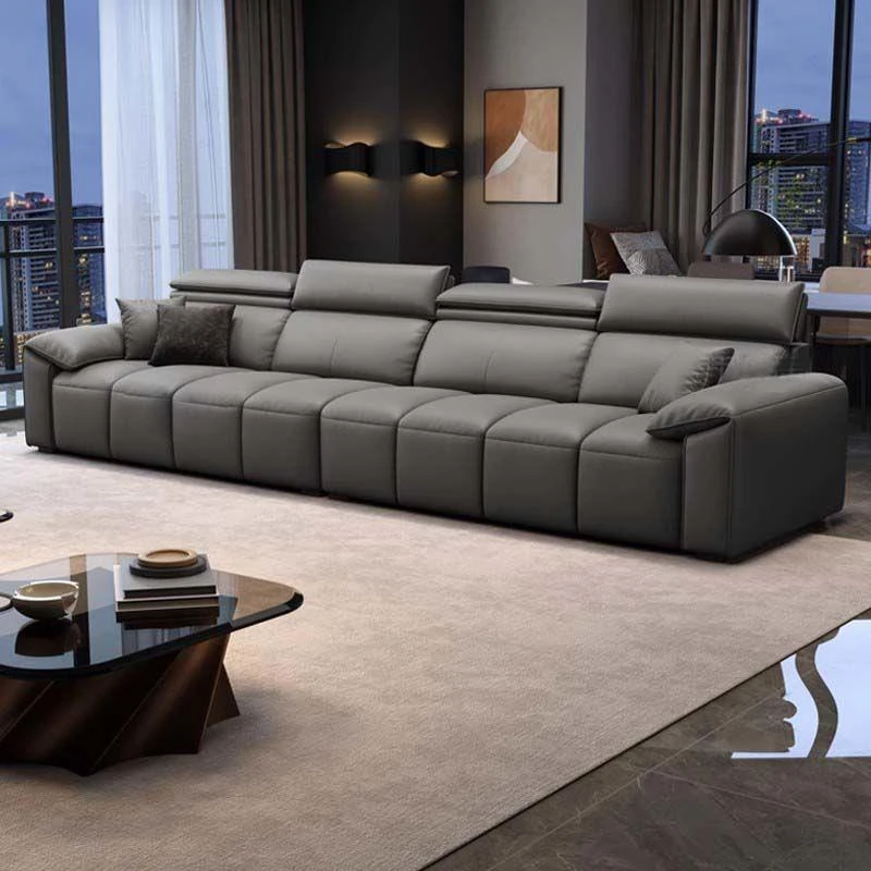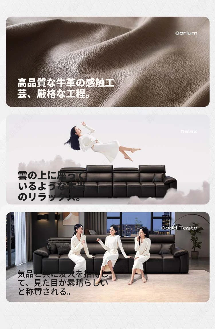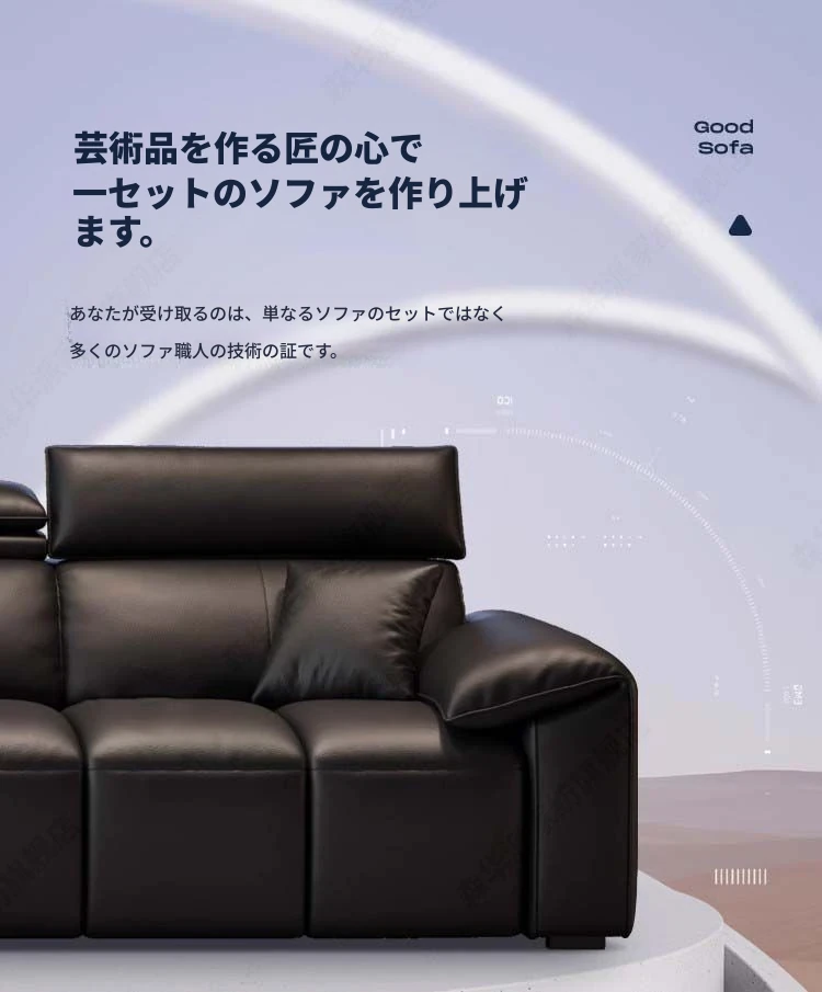 シンプルでモダンな本革ソファ|リビングに最適なサイズ|高級感漂う牛革製|ピアノの鍵盤のような直線デザイン|おしゃれで快適な空間を演出!