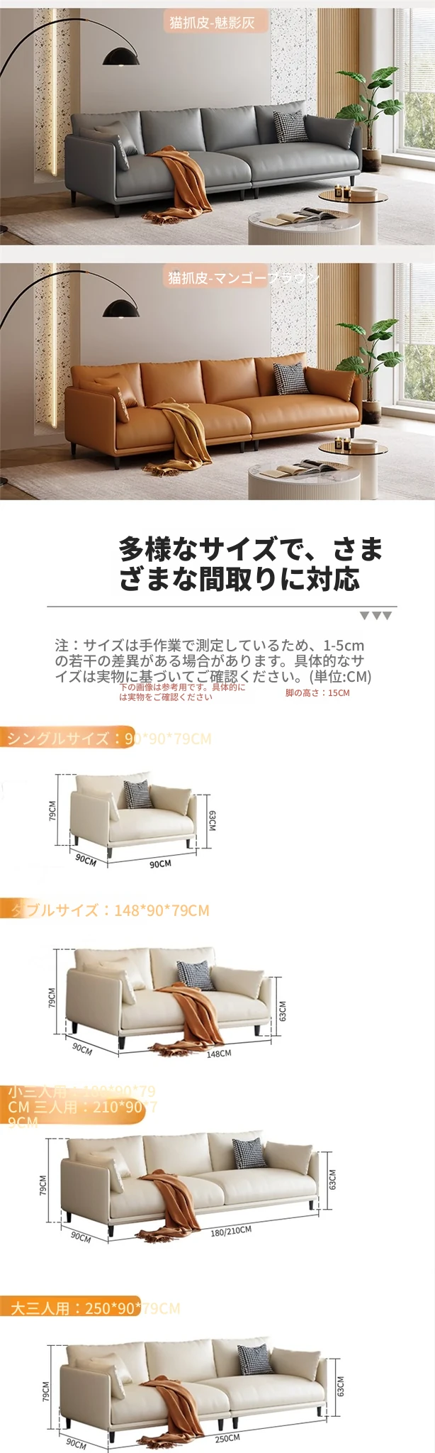 シンプルでモダンな小型リビングにぴったり!イタリアンラグジュアリーのデザイナー新作、猫の爪も安心なレザー仕様のインスタ映えするコンビネーションソファ。おしゃれで機能的な空間を演出!