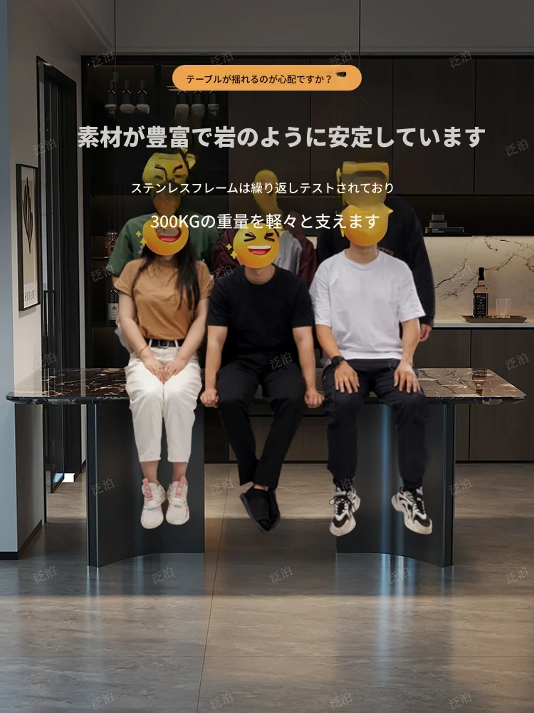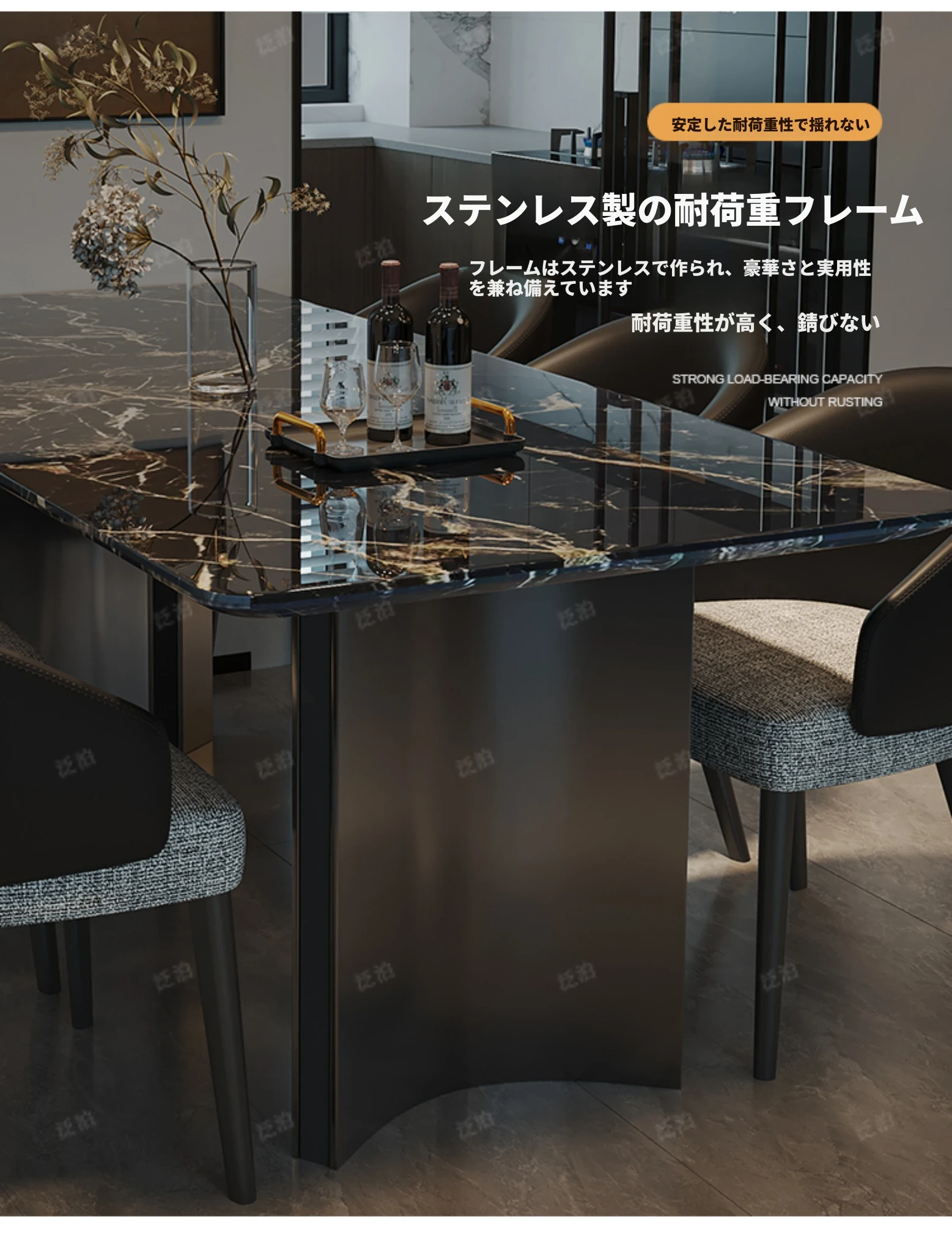 現代的ラグジュアリー、マーブルダイニングテーブルセット!シンプルで洗練された長方形デザイン、小さなスペースにもぴったりなステンレス製のテーブル&チェアコンビ。おしゃれで快適な食事のひとときを楽しもう!
