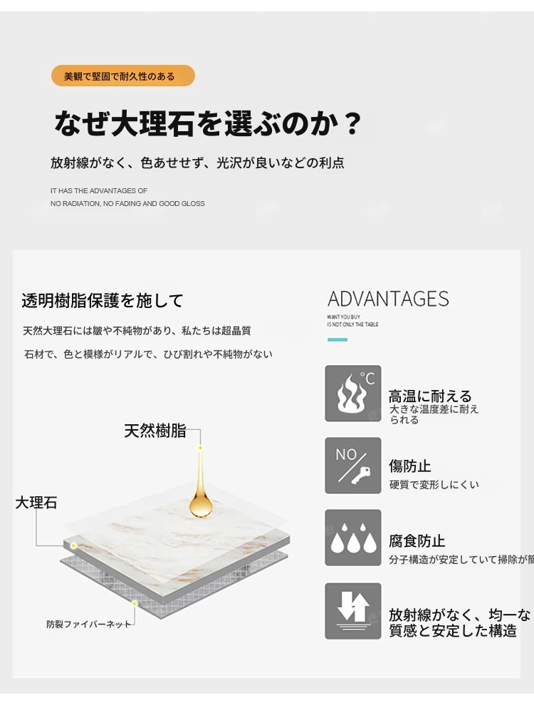 イタリアン大理石ダイニングテーブル【1.8m】+8椅子