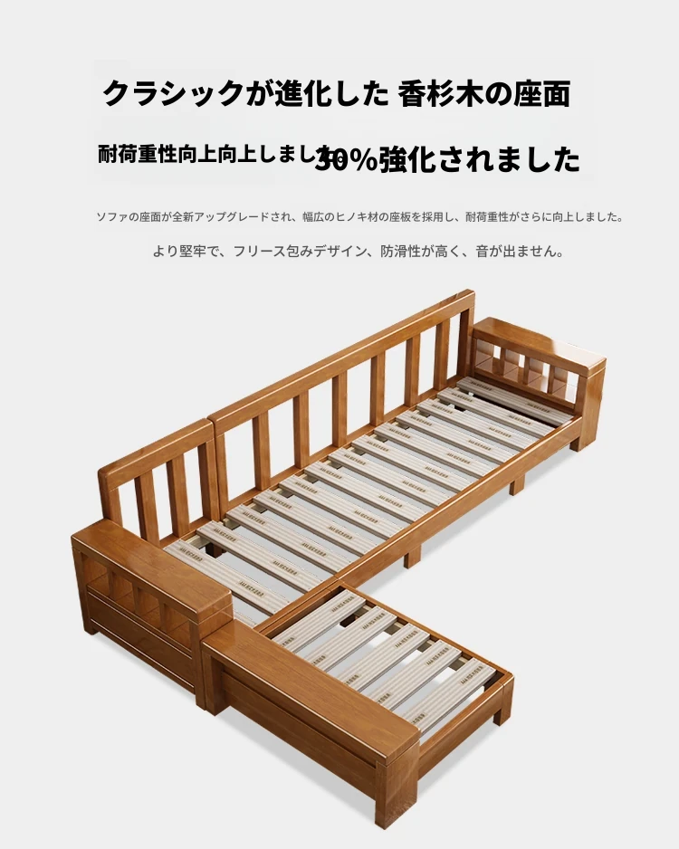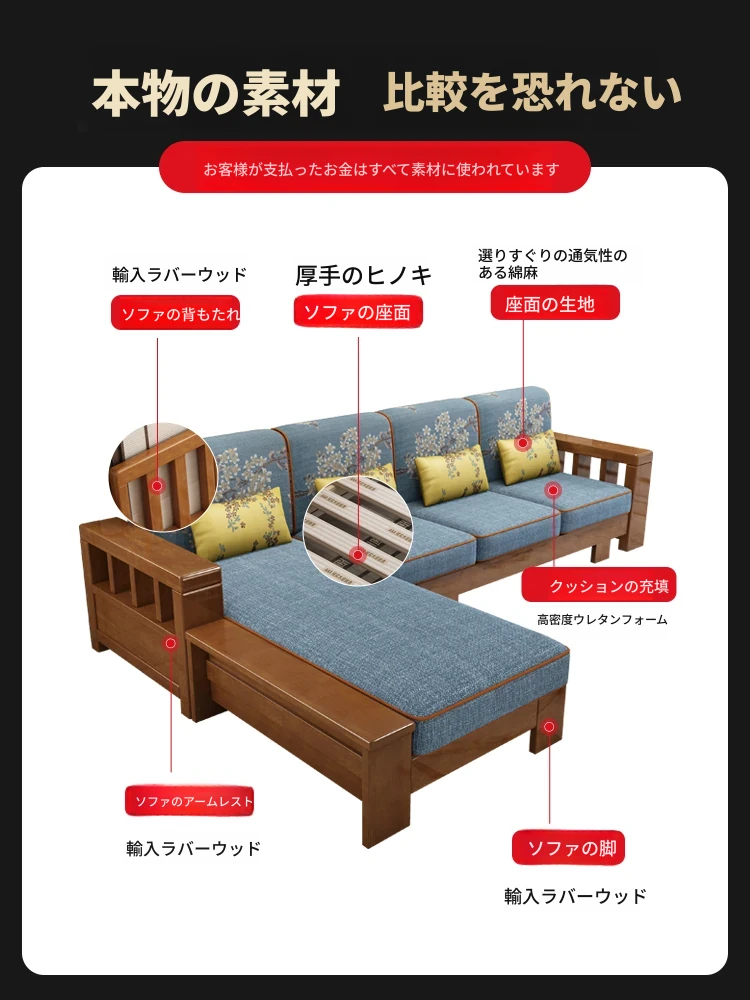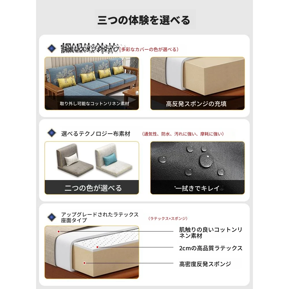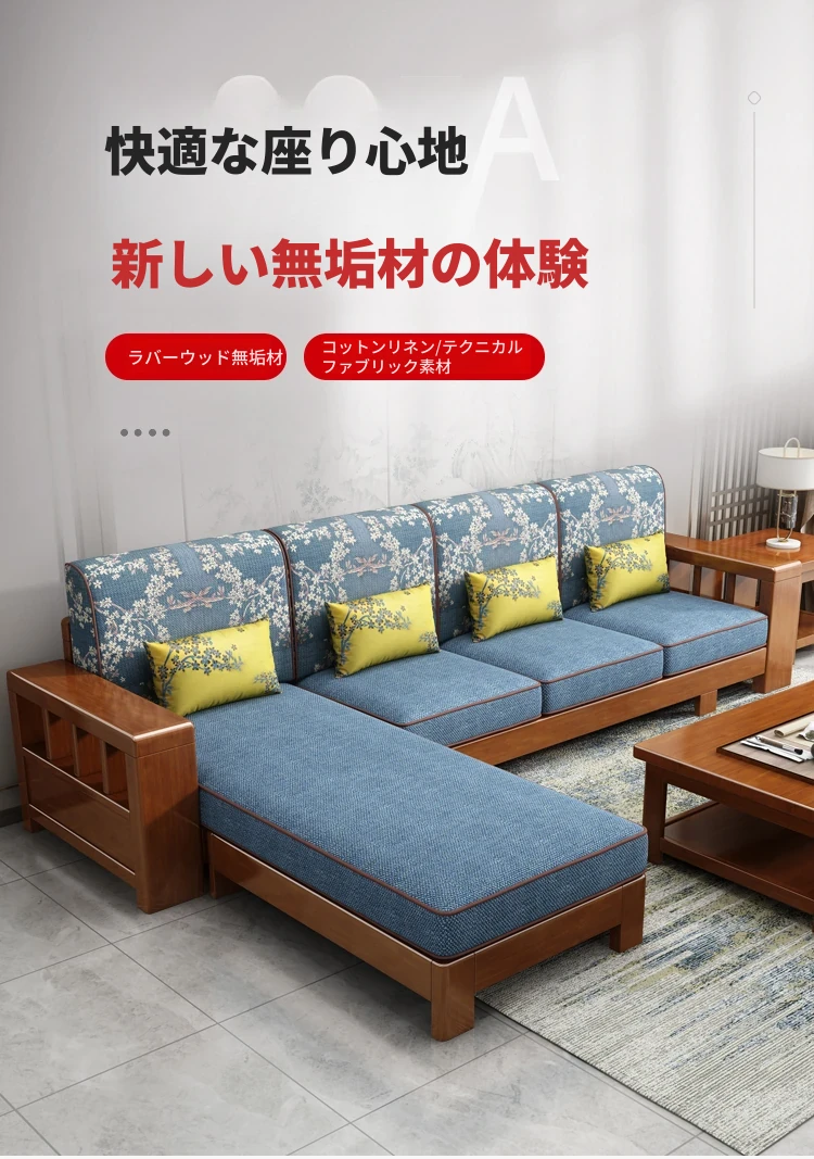 新中式全実木ソファー - モダンでシンプルなデザイン、リビングにぴったりのコンパクトサイズ。自然な木の質感を楽しめる新作!小型住宅にも最適な組み合わせ家具。