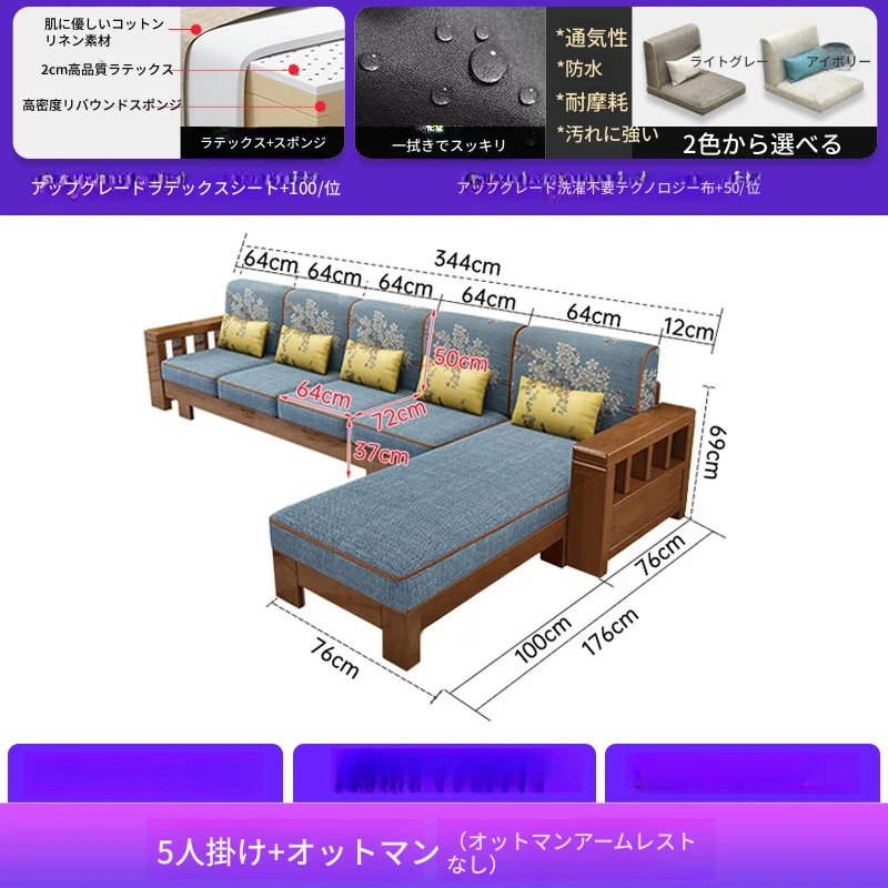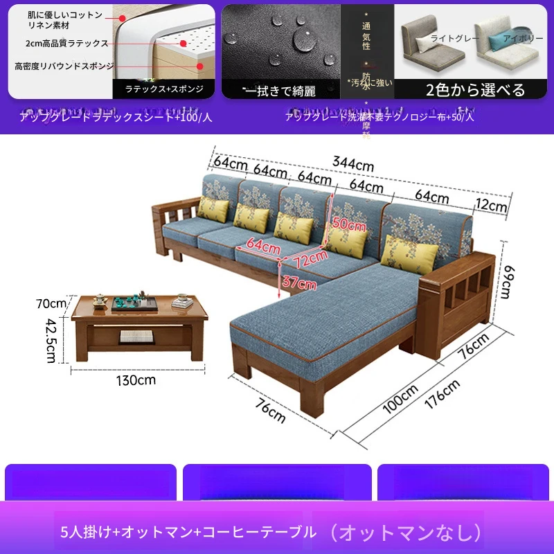 ~5人掛けソファ+貴妃椅+コーヒーテーブル+1人掛けソファ【長さ3.44メートル】