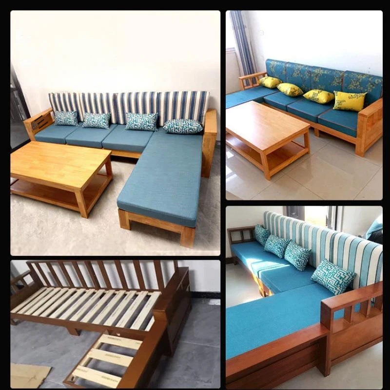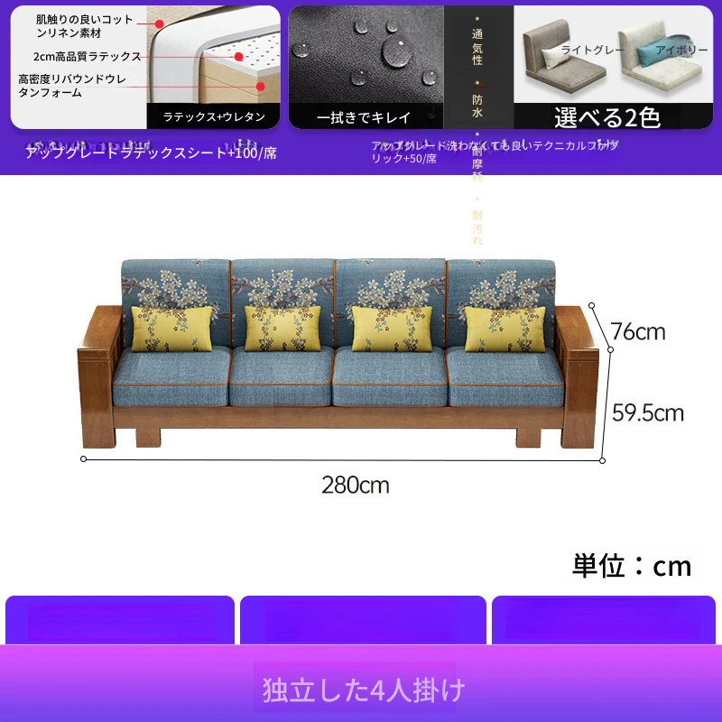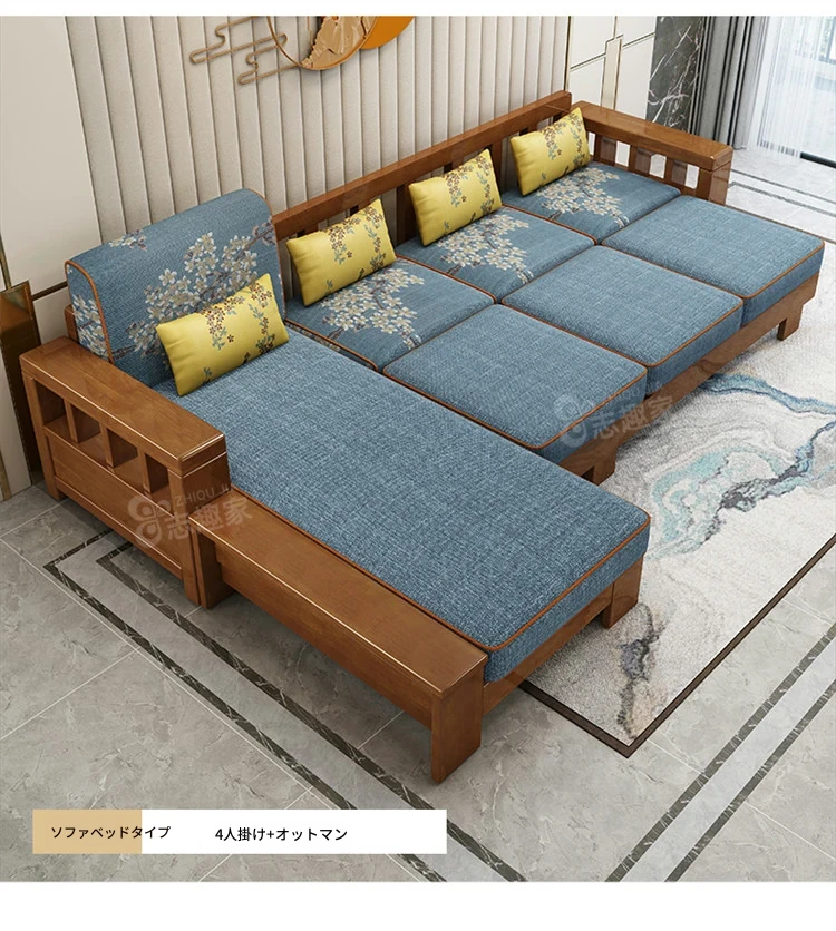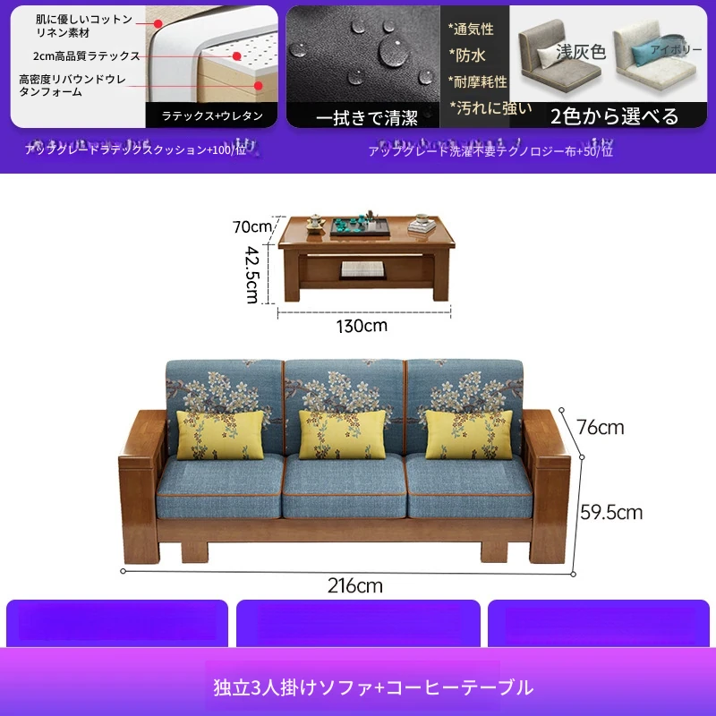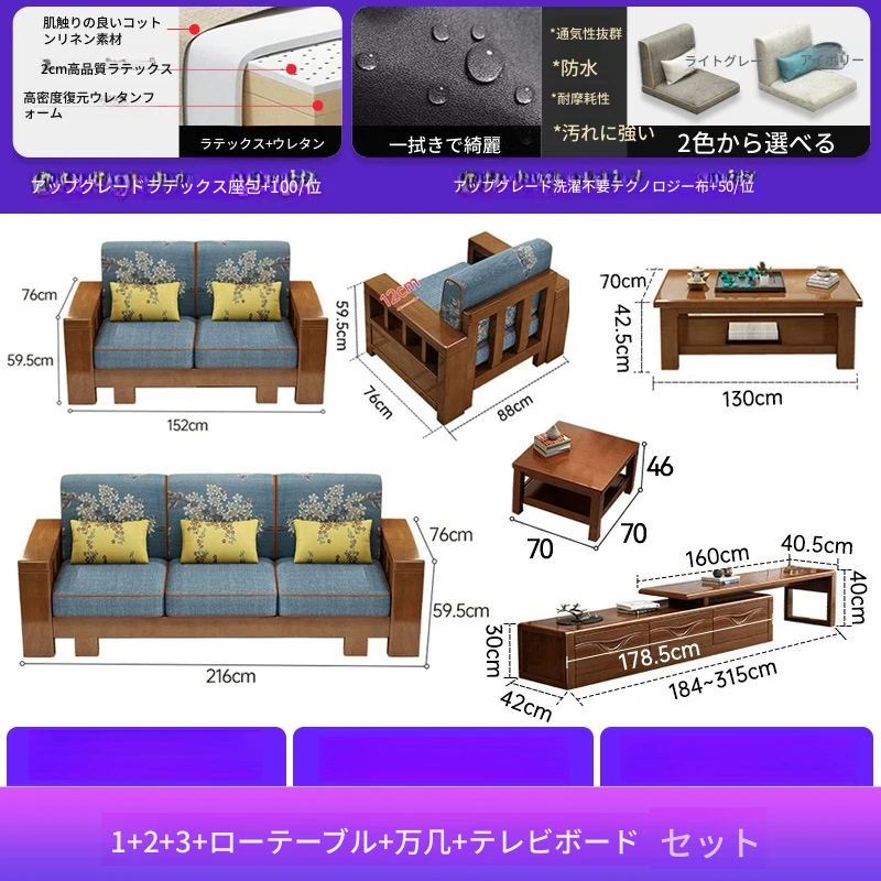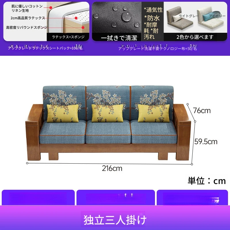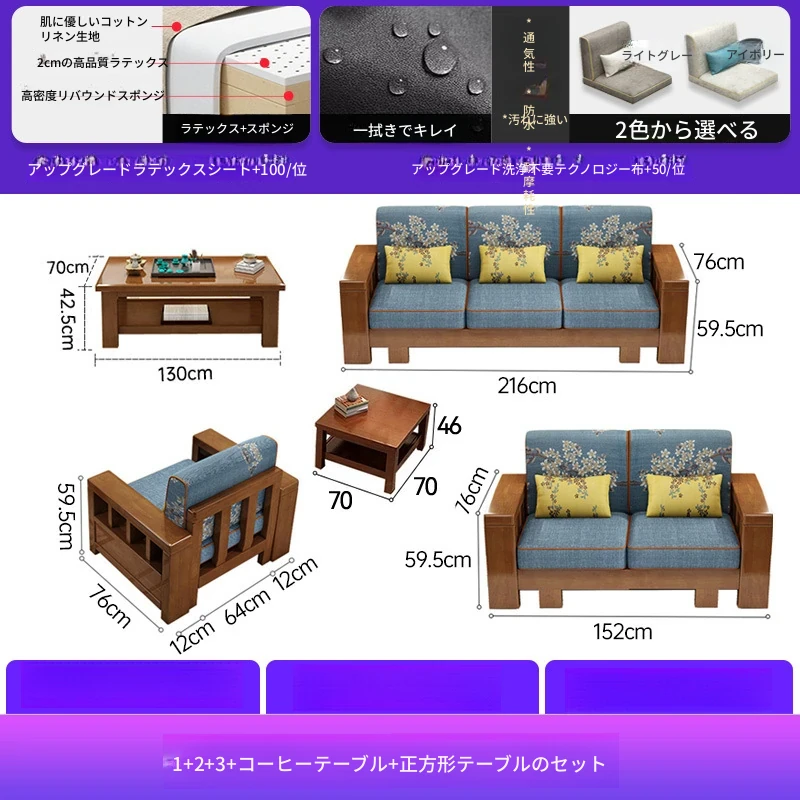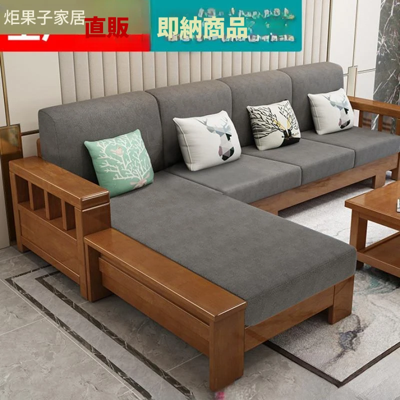 新中式スタイルの天然木製ソファセット - モダンでシンプルなデザイン、小さなスペースにもぴったりの全木製家具。リラックスした空間を演出し、心地よいひとときを提供します。