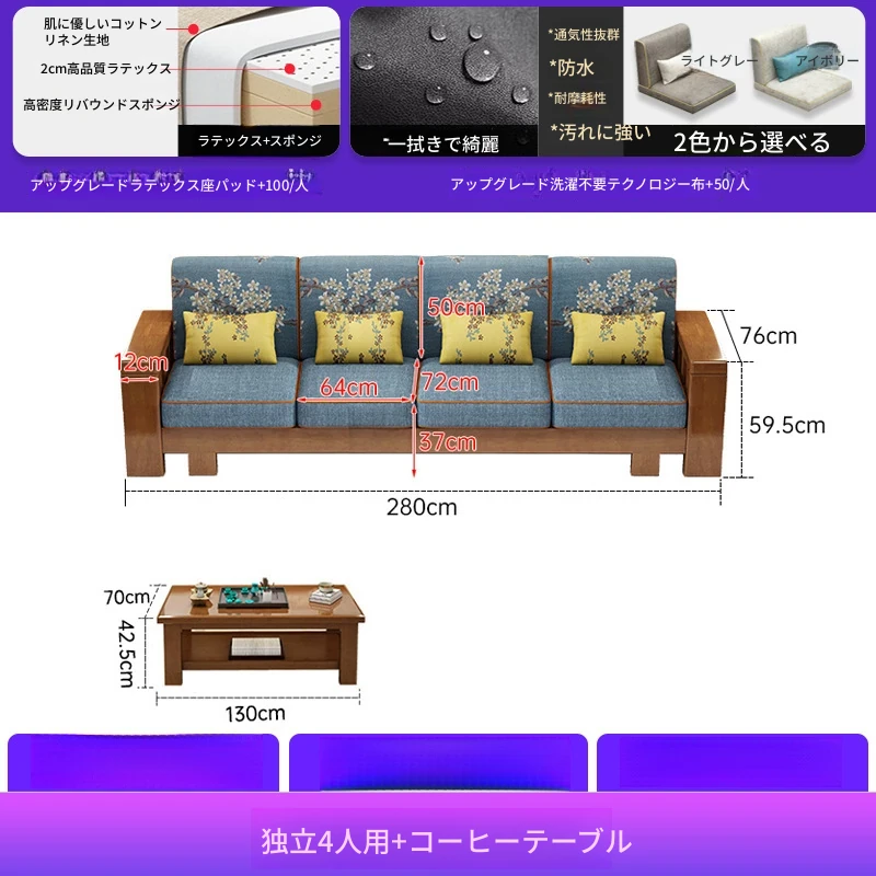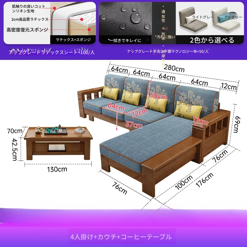 4人用ソファ+貴妃椅+コーヒーテーブル+1人用ソファ(長さ2.8メートル)