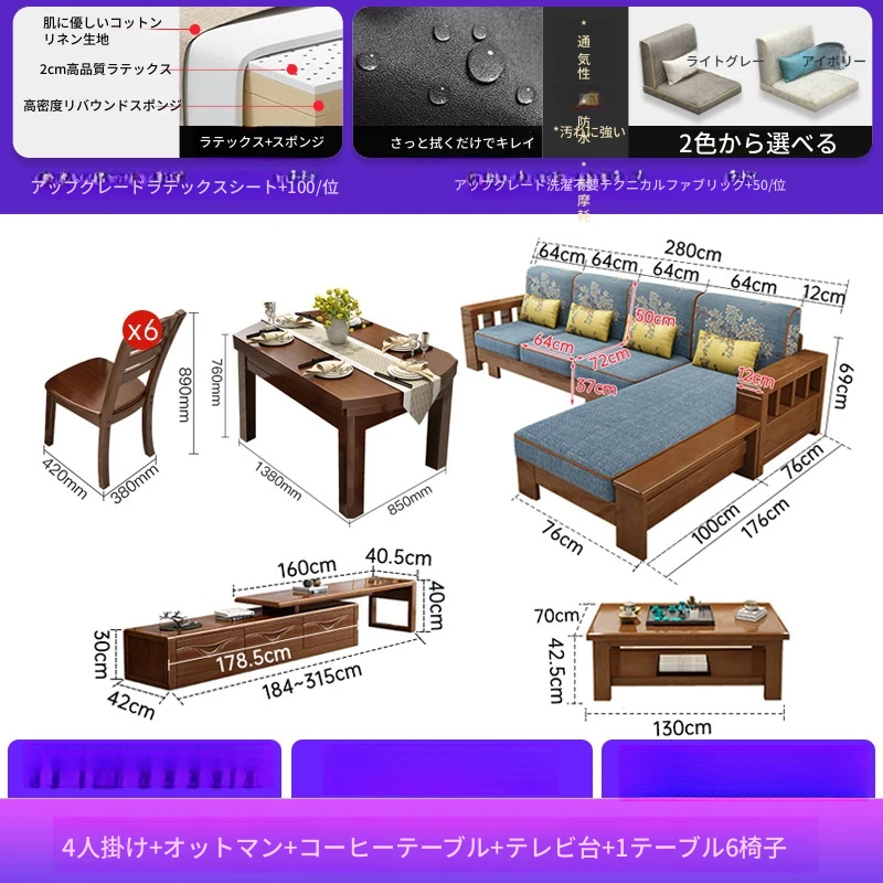 4人用ソファ+貴妃+コーヒーテーブル+テレビ台+ダイニングテーブル(長さ2.8メートル)
