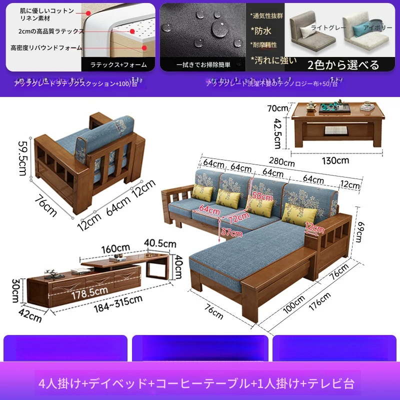 4人用ソファ + 貴妃 + コーヒーテーブル + テレビ台(長さ2.8メートル)