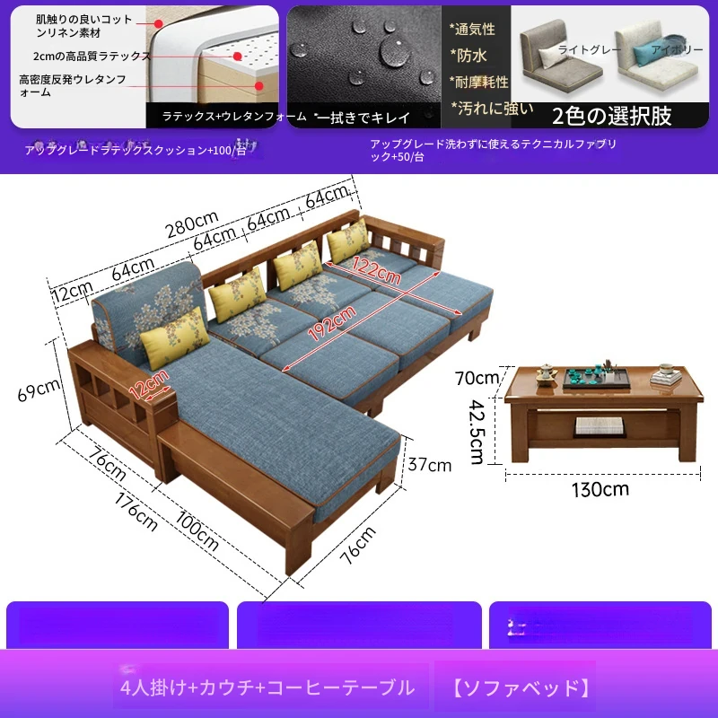 #4人掛けソファ+オットマン+コーヒーテーブル【ソファベッド】