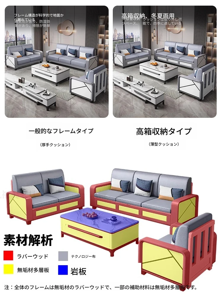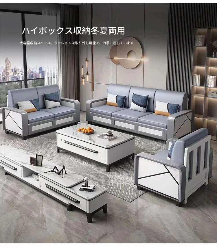 モダンシンプルな無垢材ソファセット 1+2+3人用 大小様々なリビングに最適 冬夏両用・収納付きソファで快適空間を演出!