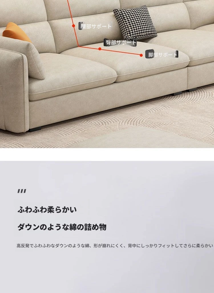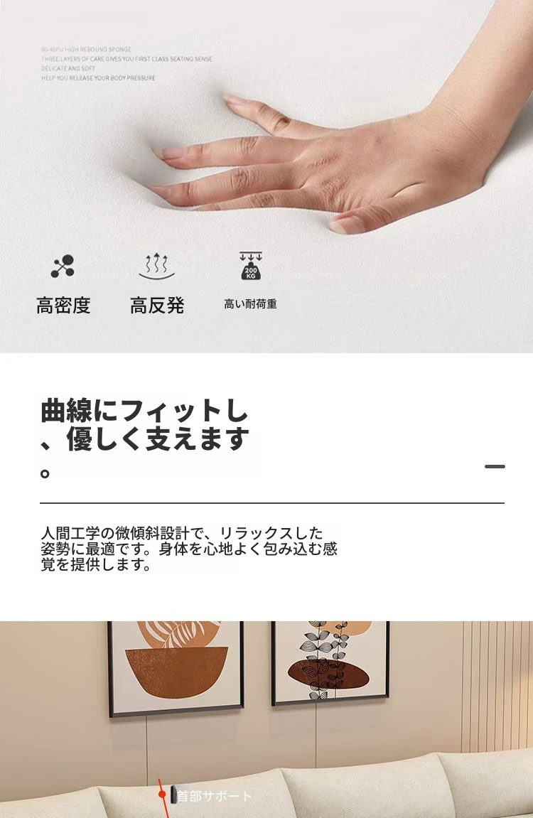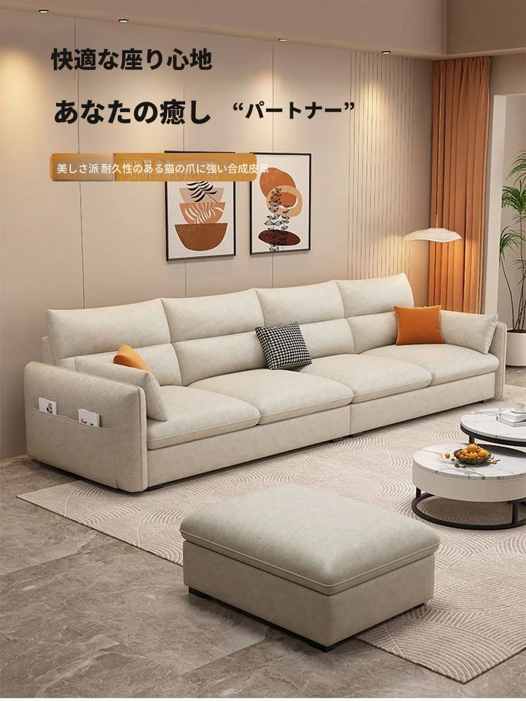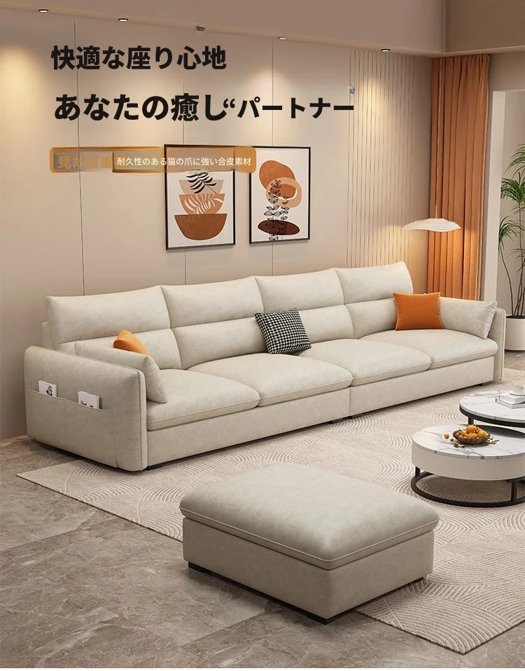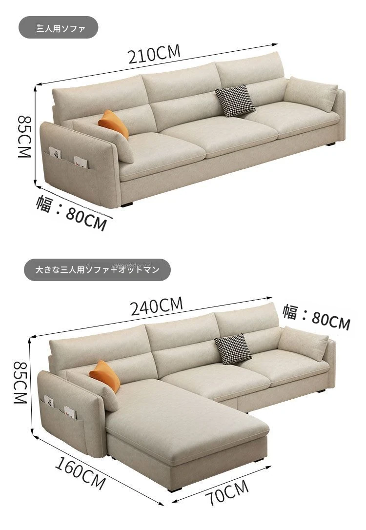 モダンミニマリスト直線デザインの洗えるテクノロジー布製ソファ、家族向け・リビング用・小型スペースに最適な一字型ソファ!シンプルでスタイリッシュ、快適な座り心地を実現!