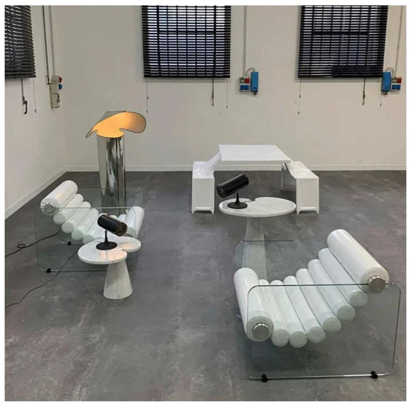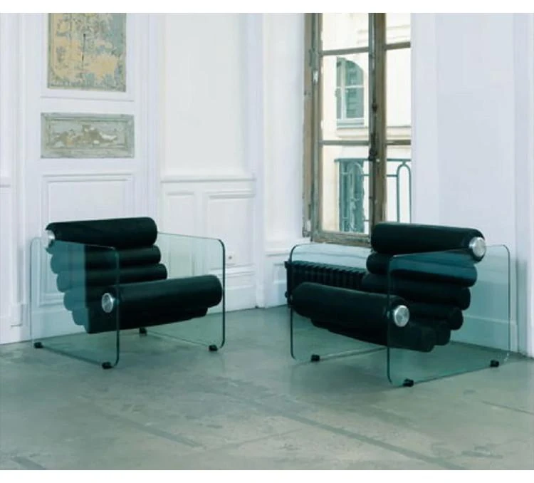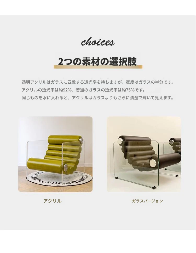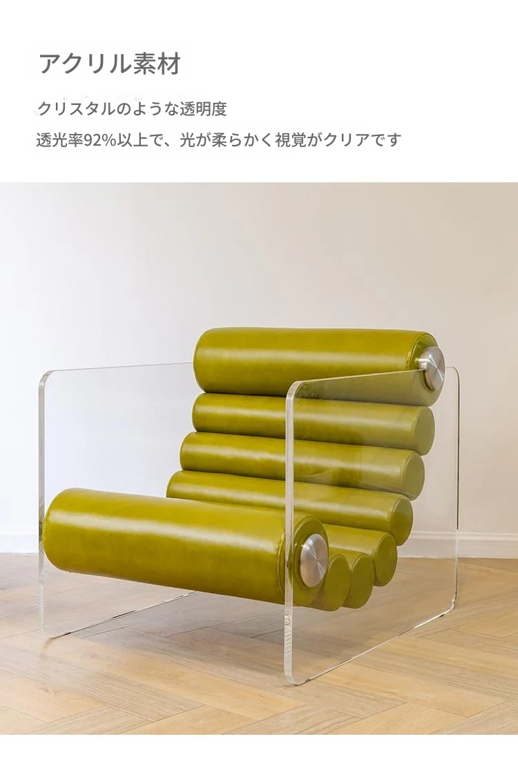 モダンでシンプルな透明アクリルソファチェア - 北欧スタイルのファブリックリクライニングチェア、個性的なリビングルームにぴったりな一人掛けソファ!快適な休息空間を演出します。