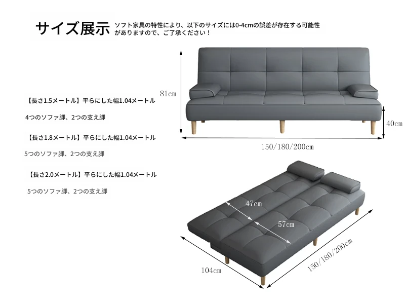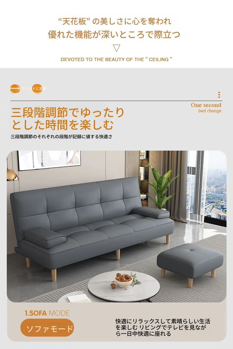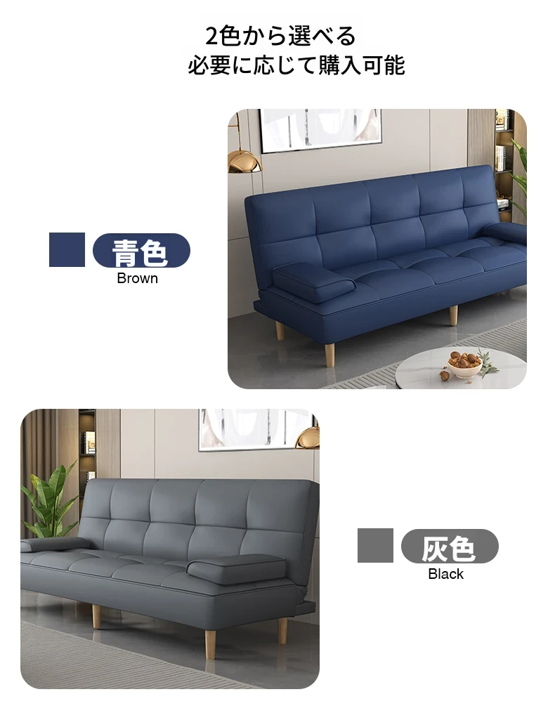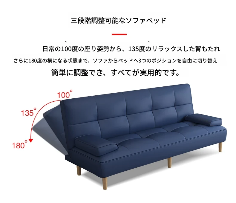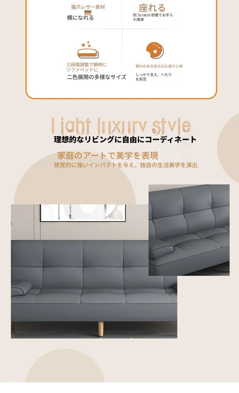 多機能2Lソファベッド - 折りたたみ式7段階調整、リビングや小さな部屋に最適なシンプルでモダンなデザイン!2389円で、猫にも優しいソフトな合皮素材。快適な空間を手に入れよう!