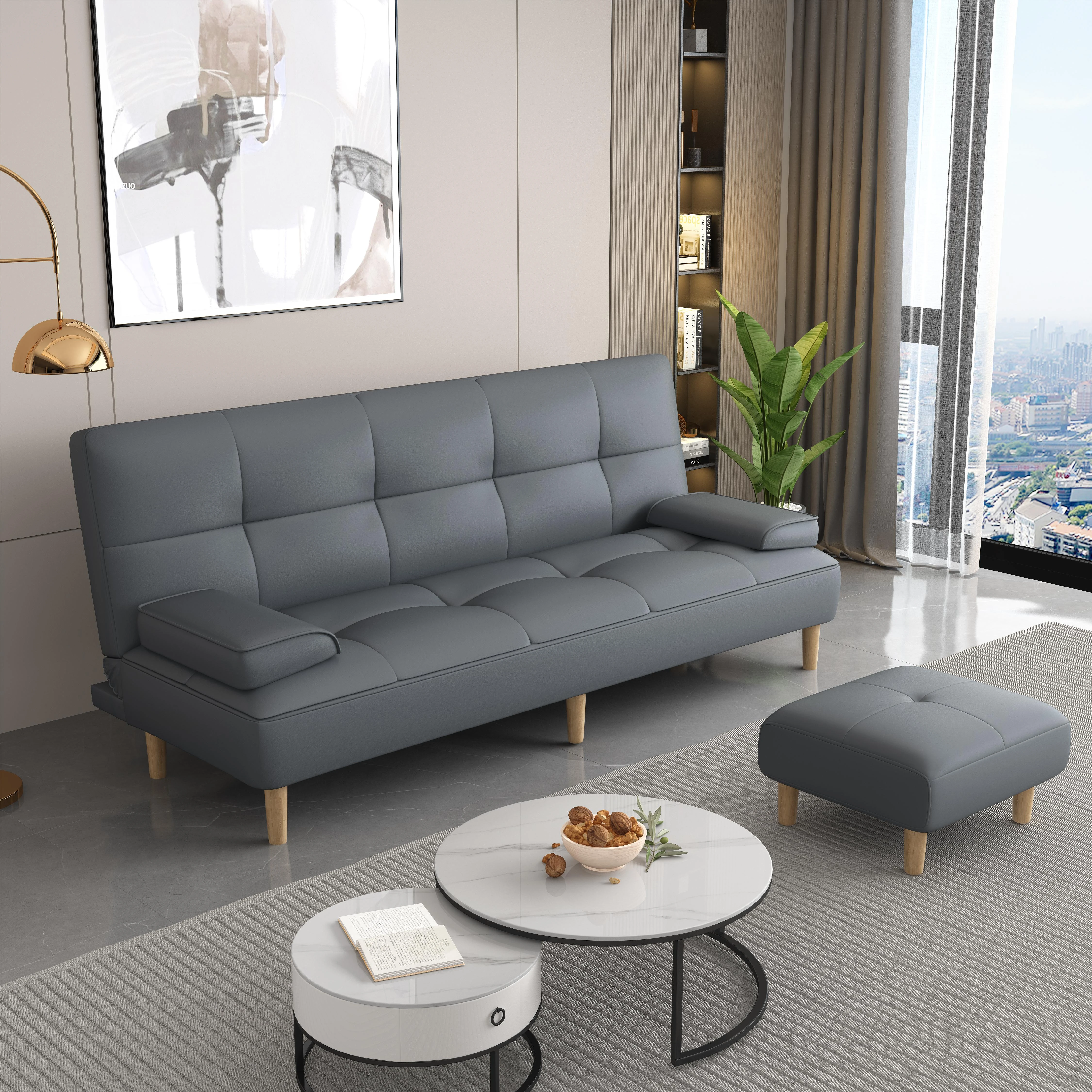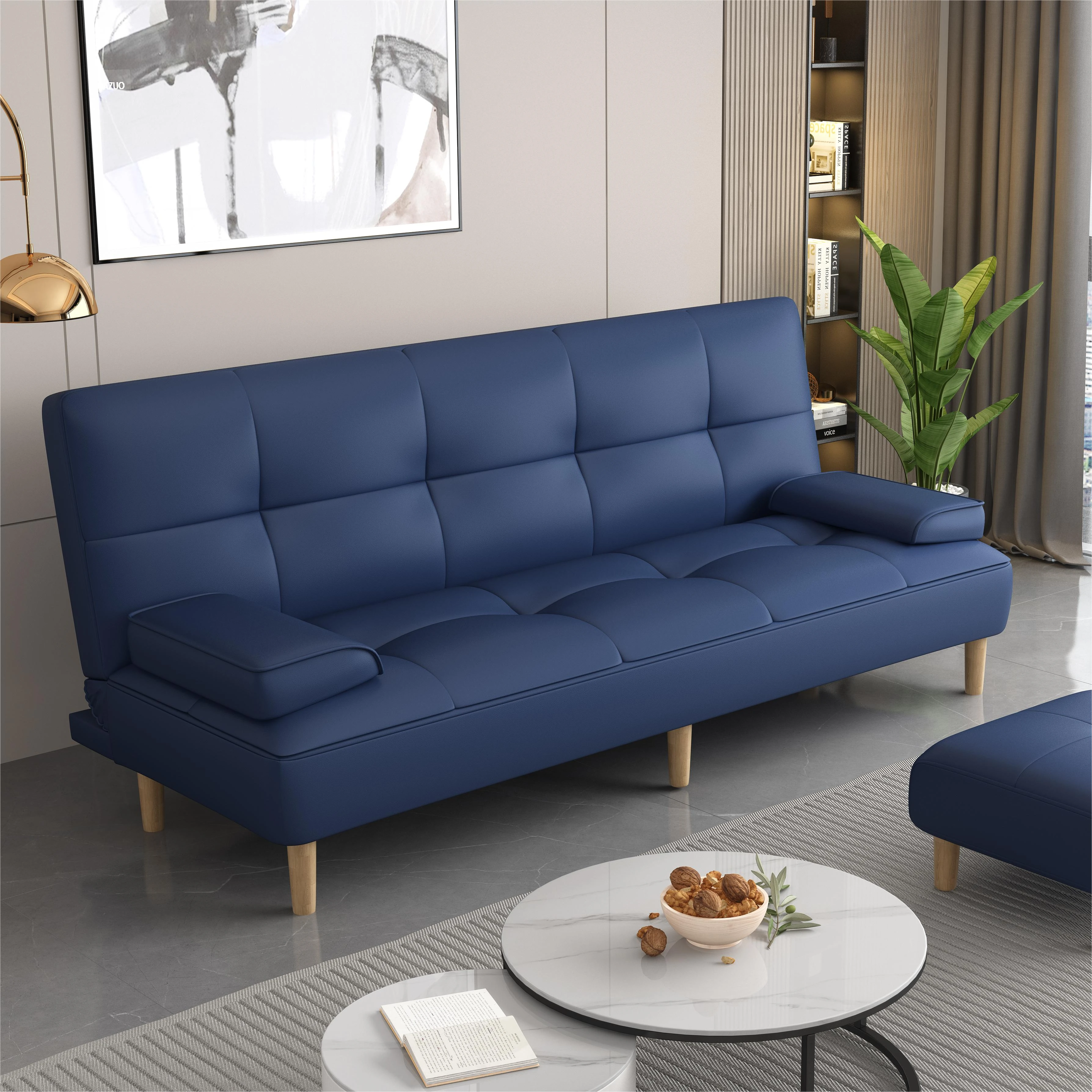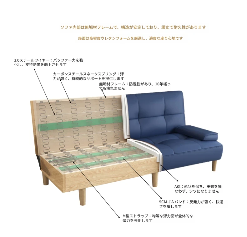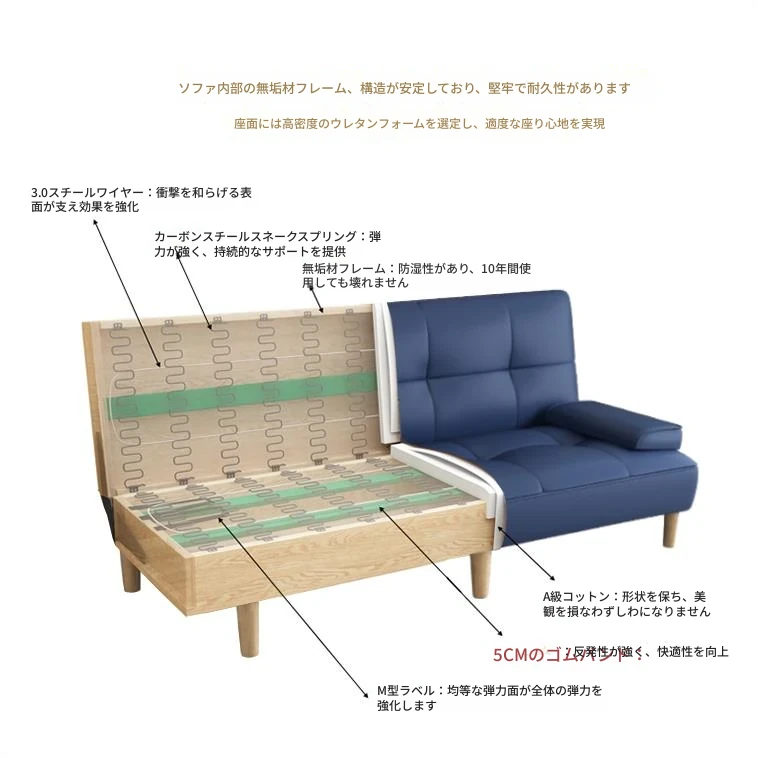 多機能2Lソファベッド - 折りたたみ式7段階調整、リビングや小さな部屋に最適なシンプルでモダンなデザイン!2389円で、猫にも優しいソフトな合皮素材。快適な空間を手に入れよう!