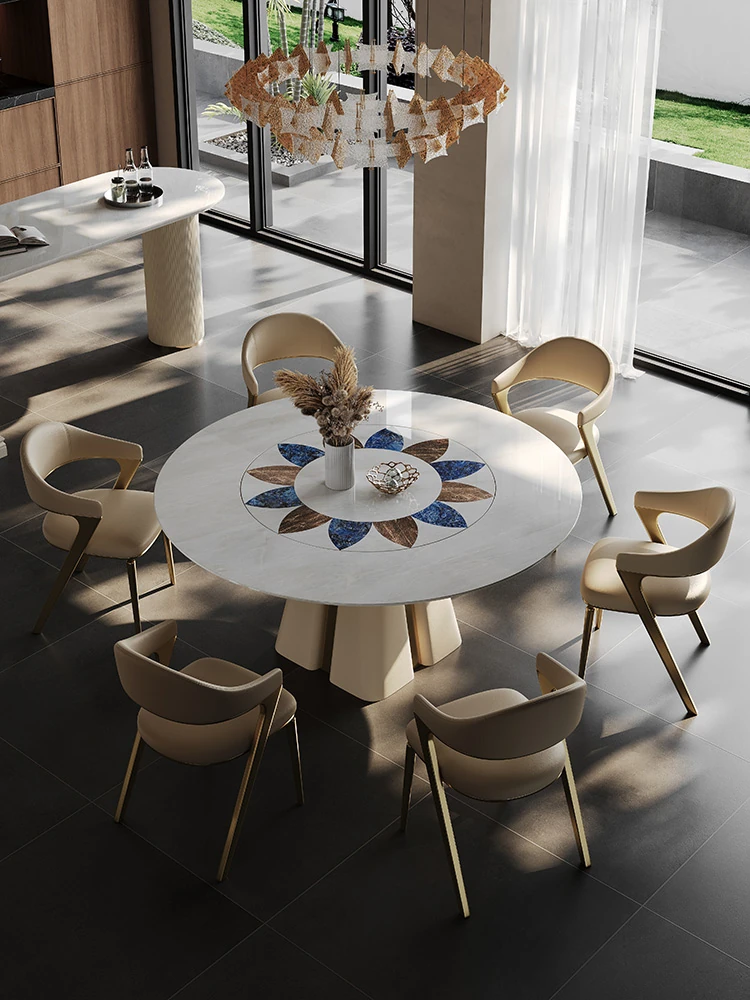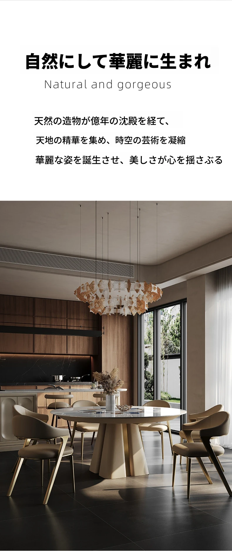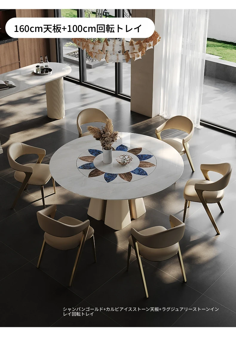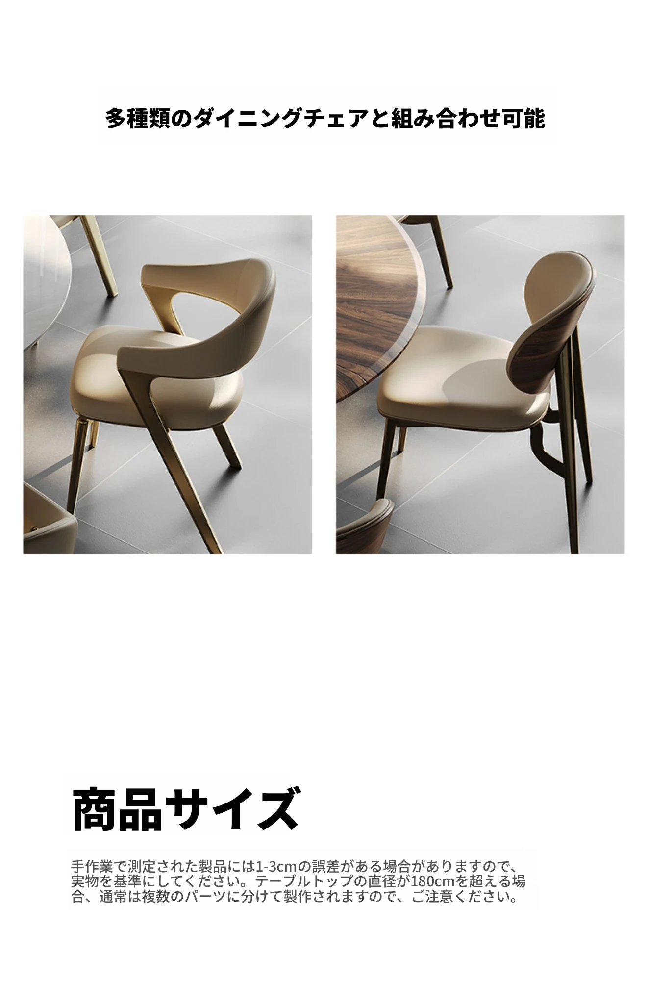 高級感あふれるモダンな大理石ダイニングテーブル&チェアセット - シンプルでエレガントな新作、温もりのある天然木風デザイン、ラウンド型でどんなインテリアにもマッチ!