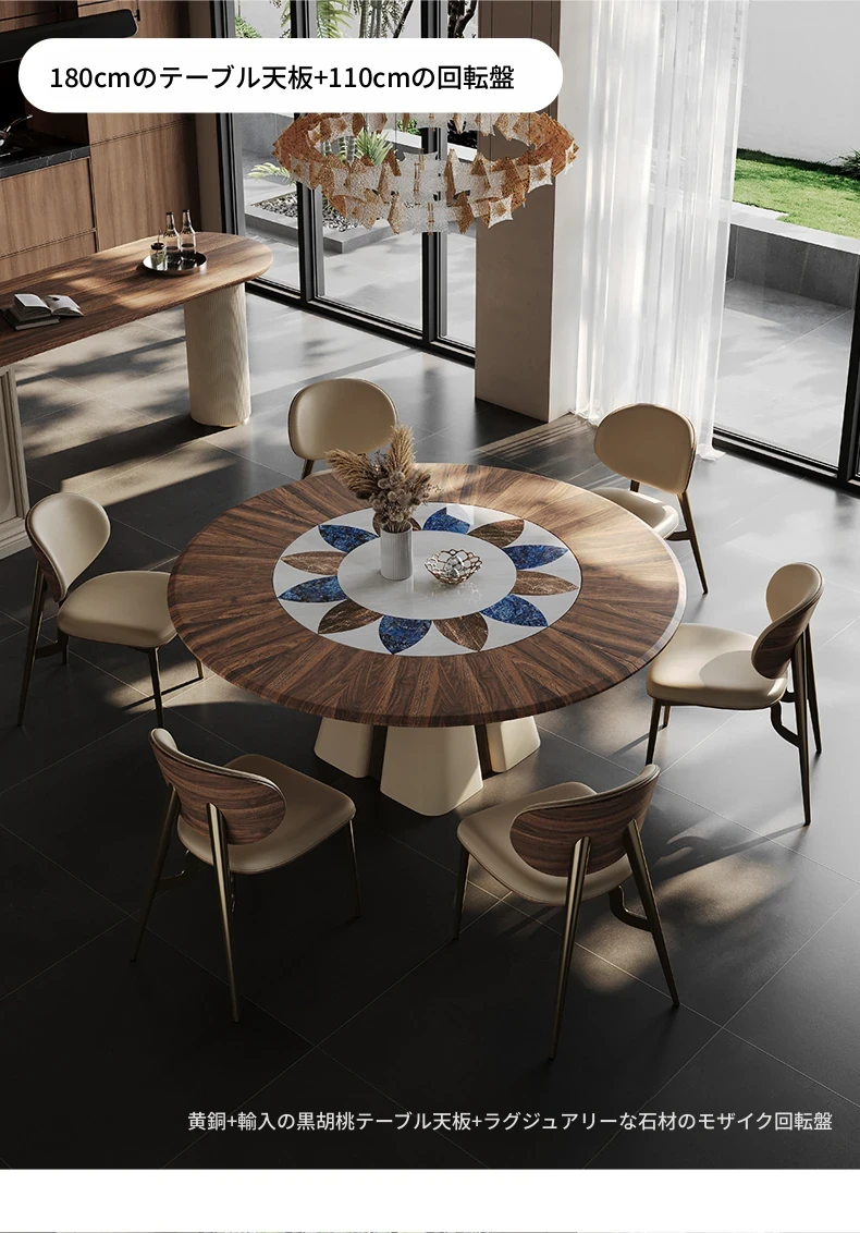 電動ダイニングテーブル/輸入ブラックウォールナット180天板+110向日葵回転台