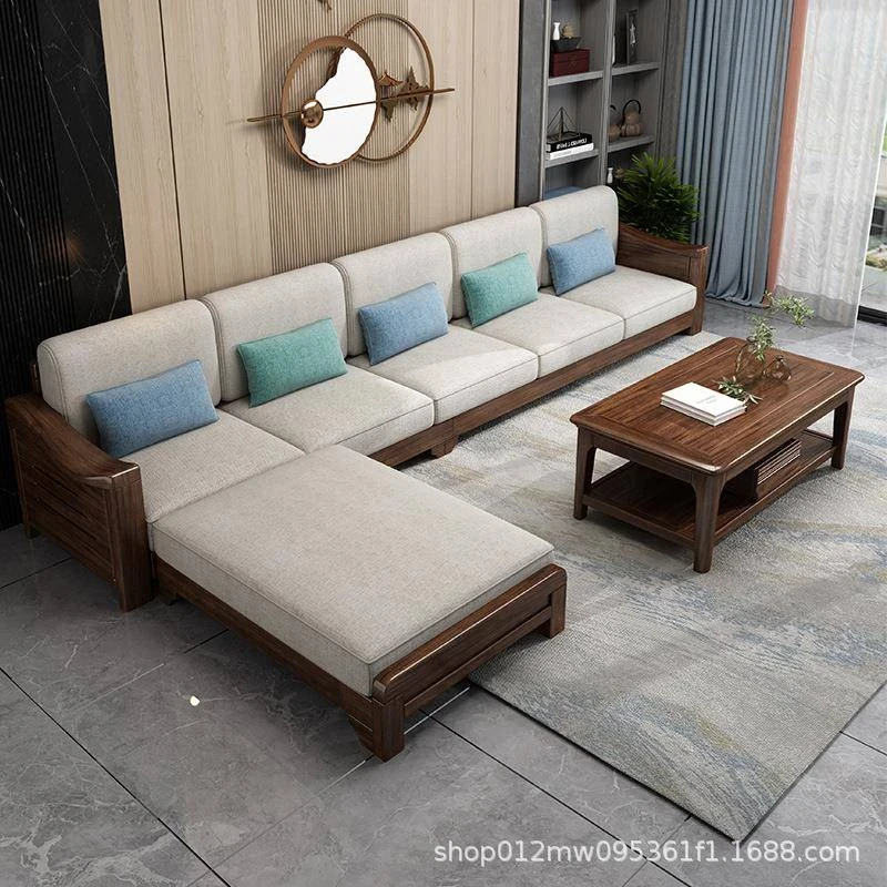 現代的シンプルデザイン!ウォールナット無垢材使用の経済的なL字型ソファ。心地よいサロン空間を演出する812315スタイルの高級感あふれるカウチ。