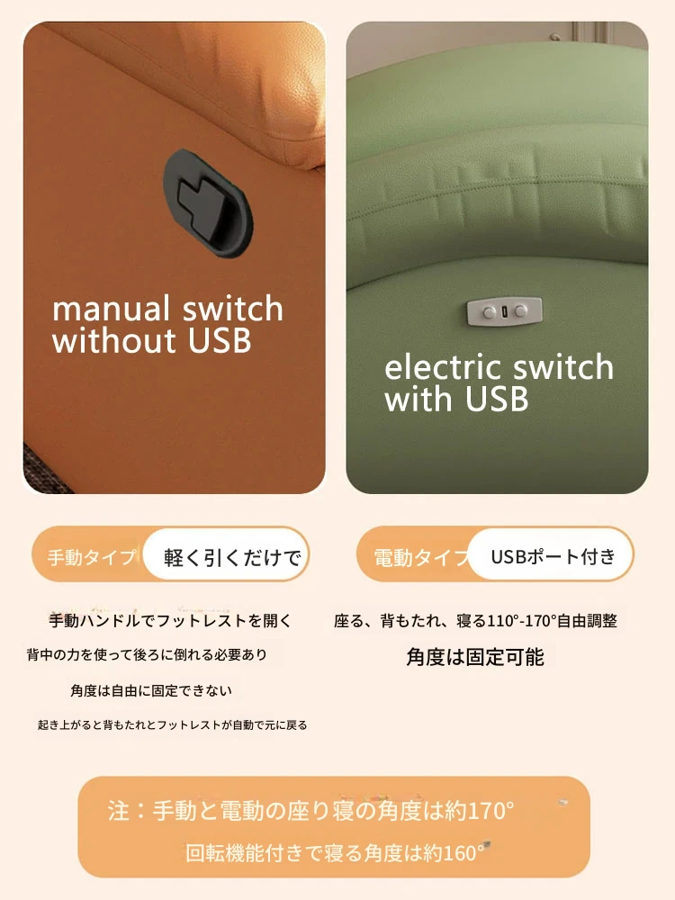 電動で寝られる+USB充電