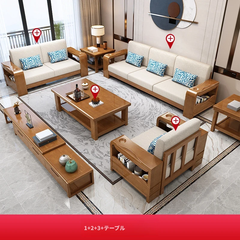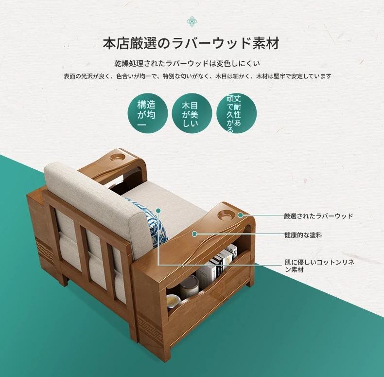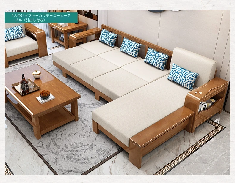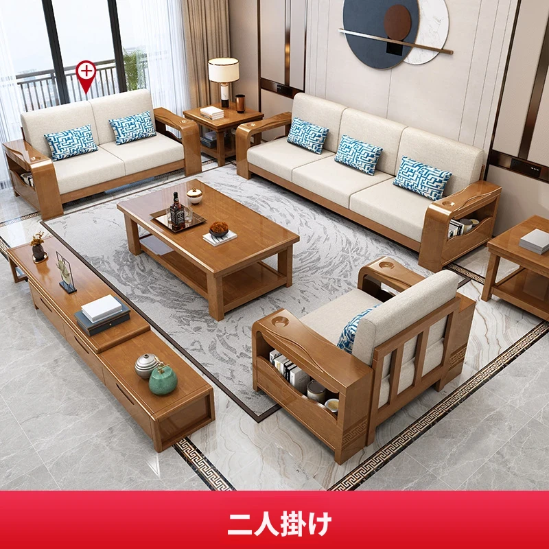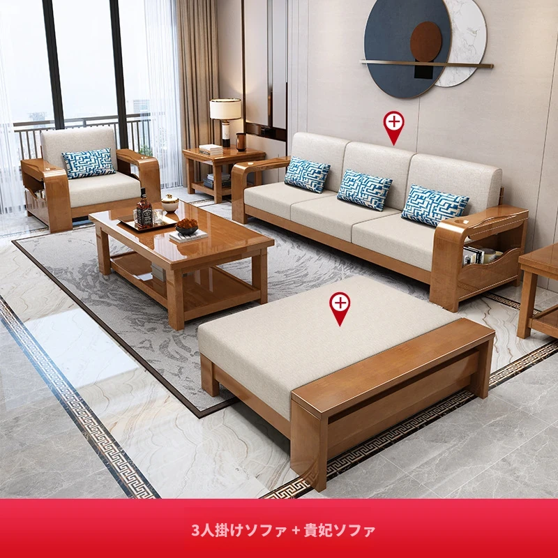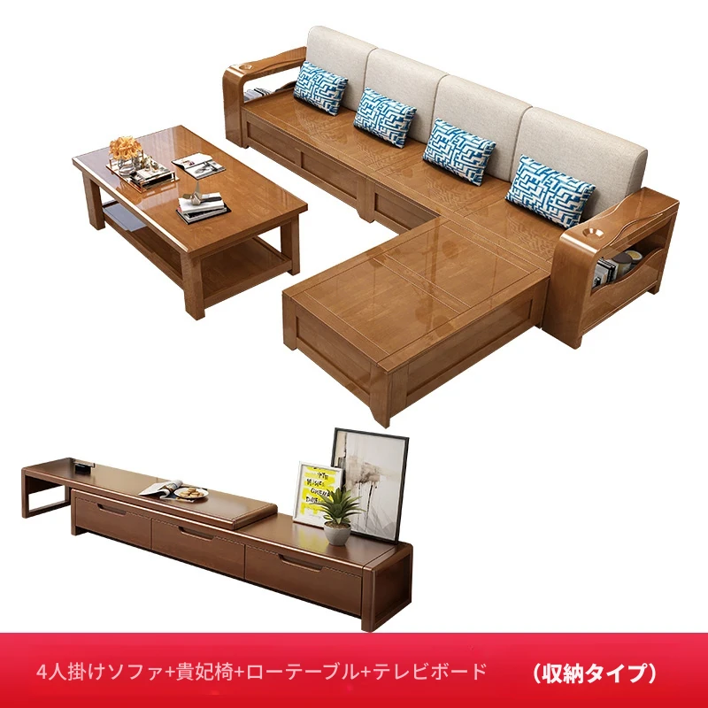 冬夏兼用の実木製ソファ!新しい中華風のモダンミニマリストデザイン、小型住宅にぴったりなリビングルーム用の貴妃角型収納コンビネーション家具。おしゃれで機能的、限られたスペースを最大限に活用します!