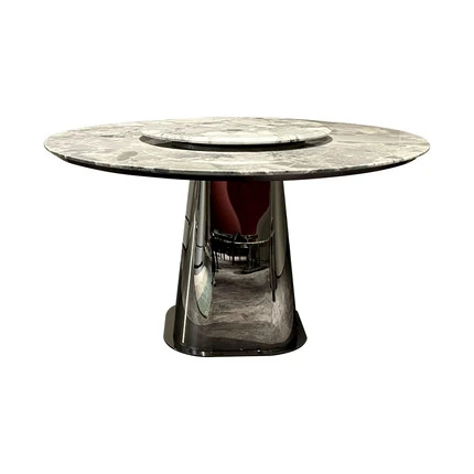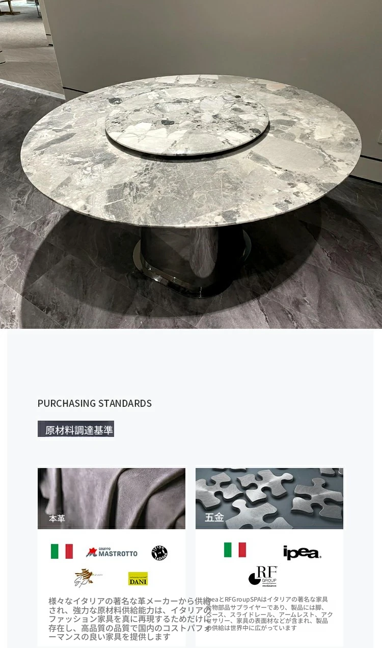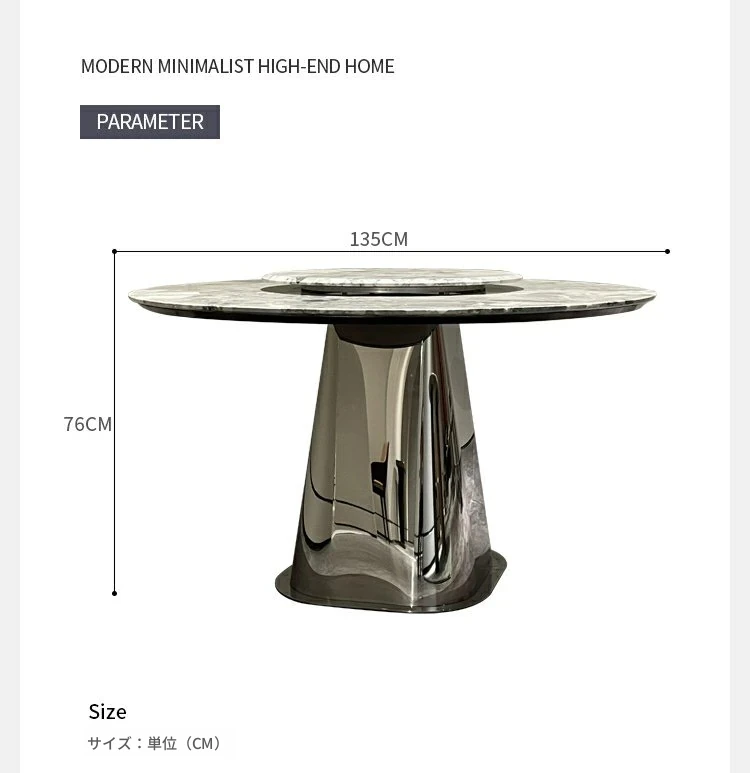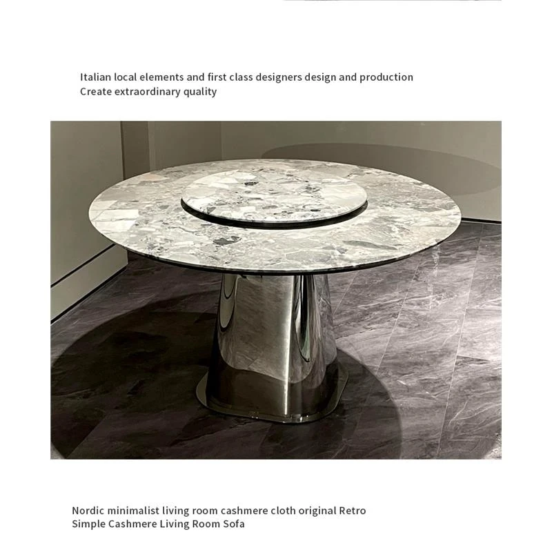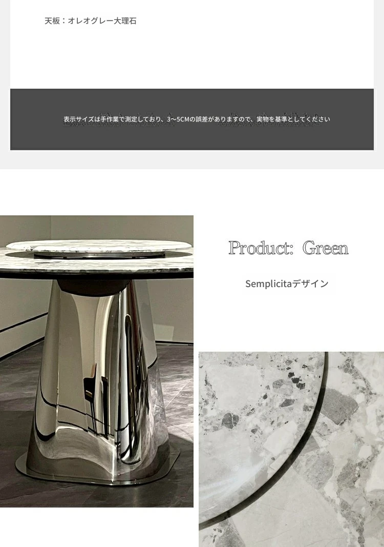 天然大理石のラウンドダイニングテーブル - オレオグレーの高級デザイン!モダンなイタリアンミニマリズムで、軽やかな贅沢を演出。おしゃれで洗練された空間をあなたの食卓に。