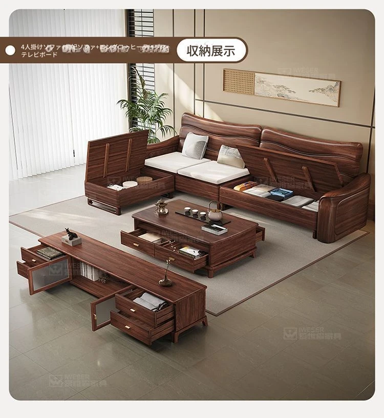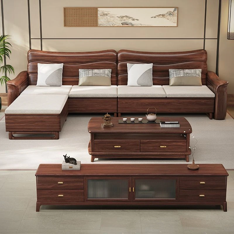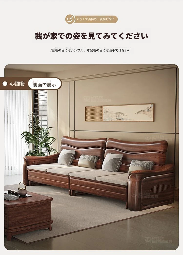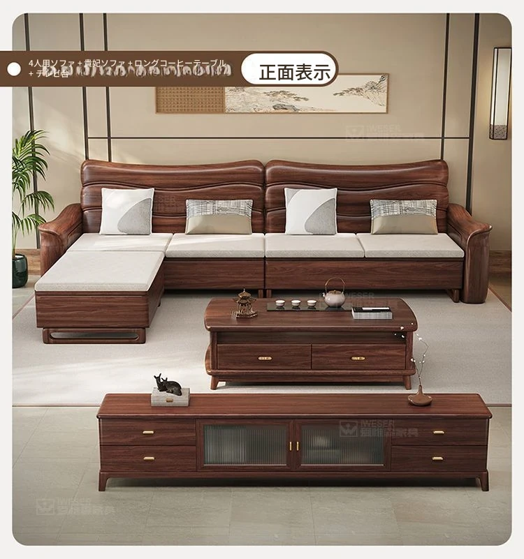 新中式黒胡桃無垢材サロンセット - 実用的でスタイリッシュなデザイン、大小様々な空間にぴったり!高品質の桃木を使用し、伝統的な魅力と現代的な機能性を兼ね備えた家具で、あなたのリビングを特別な空間に演出します。