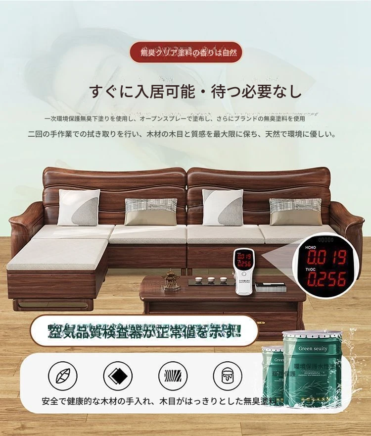 4人掛けソファ+貴妃ソファ+ロングコーヒーテーブル+テレビボード
