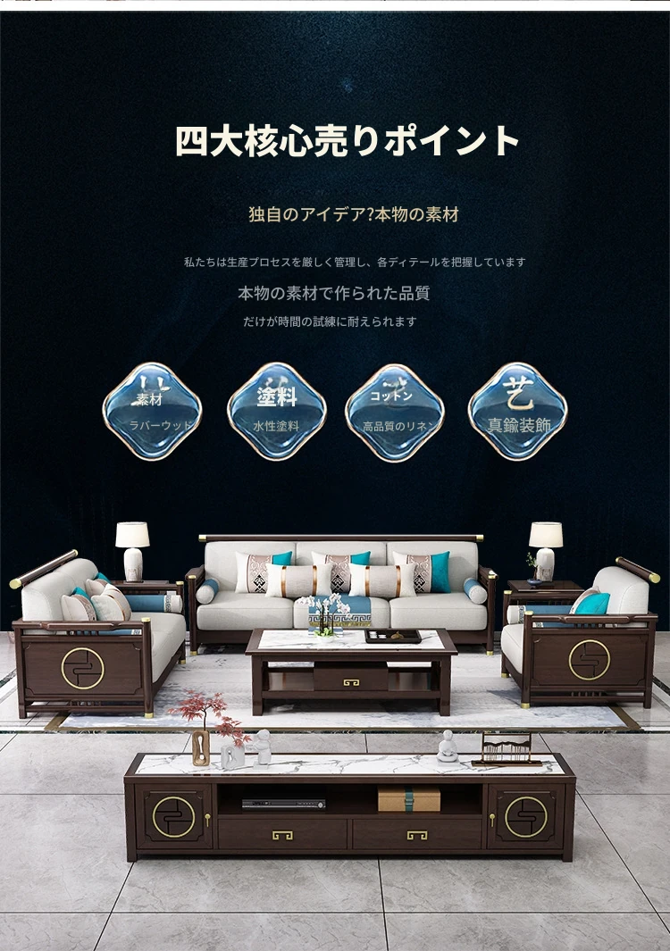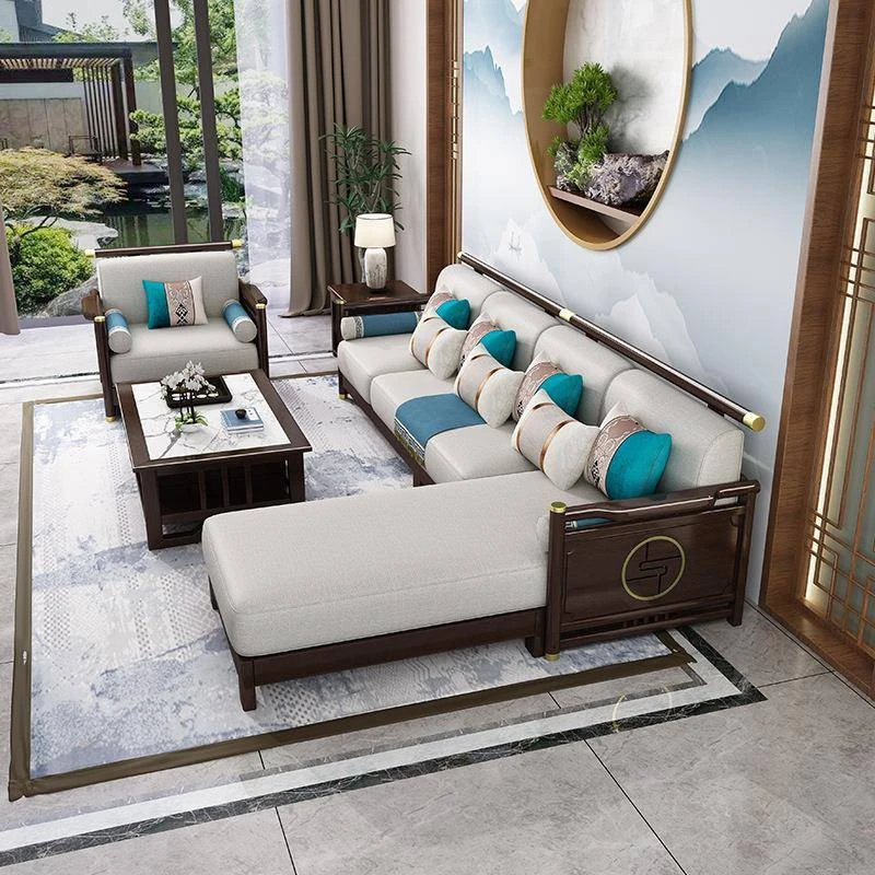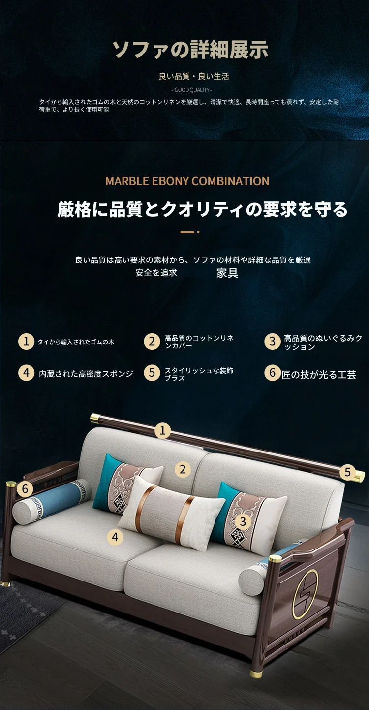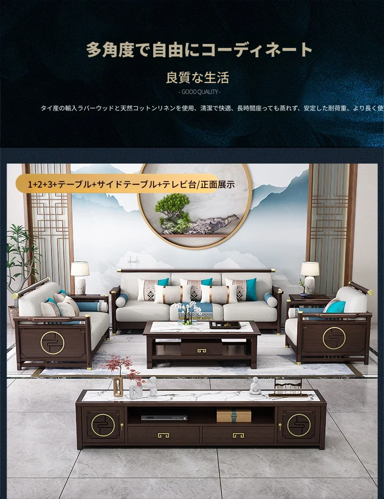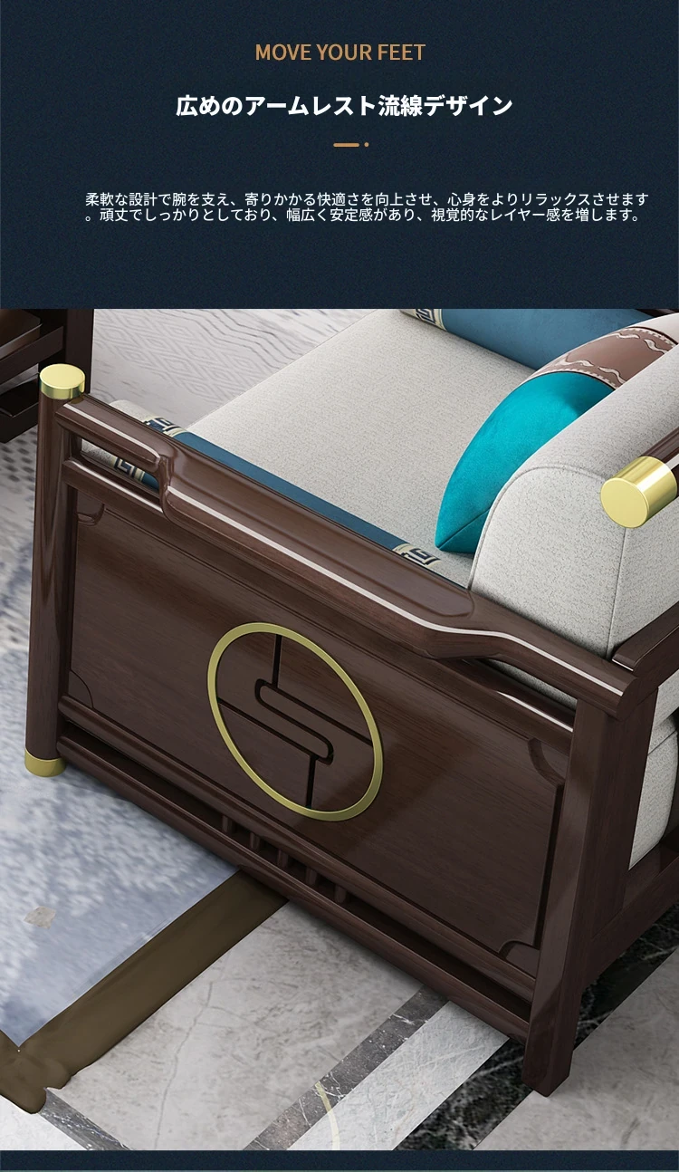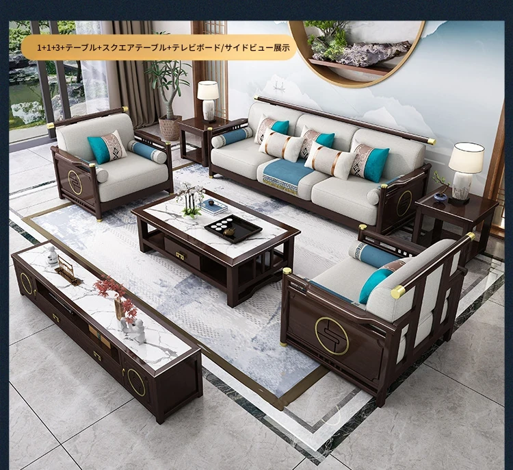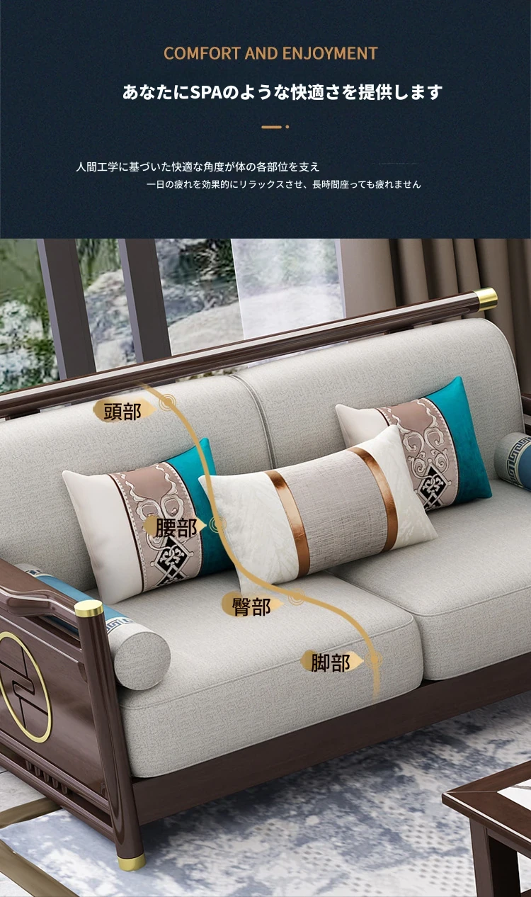 新合中角式606ソファー|ウッドフレームのシンプルな小型リビング向け、オーク材使用の高級カウチソファ|快適な貴妃スタイルで、おしゃれな空間を演出!