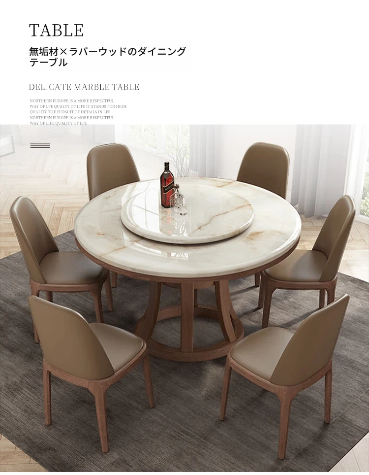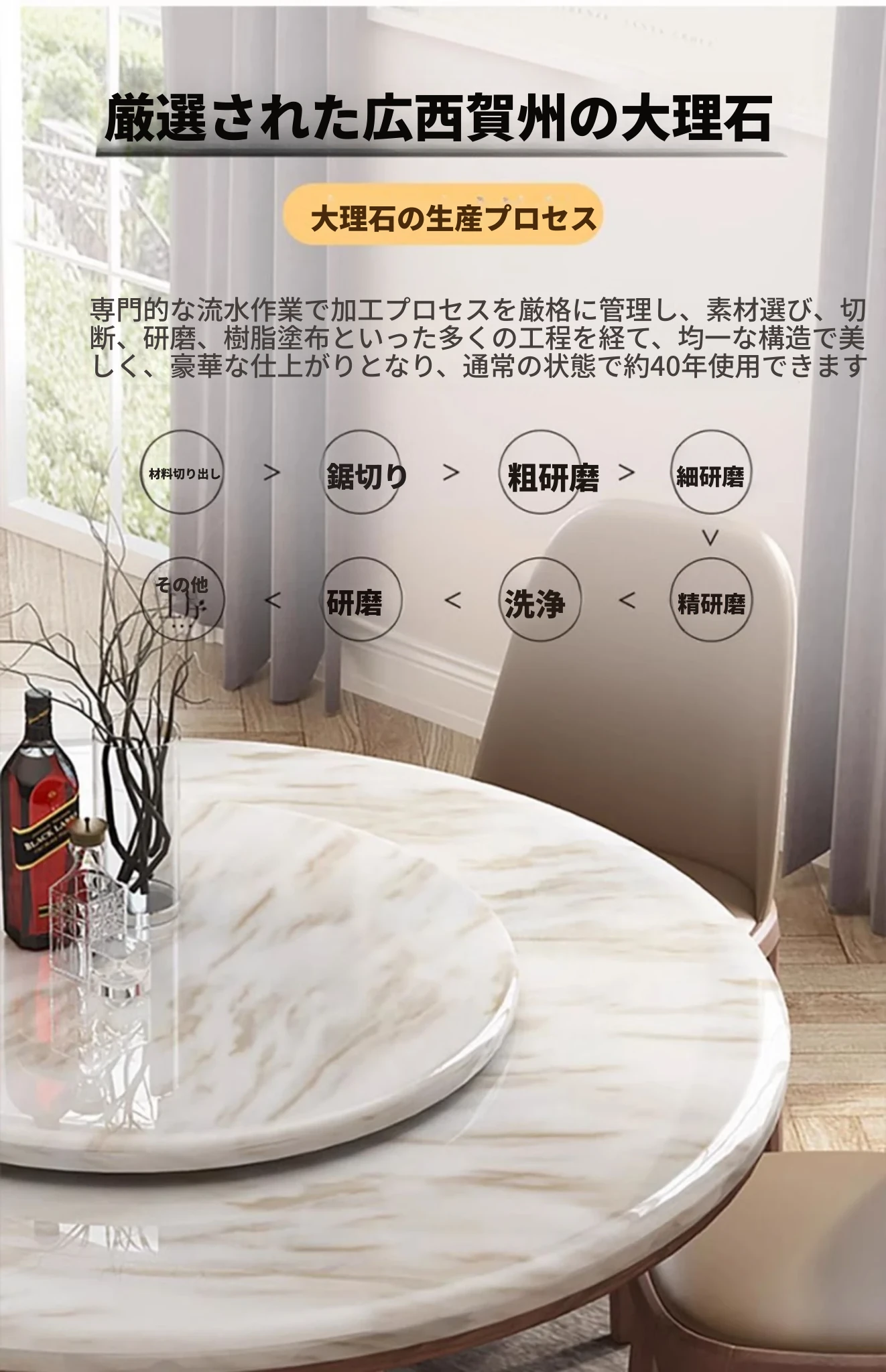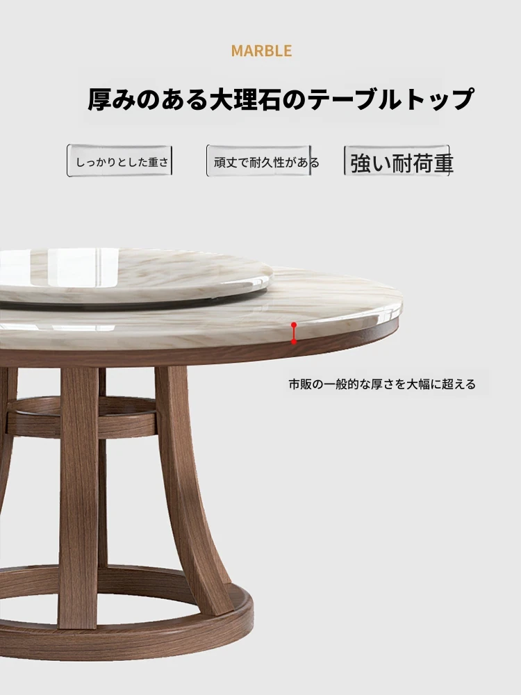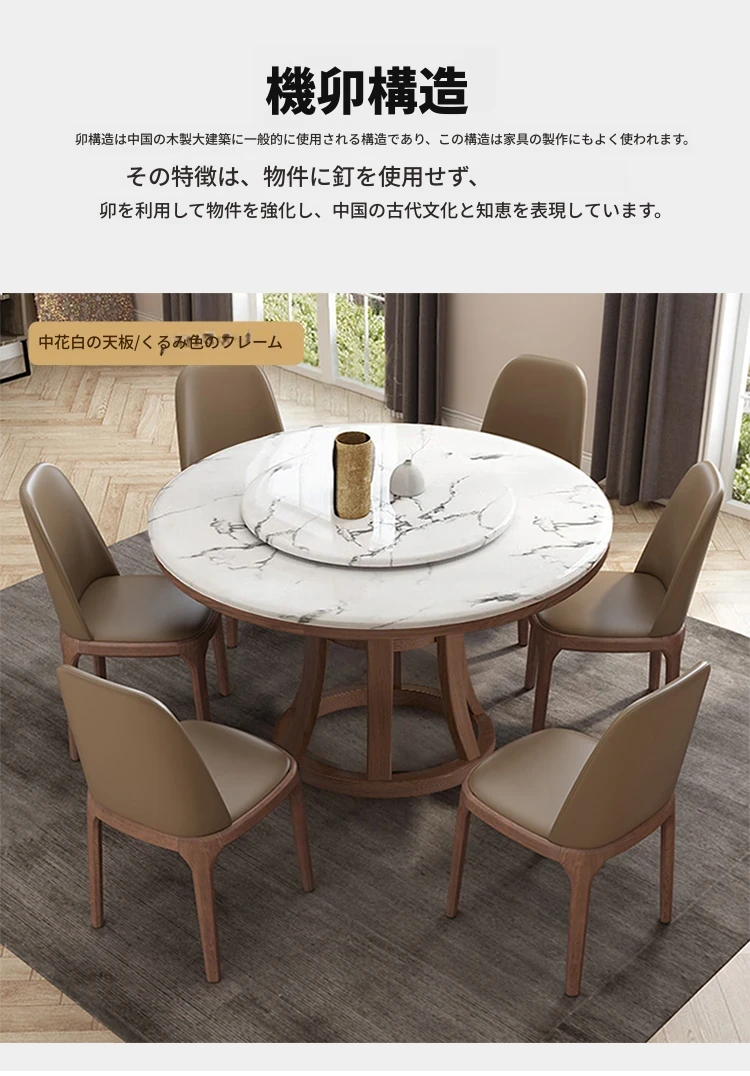 北欧風の大理石ダイニングテーブル|実木製のモダンシンプルなラウンドテーブル|回転式プレート付き|最大12人まで対応の食卓|家族や友人との特別なひとときを演出します!
