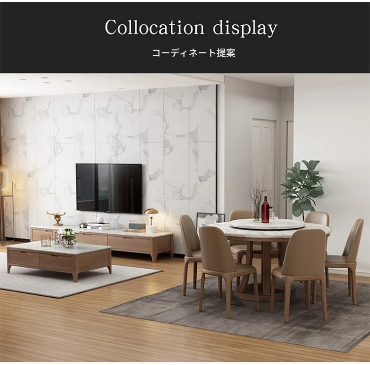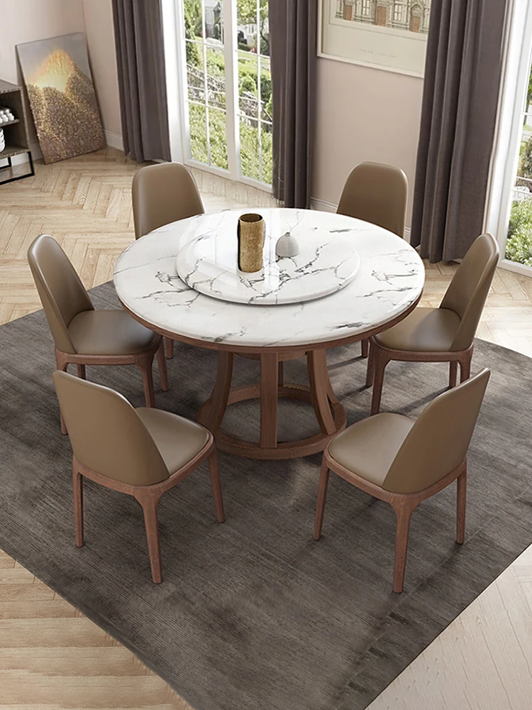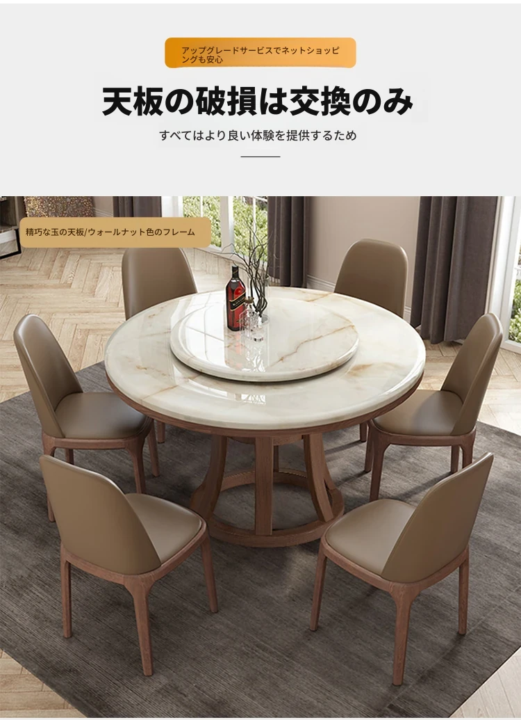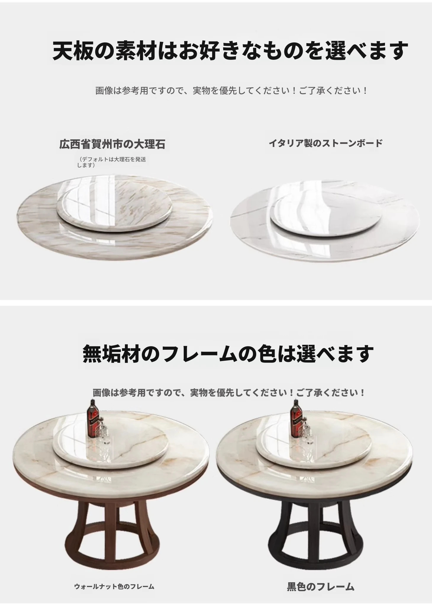 北欧風の大理石ダイニングテーブル|実木製のモダンシンプルなラウンドテーブル|回転式プレート付き|最大12人まで対応の食卓|家族や友人との特別なひとときを演出します!
