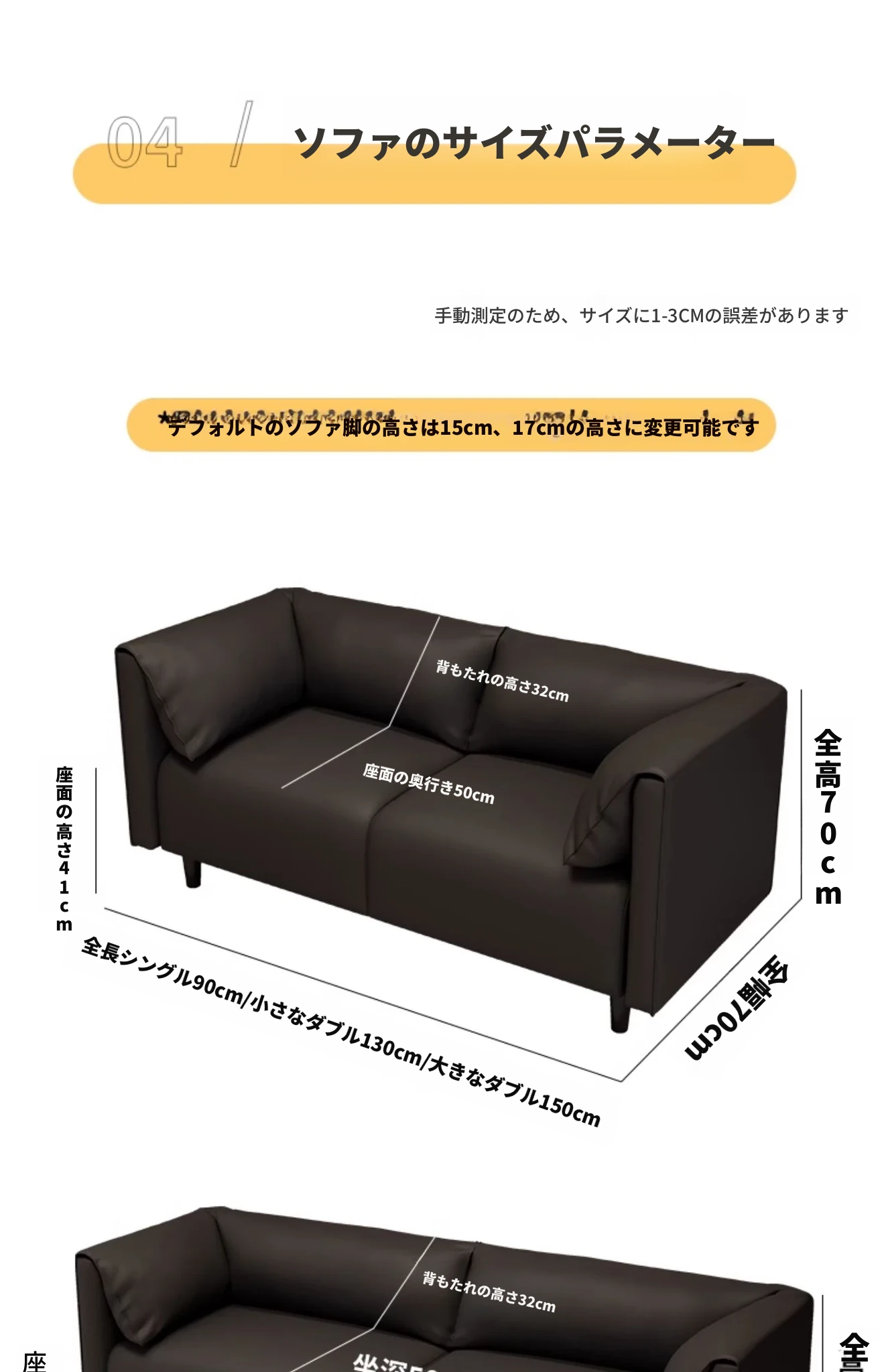 小さな二人掛け130cm長 保証3年 配達サービス