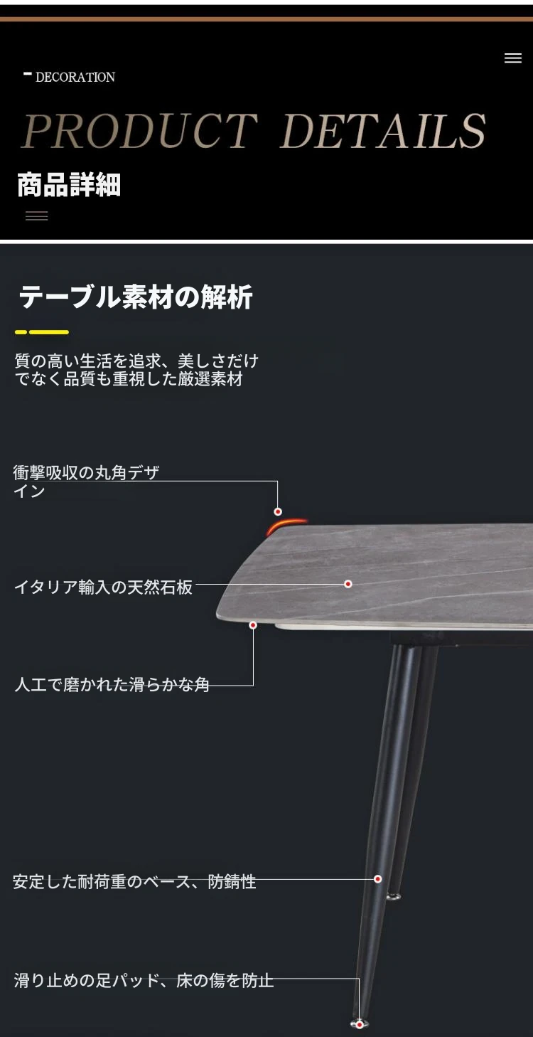 ムー境 北欧インスピレーション 岩板大理石 長方形 ラグジュアリー ダイニングテーブル&チェアセット モダンシンプル 小型住宅に最適!洗練されたデザインで、心地よい食卓を演出します。