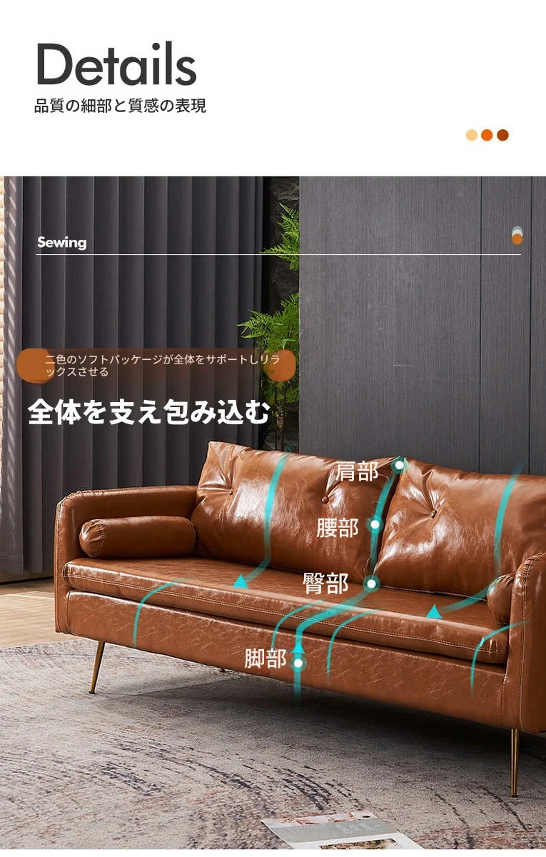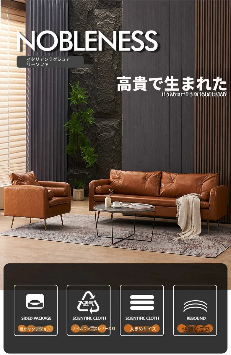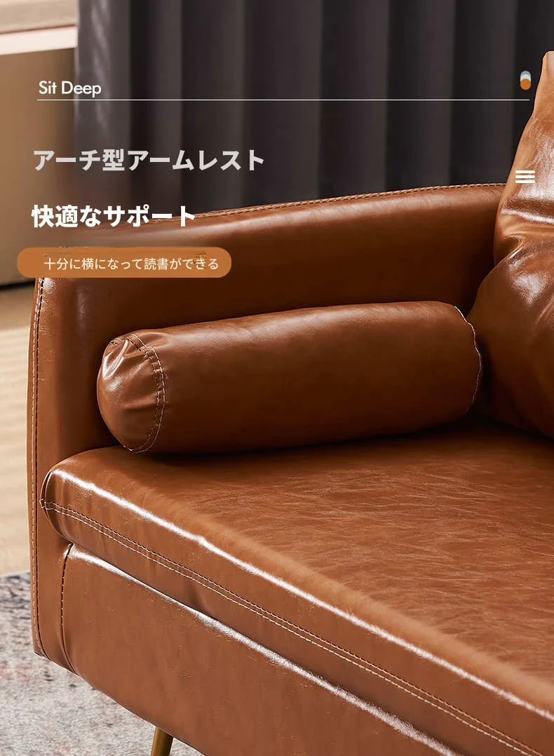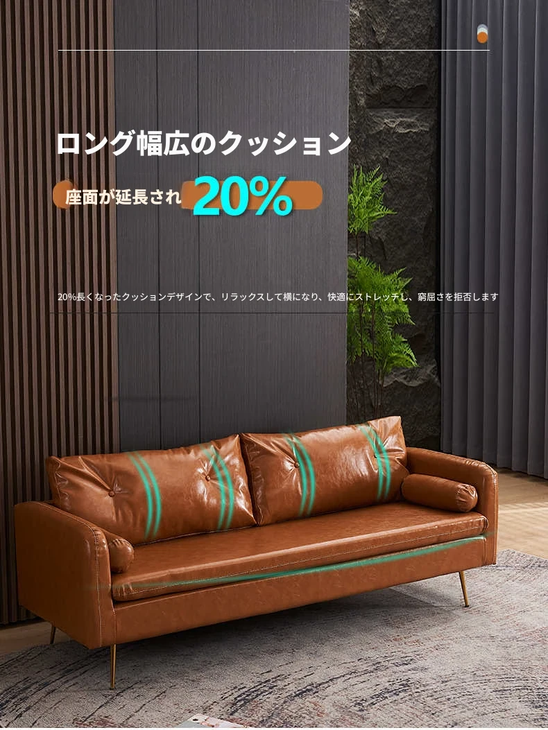 北欧風シンプルソファ|小さなリビングやアパートに最適なイタリアンライトラグジュアリー|おしゃれな合成皮革製|ダブル三人掛けのコンパクトデザインで、お部屋をスタイリッシュに演出します!