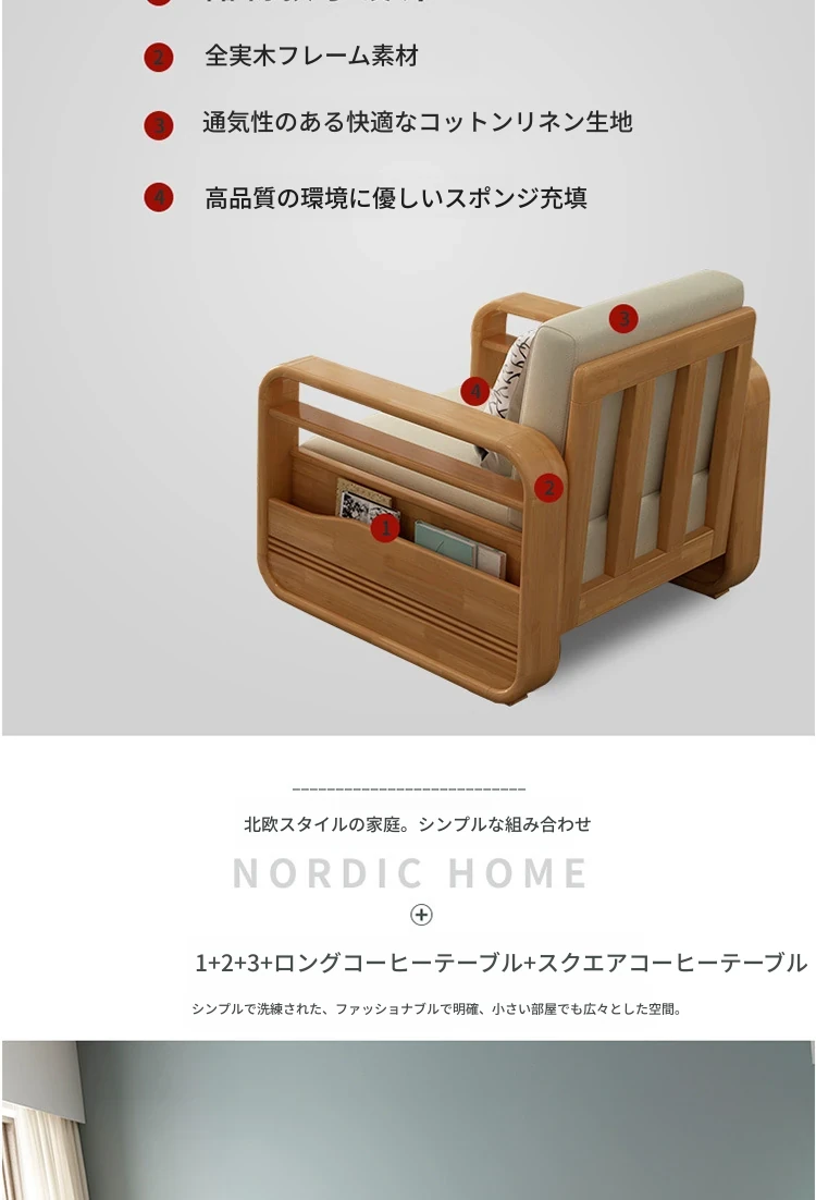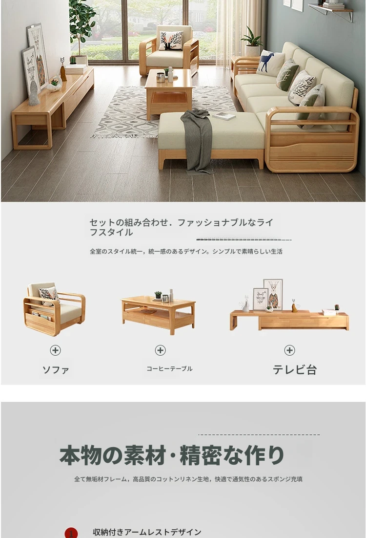 北欧スタイルの無垢材ソファセット!コンパクトなコーナー型で、小さなリビングに最適。モダンでシンプルなデザインは、ラバーウッド素材を使用し、耐久性抜群。あなたの家にぴったりの快適空間を提供します!