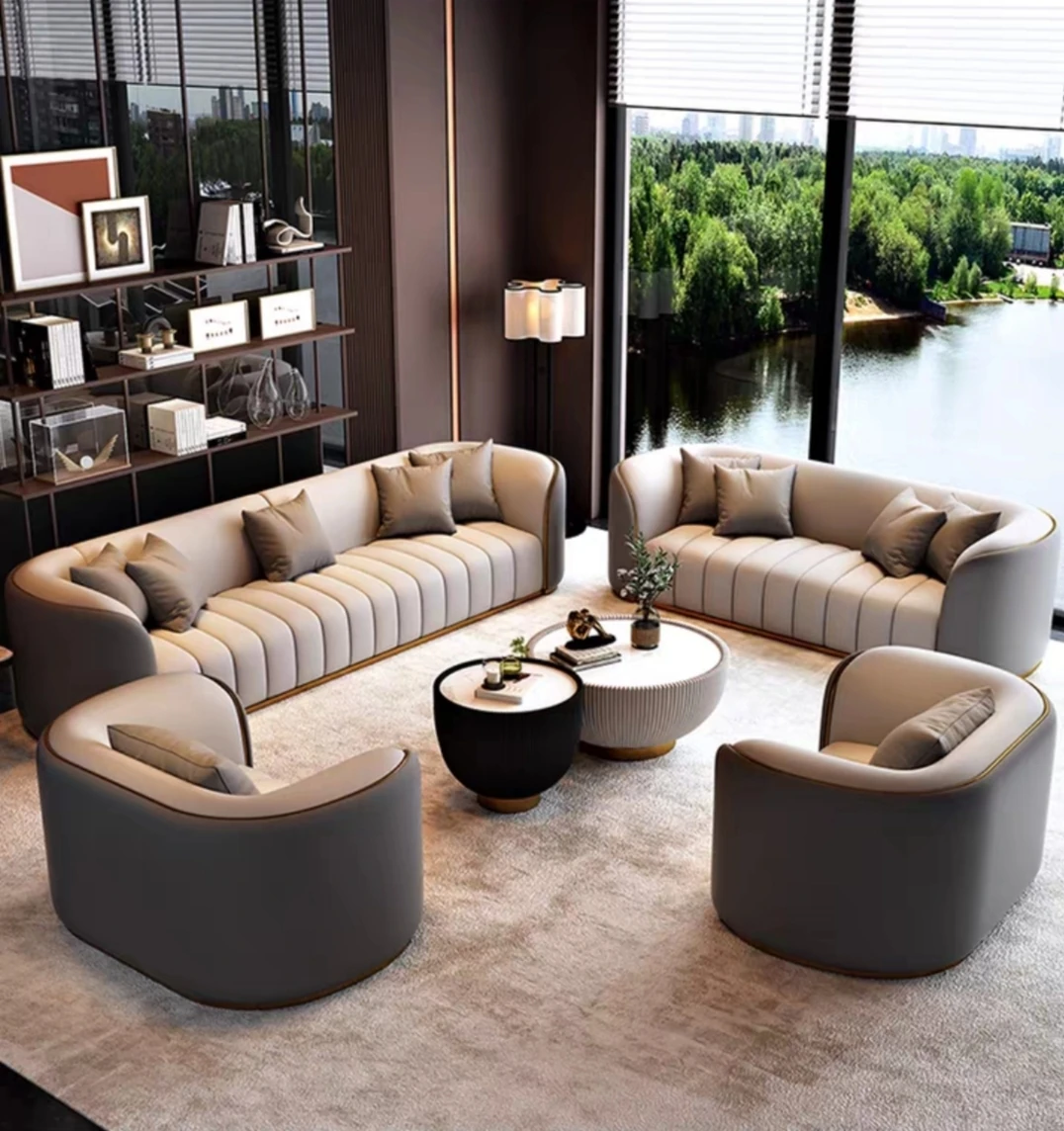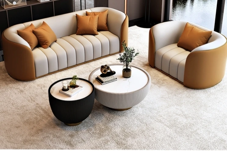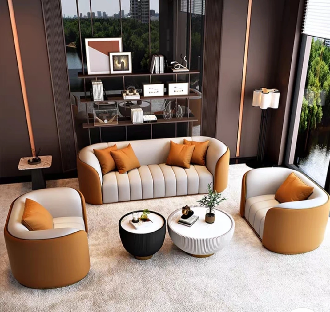 北欧スタイルのビジネスカジュアルソファとコーヒーテーブルのセット - 高級感溢れるオフィス休憩エリアやホテルのミーティングスペースに最適!快適さと洗練されたデザインで、ゲストをお迎えする空間を演出します。