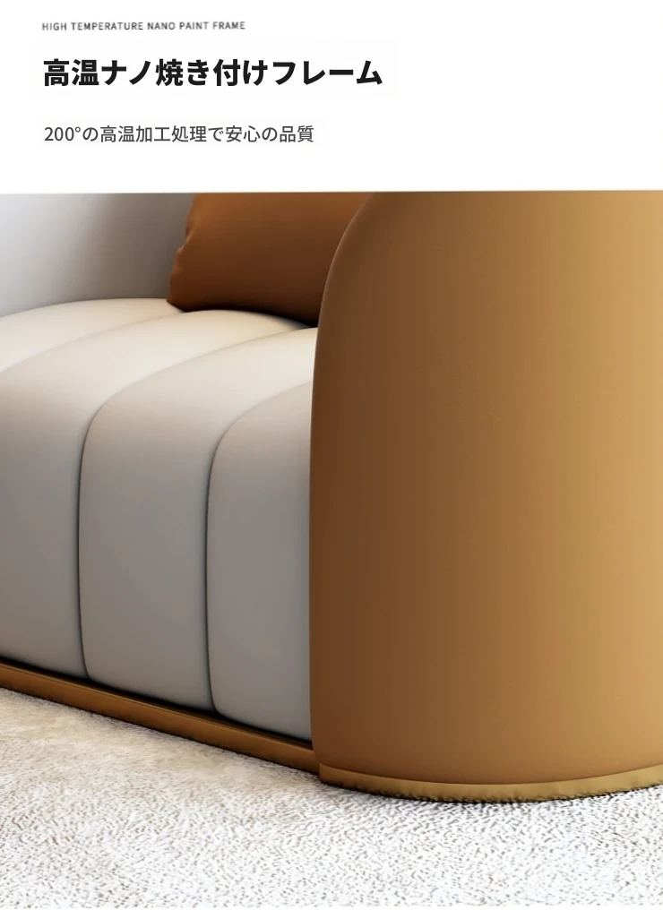 3人ソファ【米白色とオレンジ色の組み合わせ】